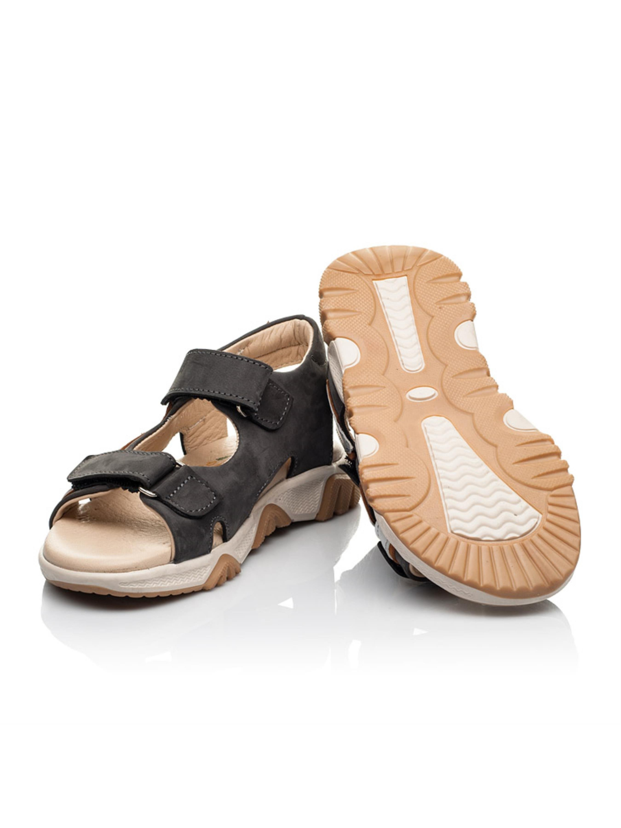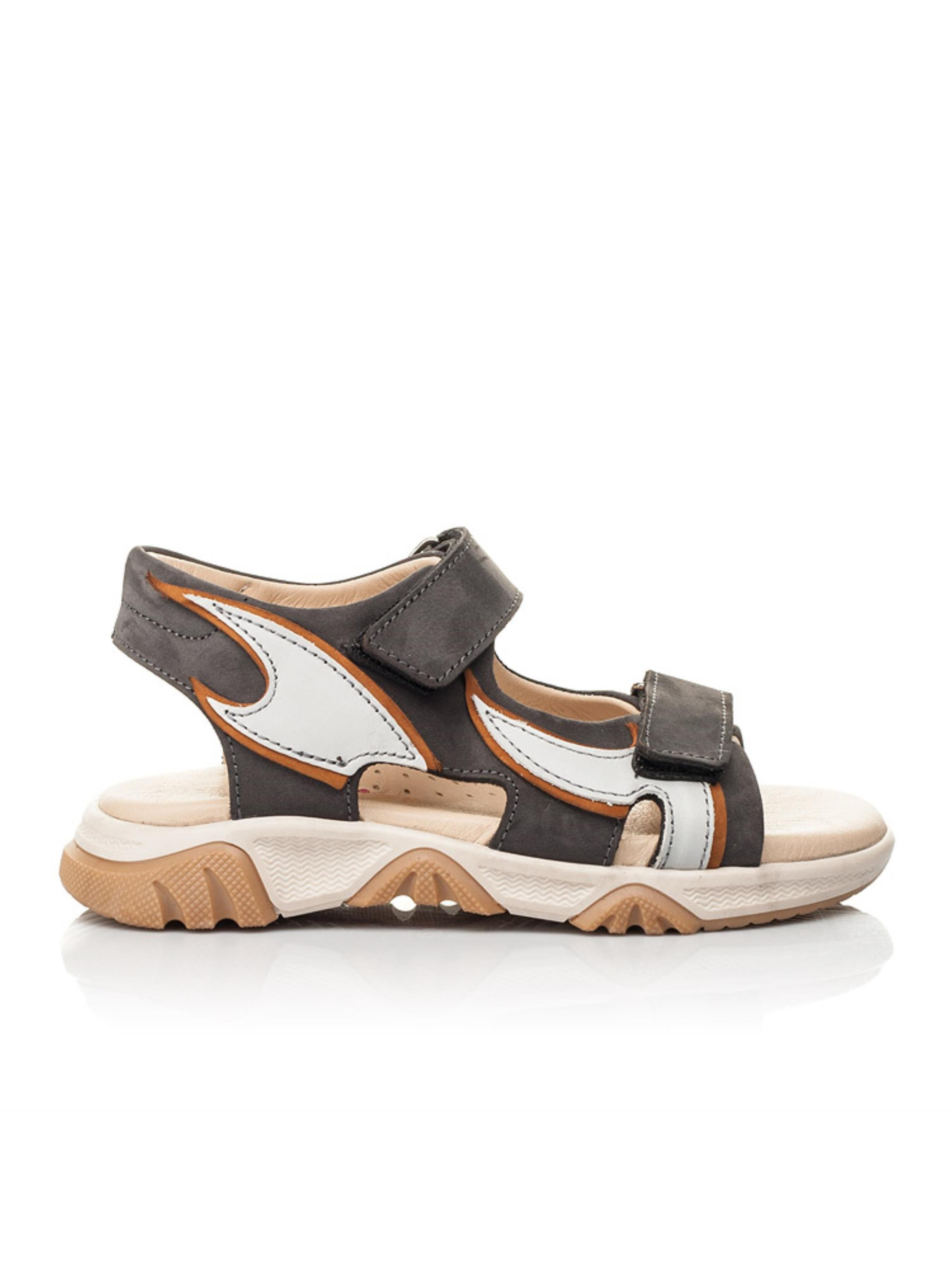 Босоніжки для хлопчика просто "вогонь". Чи не так? Аби переконатися в цьому ми більш детально охарактеризуємо такі круті босоніжки буквально твердженнями. По-перше, дитячі босоніжки для хлопчика створені з виключно натуральних матеріалів: матеріал верху - натуральний нубук сірого кольору, устілка шкіряна. По-друге, максимально відкриті - те, що потрібно на жарку пору року. По-третє, надзвичано комфортні, адже мають анатомічно правильну устілку з супінатором під зведення стопи. І, звісно, по-четверте, унікальний дизайн з зображенням пламенів вогню з натуральної шкіри сірого кольору. Невже Ви зможете оминути увагою та уникнути спокуси придбати такі босоніжки своєму активному хлопчику?