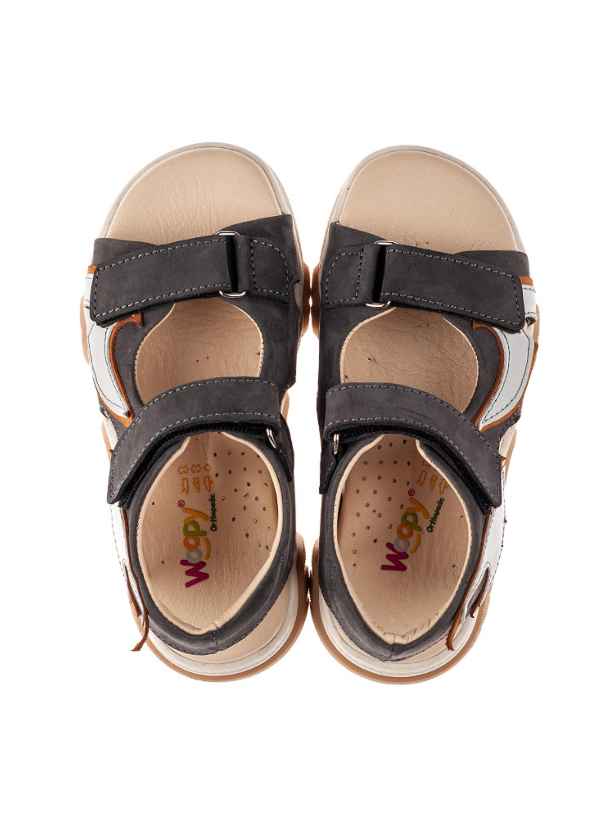 Woopy Orthopedic представлений колекцією босоніжок, туфель, ортопедичних босоніжок/туфель з високим берцем, демісезонних та зимових черевик, які забезпечують профілактику та лікування плосковальгусної деформації стопи і мають важливі ортопедичні елементи дитячого взуття: каблук Томаса, жорсткий задник, супінатор та анатомічно правильну устілку.