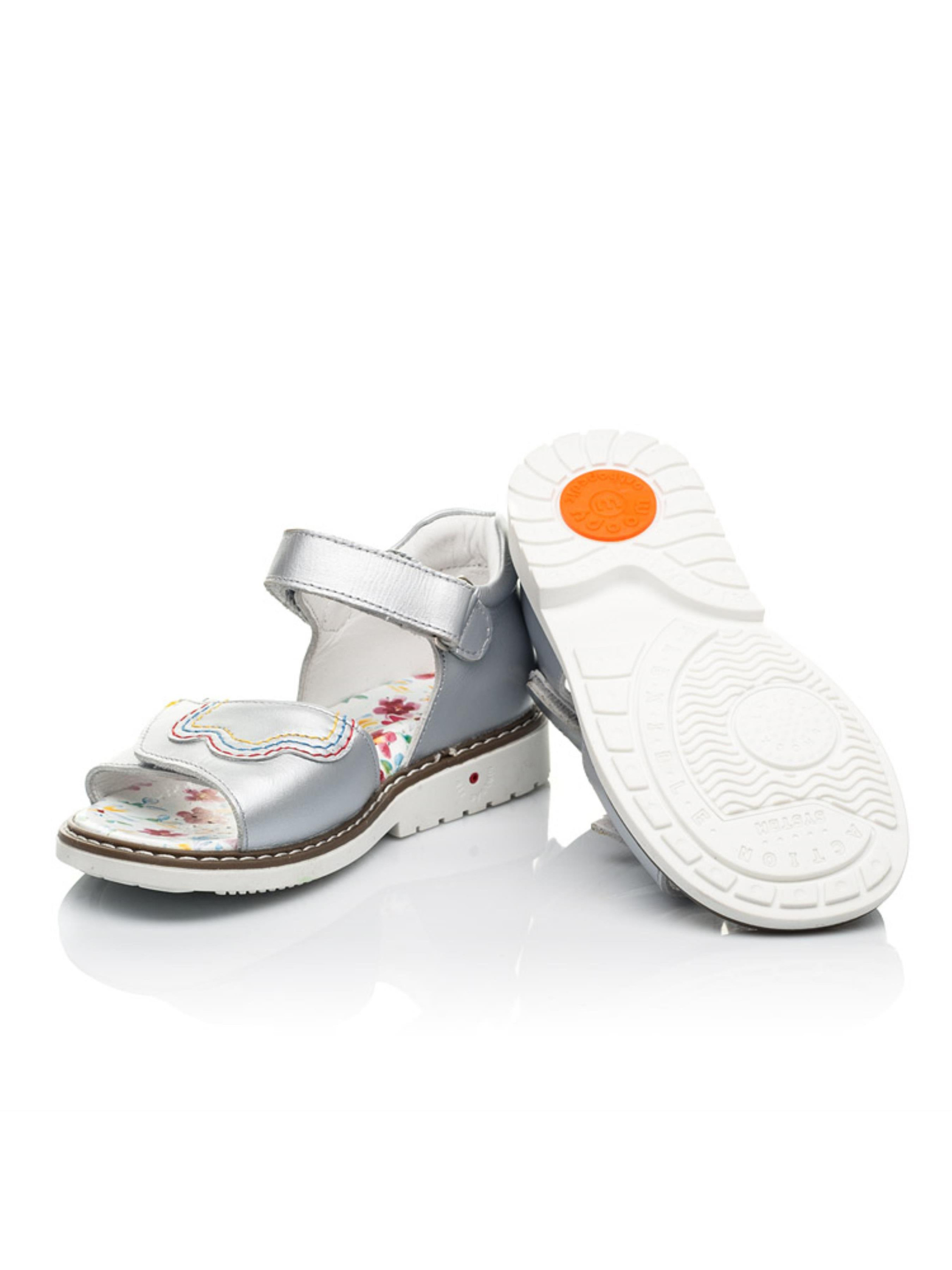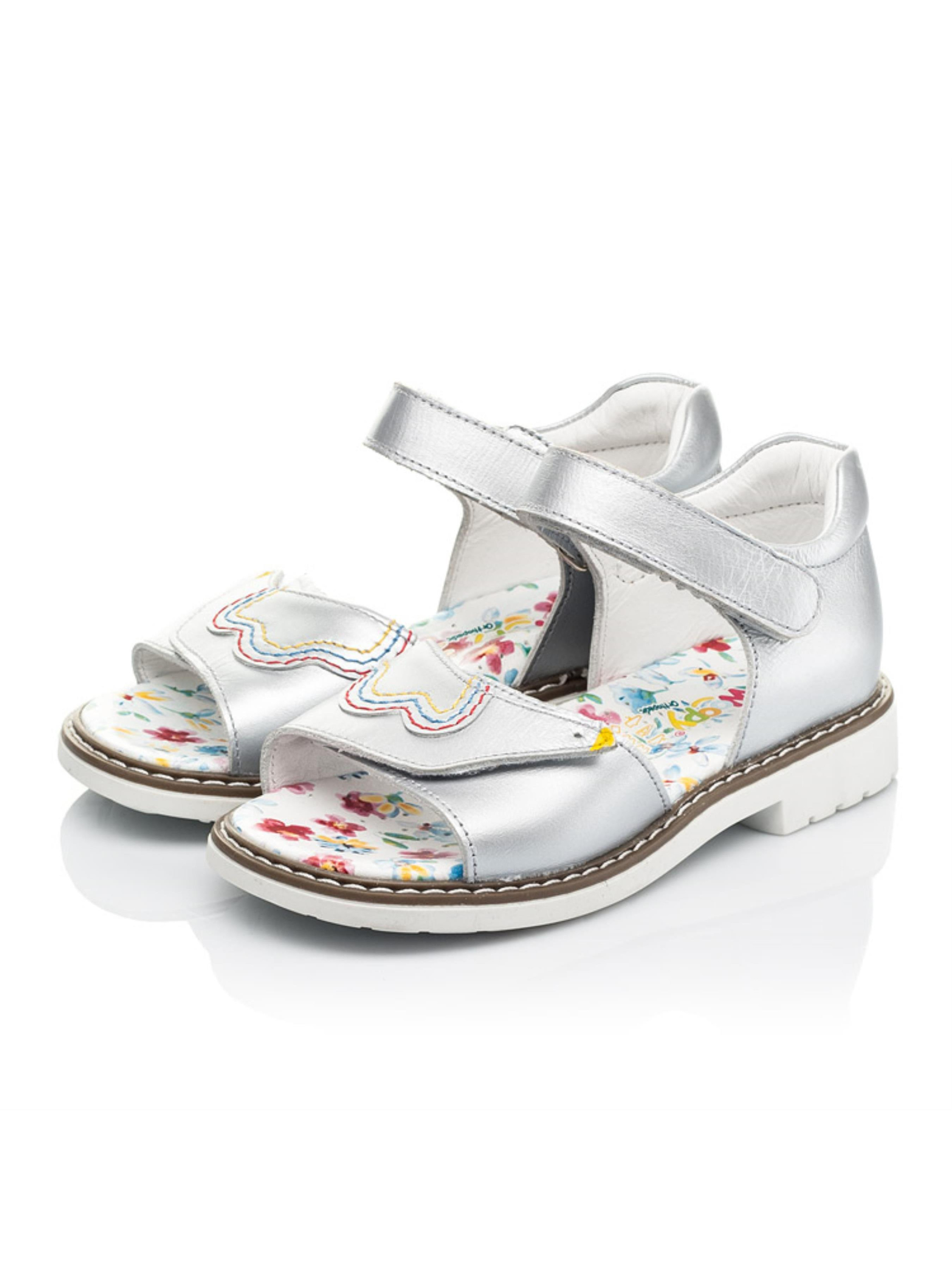Якщо і Ви надаєте перевагу неординарному дизайну, який дозволяє вирізнити пару з-поміж інших, тоді сміливо обирайте такі неймовірні дитячі босоніжки своїй красуні. Дитячі босоніжки для дівчинки пошиті з натуральної шкіри вражаючого срібного кольору. Натуральна шкіра вражає гладкістю та м'якістю. Матеріал підкладки та устілки - натуральна шкіра. І це ще не всі переваги такого взуття. Стильні дитячі босоніжки оздоблені зображенням пташки, а липучка-застібка повторює контур тіла пташки. Контрастна прошивка на широкій липучці вдало доповнює дизайн. Про здорову та правильну ходу подбають ортопедичні елементи дитячого взуття: жорсткий задник, супінатор та анатомічна устілка.
