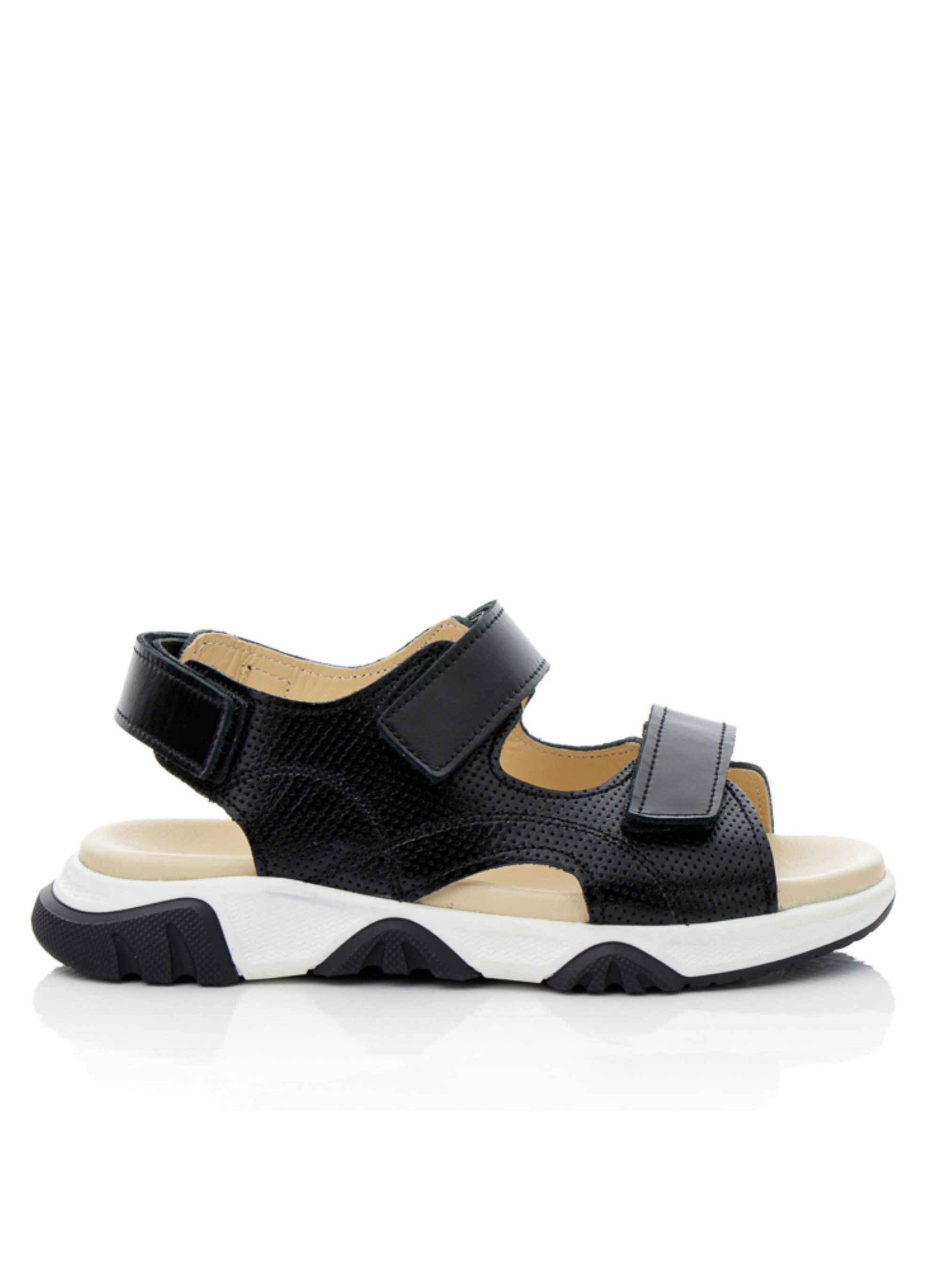 Маємо для Вашого маленького модника таку круту модель босоніжок з натуральної шкіри класичного чорного кольору. Особливу фактуру створено за рахунок застосування перфорації у верхніх шарах шкіри. Надійні застібки липучки, які значно прискорять процес взування пошиті з натуральної гладкої шкіри. Супер класна новинка має фактурну рифлену підошву, яка відлита з якісної термопластичної гуми, вона легка та гнучка. Устілка в моделі шкіряна, анатомічно правильна, має подушечку під зведення стопи. Матеріал підкладки - натуральна високоякісна шкіра.