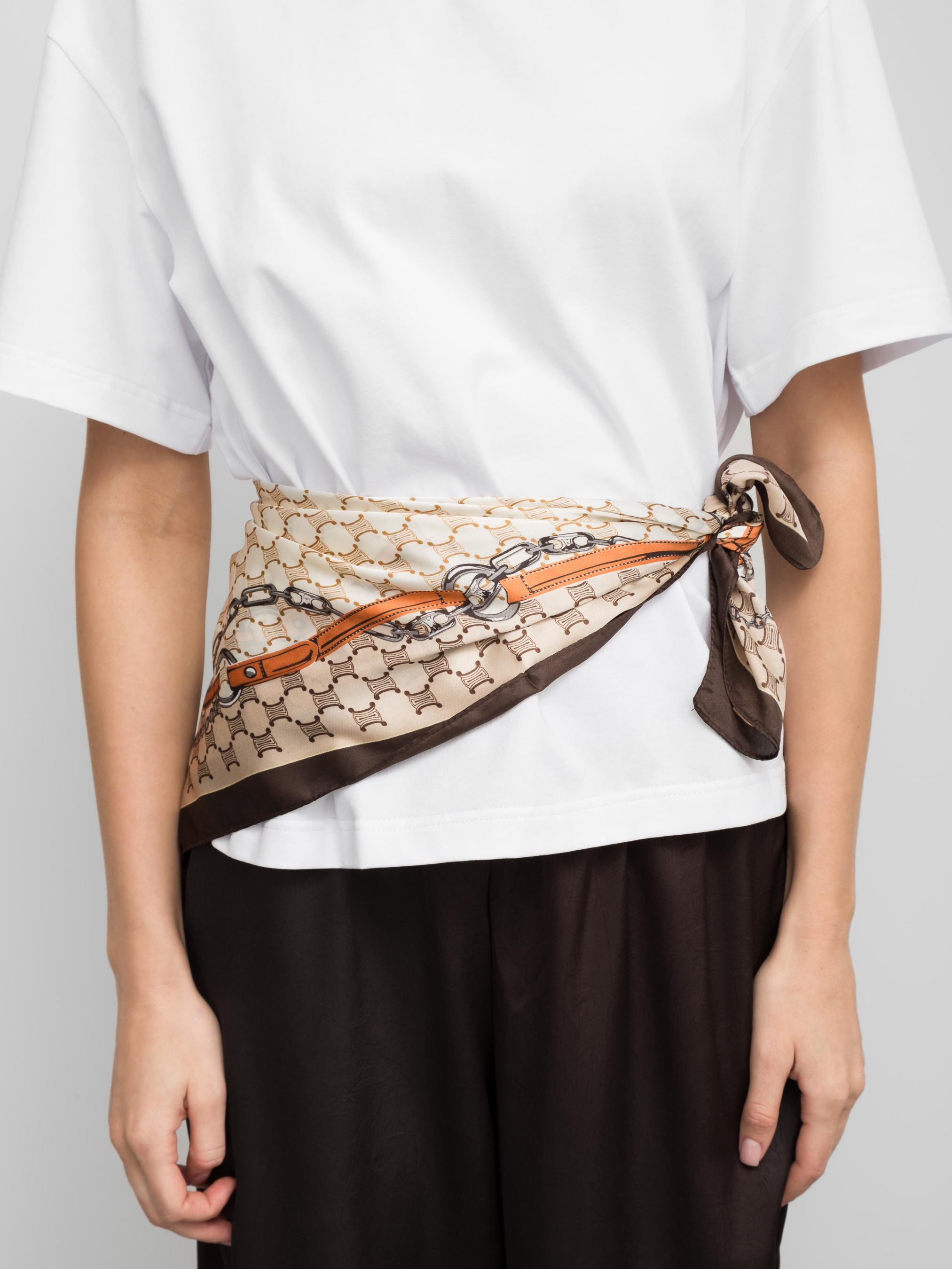 Хустинка виготовлена з поліестеру. Це синтетичний матеріал, який надає їй гладкої, блискучої поверхні та робить її легкою і приємною на дотик. Хустинка має яскраву і привабливу кольорову гаму. Основний колір - це бежевий, який створює ніжний і елегантний фон. На цьому фоні виділяються контрастні смуги темно-синього та коричневого кольорів, а також яскравий синій колір візерунка. Така комбінація кольорів виглядає дуже стильно і сучасно. На хустинці зображений цікавий візерунок у вигляді ланцюгів. Він додає хустинці оригінальності та вишуканості. Хустинка має розмір 70х70 см, що дозволяє використовувати її як шарф, бандану або навіть як пояс. Вона має м'яку і приємну на дотик текстуру, що робить її комфортною для носіння. Вона є ідеальним аксесуаром для будь-якого сезону, оскільки її можна носити як в теплу, так і в холодну погоду. Догляд за тканиною: Прання: • Температура води: Не перевищуйте температуру води 40 градусів Цельсія. Прасування: • Температура прасування: Не перевищуйте температуру прасування 110 градусів Цельсія. Дотримуючись цих простих правил, ви зможете зберегти свою хустинку в ідеальному стані на довгі роки.