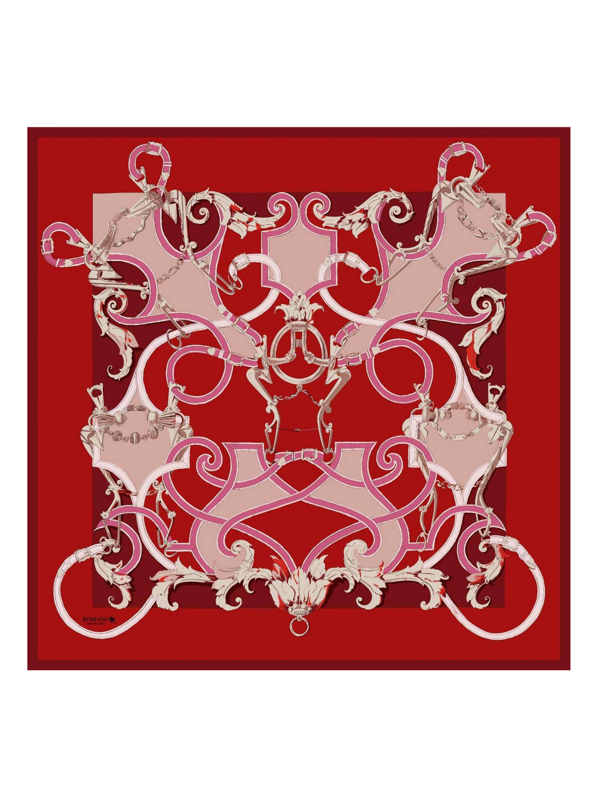Хустка дизайнерська з яскравим малюнком і ручним прошиттям шва. Камінь натуральний корал. Розмір 90 на 90 см. Склад: шовк 70%, поліестер 30%. Розкішний аксесуар. Паковання: подарункова коробочка. Хустка на весну, літо, осінь.