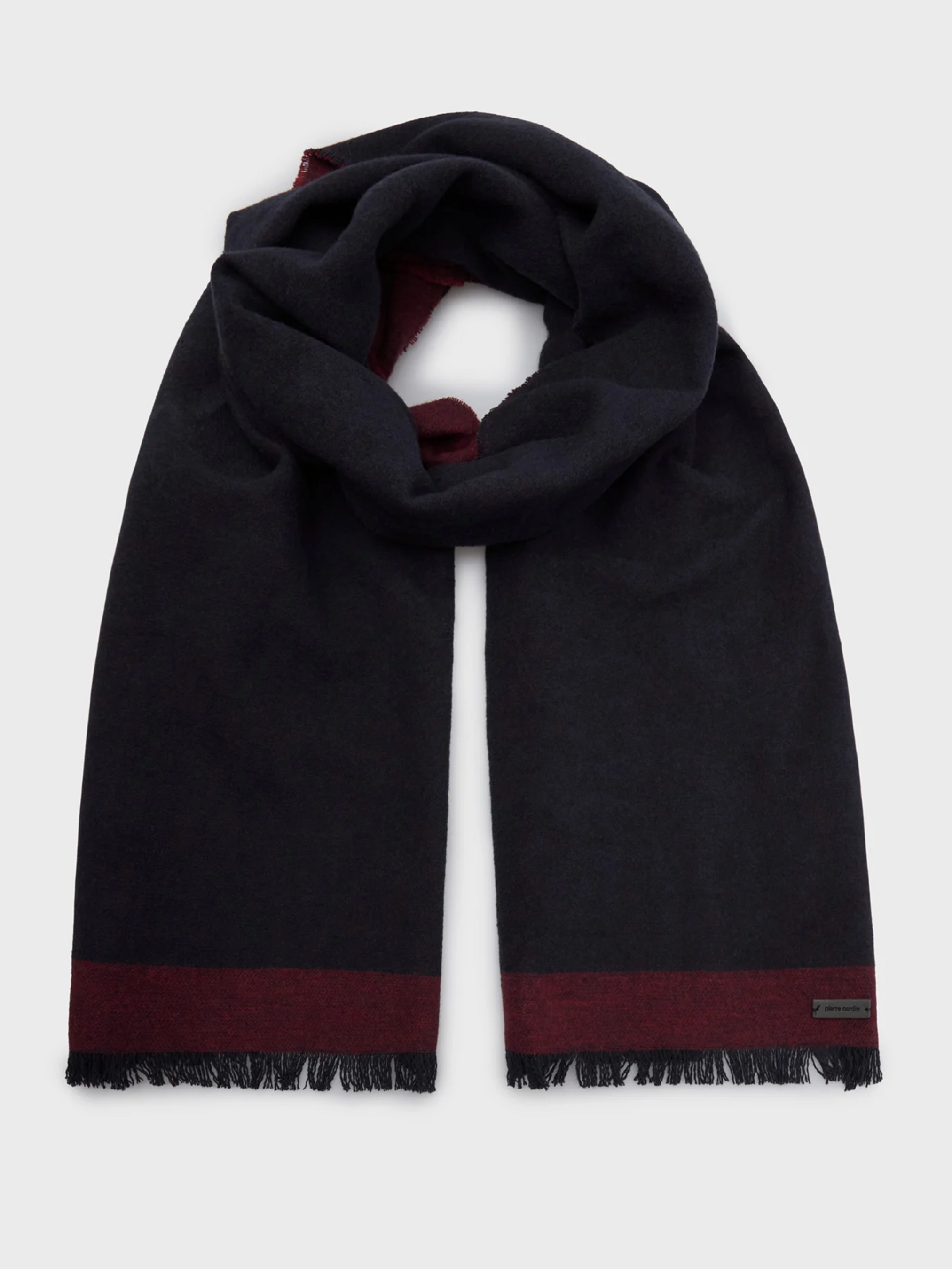 Цей двосторонній шарф від Pierre Cardin поєднує елегантний дизайн і практичність. Темно-синя та бордова сторони дозволяють змінювати акцент образу залежно від настрою чи стилю. Основні характеристики: Колір: темно-синій / бордовий Матеріал: 100% бавовна — м’яка, приємна до шкіри та дихаюча тканина Розміри: 180 × 40 см — оптимальна довжина для різних способів зав’язування Декор: акуратна бахрома по краях додає шарму