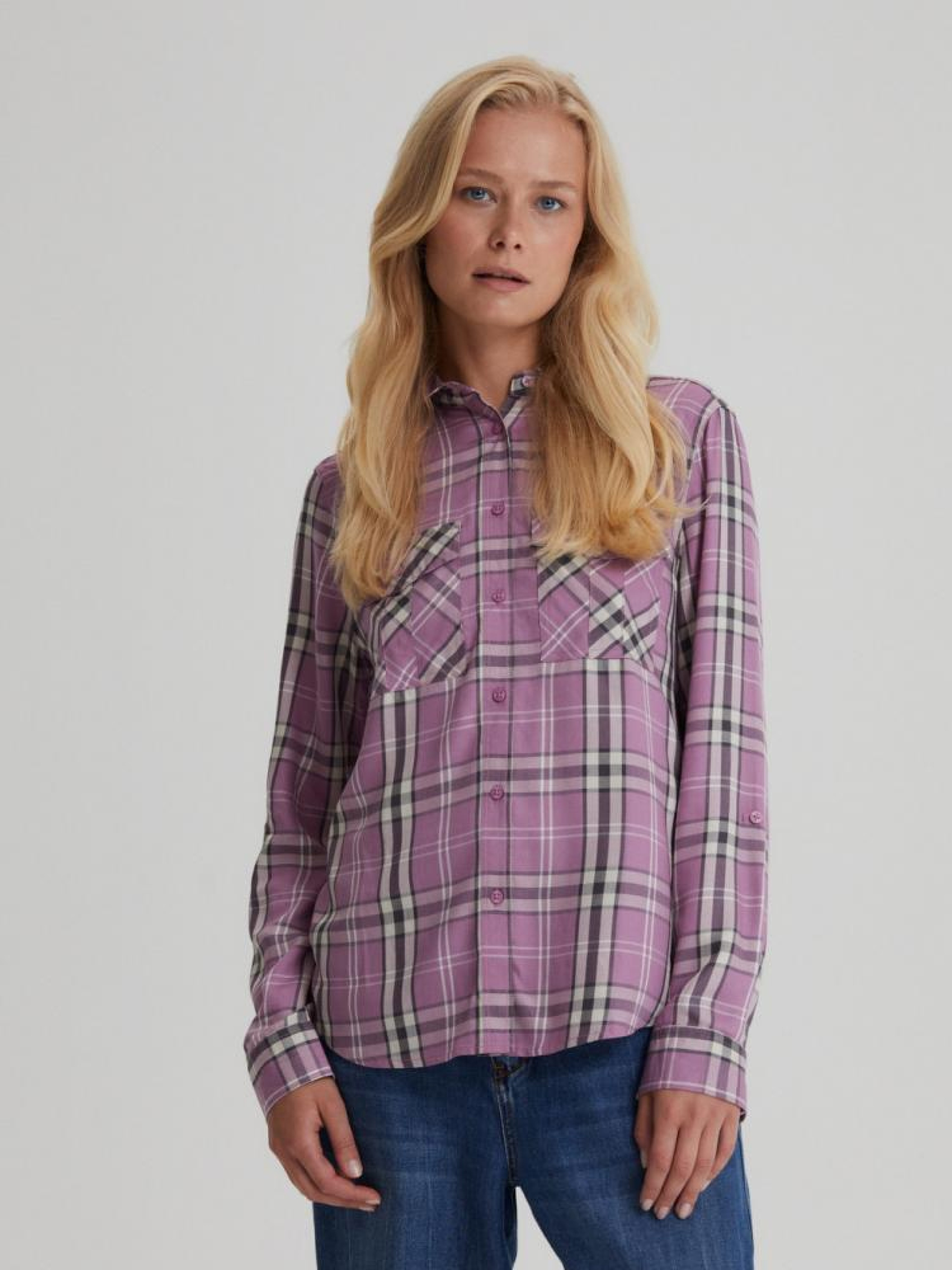 Сорочка HIRU 10042894 Повсякденна сорочка з м'якої тканини: - вільна форма, - застібка спереду на ґудзики, - класичний комір, - довгий рукав з манжетом на ґудзиках, - передні кишені з клапанами та застібкою на ґудзиках, - малюнок у клітку для повсякденного стилю, - доступна у багатоколірному виконанні. Сезон: осінь/зима Склад: 100% віскоза Догляд: - прання при максимум 30 °С - не відбілювати - не сушити в сушильній машині - прасувати максимум при темп. 150 °С - не проводити хімчистку Розмір на моделі - S Зріст моделі - 173 см РОЗМІР: XS, S, М, L. XL, ЗАГАЛЬНА ДОВЖИНА СПИНКИ: 66,00 см, 68,00 см, 70,00 см, 72,00 см, 74,00 см, ШИРИНА НИЗУ: 50,00 см, 52,00 см, 54,00 см, 56,00 см, 58,00 см, ШИРИНА ГРУДЕЙ: 47,50 см, 49,50 см, 51,50 см, 53,50 см, 55,50 см, ЗОВНІШНЯ ДОВЖИНА РУКАВА: 60,00 см, 60,00 см, 61,00 см, 62,00 см, 63,00 см,