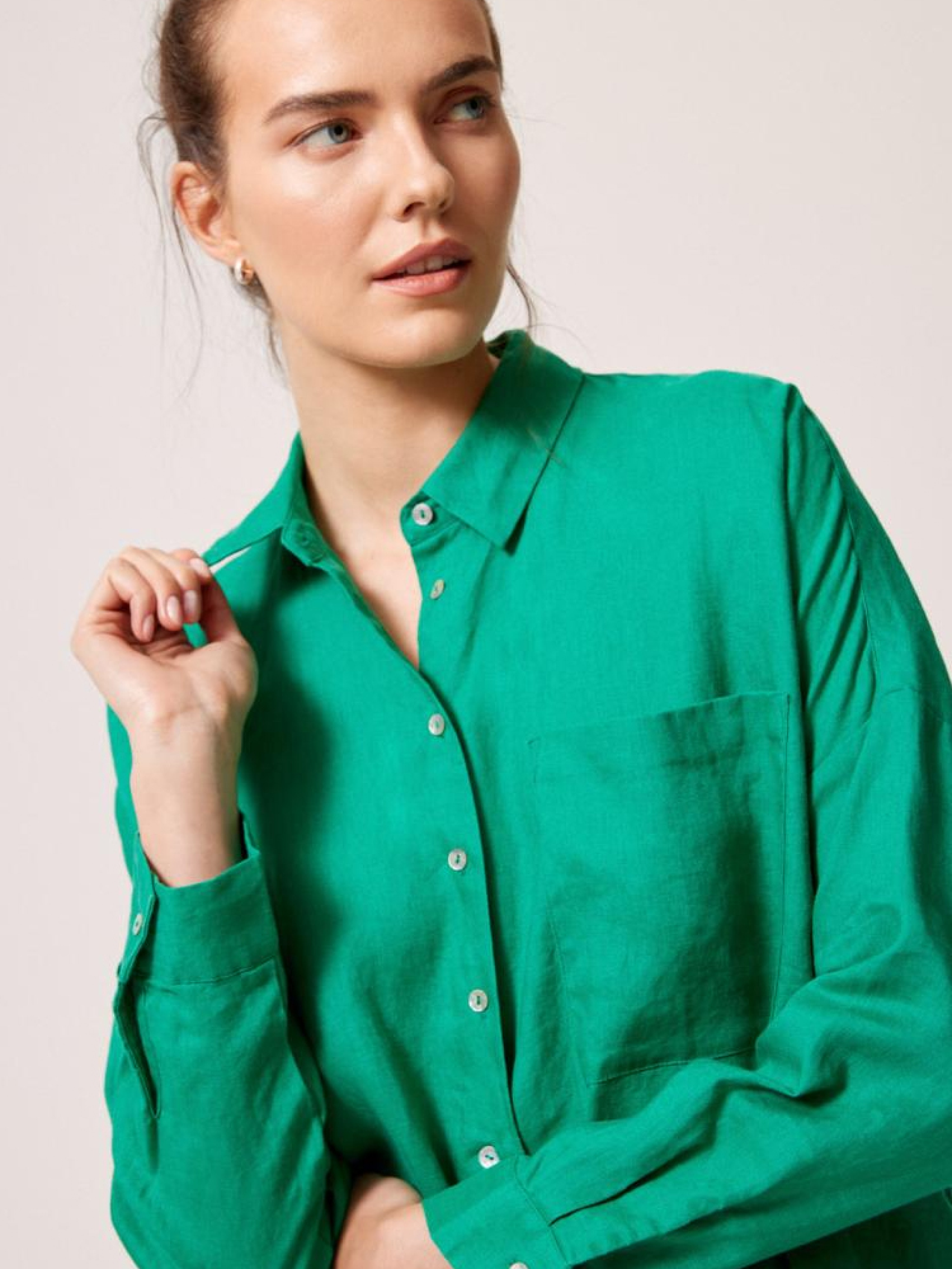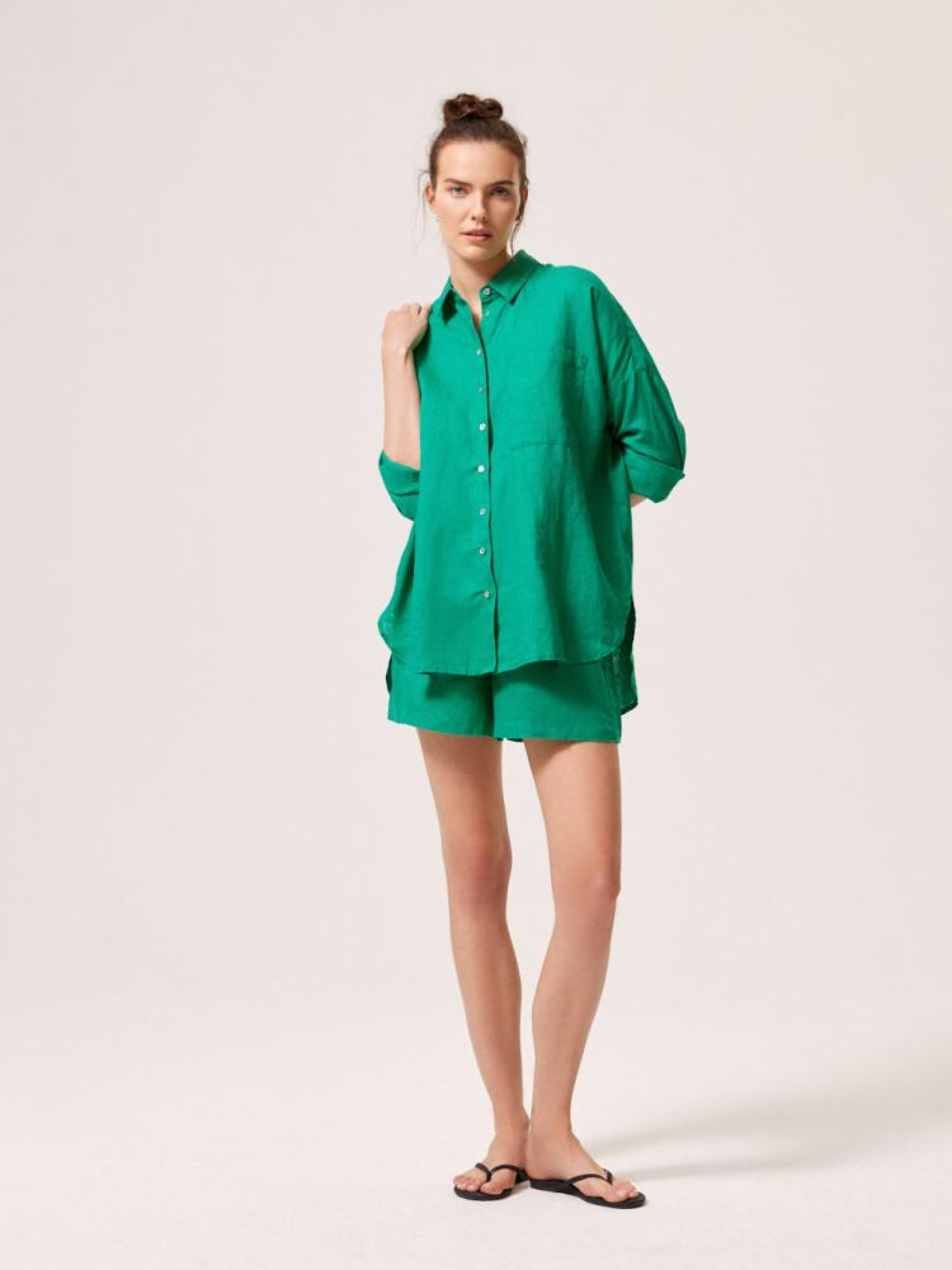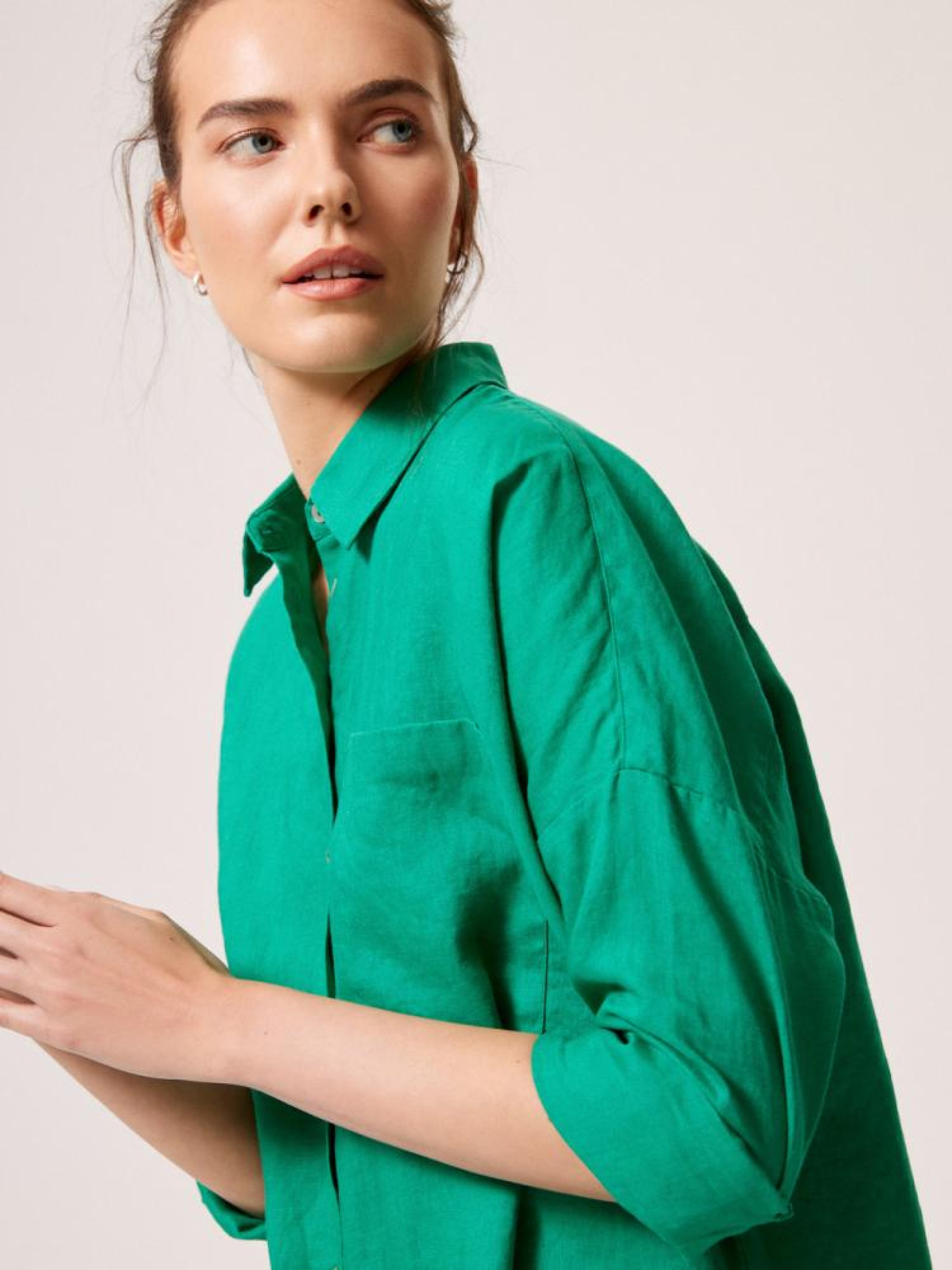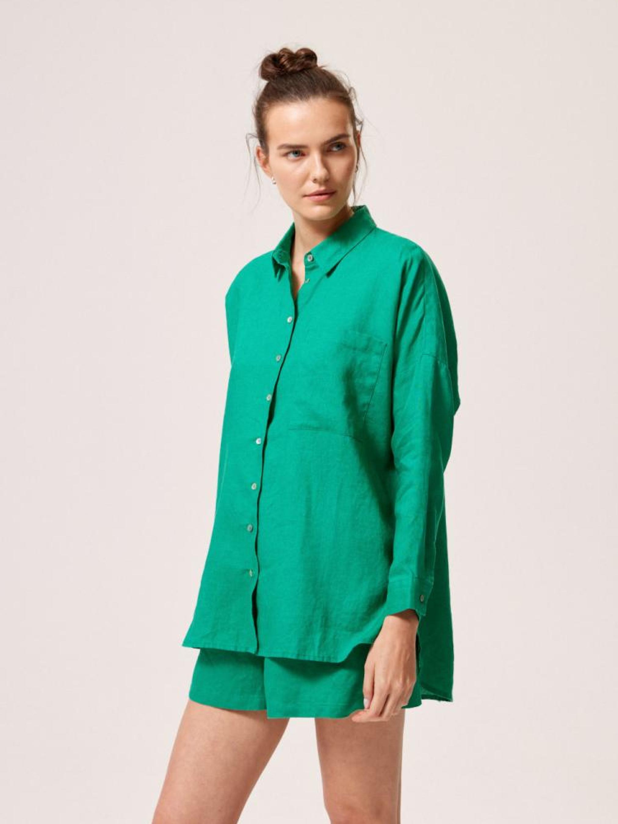Сорочка AMIU 10044616 Лляна сорочка з коміром і подовженою спинкою: - вільного крою, - з льону, - з кишенею спереду, - з подовженою спинкою, - з коміром, - із закоченими рукавами, - в наявності зеленого кольору. Сезон: Весна/Літо 2024. Склад: 100% льон. Догляд: - прання при максимум 30 °С - не відбілювати - не сушити в сушильній машині - прасувати максимум при темп. 150 °С - не проводити хімчистку Розмір на моделі – S Зріст моделі – 180 см РОЗМІР: XS, S, М, L. XL, ЗАГАЛЬНА ДОВЖИНА СПИНКИ: 80,00 см, 82,00 см, 84,00 см, 86,00 см, 88,00 см, ШИРИНА НИЗУ: 62,00 см, 64,00 см, 66,00 см, 68,00 см, 70,00 см, ШИРИНА ГРУДЕЙ: 69,00 см, 71,00 см, 73,00 см, 75,00 см, 77,00 см, ЗОВНІШНЯ ДОВЖИНА РУКАВА: 40,50 см, 40,50 см, 41,50 см, 42,50 см, 43,50 см,