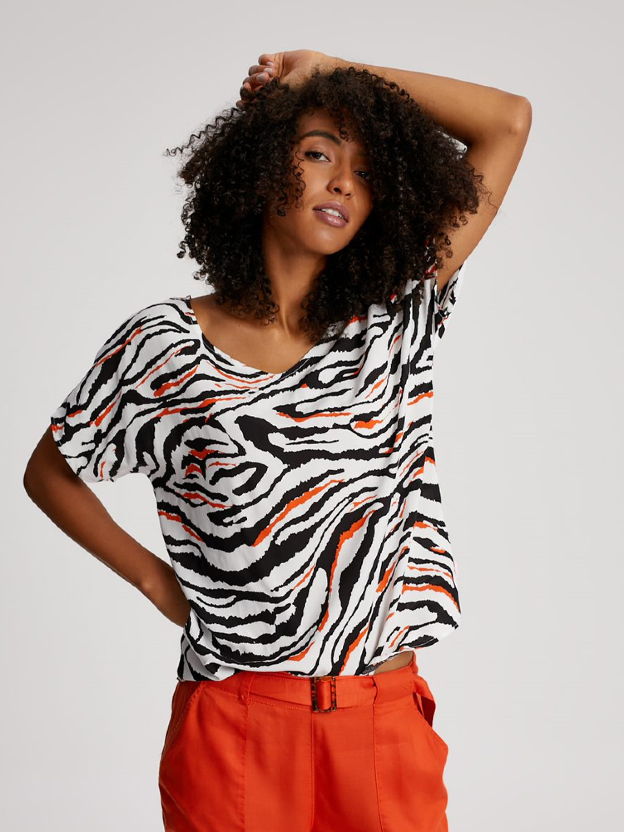 Брендовий жіноча сорочка KIMO прямого крою. З V-подібним вирізом з двох сторін і брендовим візерунком колекції Crazy zebra. М'яка приємна на дотик відмінно підходить для щоденних прогулянок в спекотні літні дні і теплою весною. Сорочку можна купити в одному кольорі. Ідеально поєднується з брюками, шортами, кедами, еспадрільї з асортименту. Сезон: Весна / Літо. Склад: 100% віскоза РОЗМІР: XS, S, М, L, XL, ЗАГАЛЬНА ДОВЖИНА СПИНИ:45 см, 47 см, 49 см, 51 см, 53 см, ШИРИНА НИЗУ:49 см, 51 см, 53 см, 55 см, 57 см, ШИРИНА ГРУДЕЙ:66 см, 68 см, 70 см, 72 см, 74 см, ДОВЖИНА ЗОВНІШНЬОГО РУКАВА:26 см, 26 см, 27 см, 27 см, 28 см