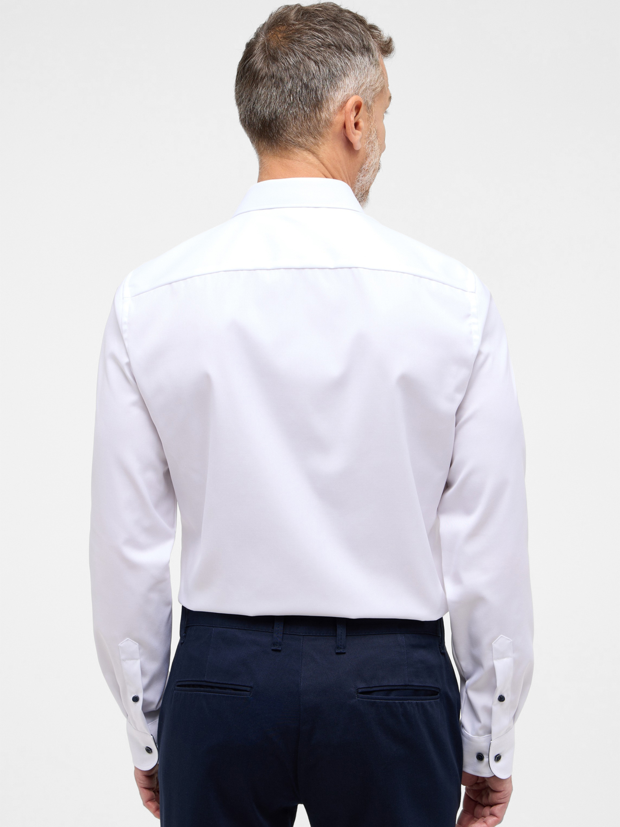 Ця біла сорочка від бренду Eterna поєднує класичний стиль та сучасний комфорт. Приталений силует Modern Fit підкреслює фігуру, забезпечує свободу рухів, а класичний відкладний комір робить сорочку універсальною — для роботи та повсякденного стилю. Застібка на ґудзики, довгі рукави та акуратні манжети доповнюють елегантний образ. Виготовлена з 100% бавовни, тканина приємна на дотик, дихає та не просвічується. Сорочка легко підтримується в охайному стані і не потребує постійного прасування.