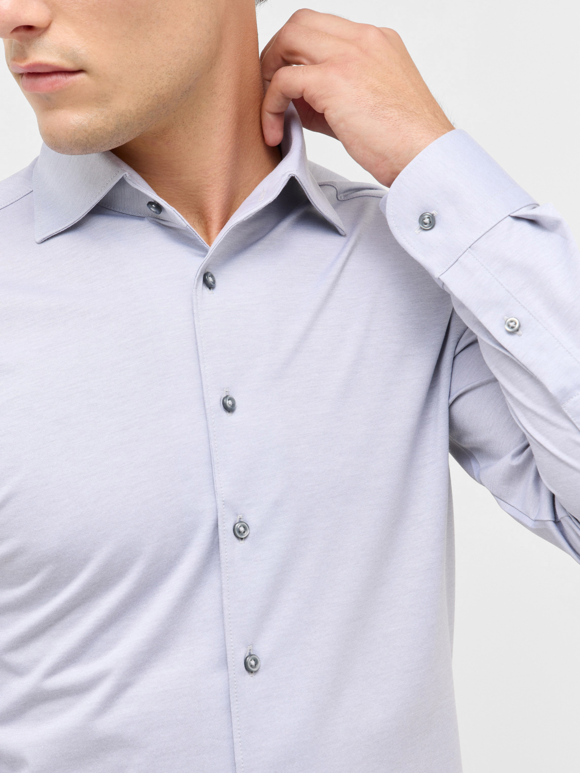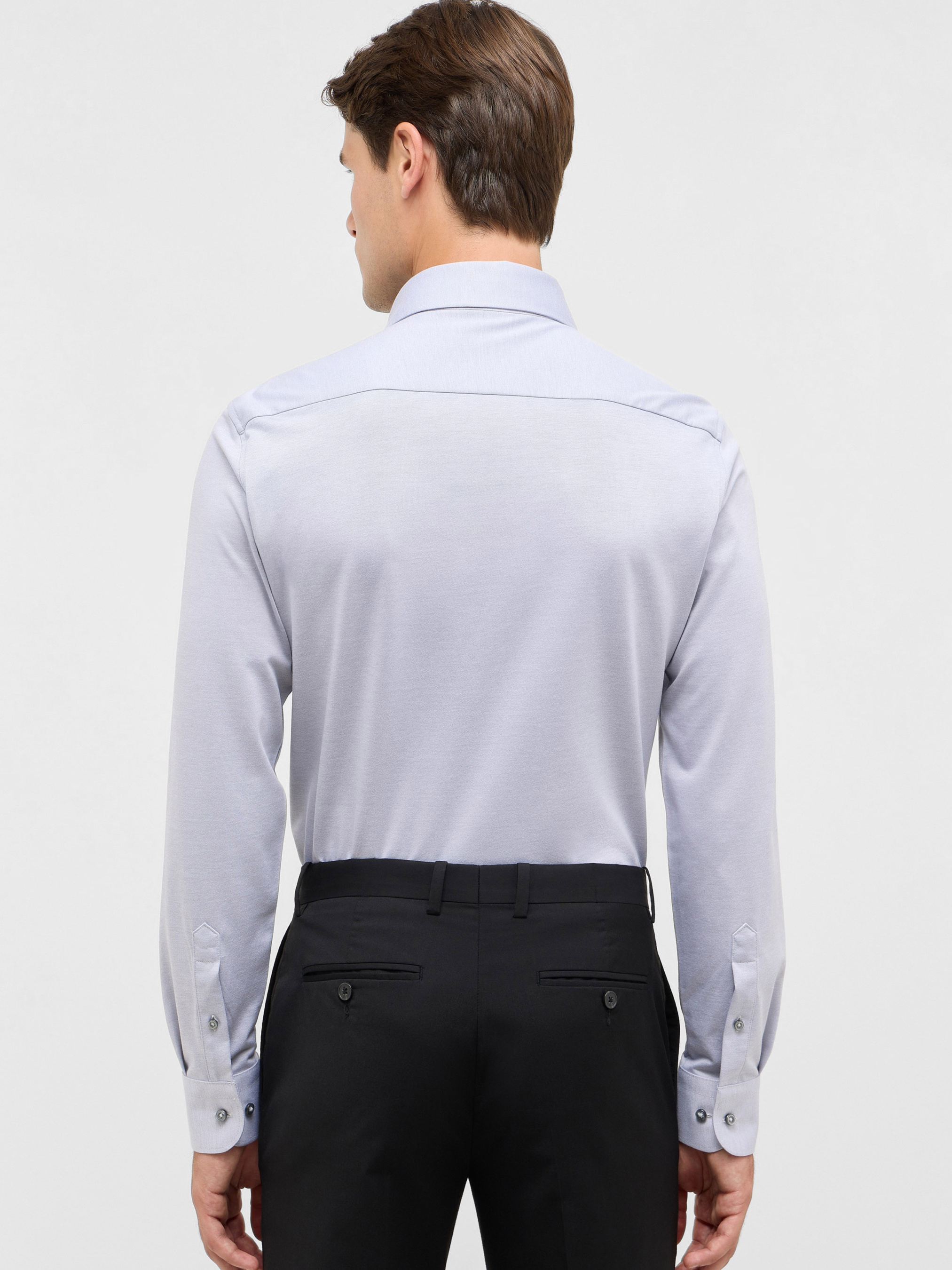 Ця сорочка від преміальної лінії 1863 by ETERNA — поєднання класичної елегантності та сучасного комфорту. Виконана з високоякісного трикотажного полотна Japanese Knitted Jersey, вона забезпечує надзвичайну м’якість і свободу рухів, зберігаючи при цьому бездоганний вигляд протягом дня. Характеристики моделі: Фасон: Slim Fit — сучасна, злегка приталена посадка. Колір: сірий. Комір: Kent (класичний варіант, універсальний для офісу й повсякденних образів). Склад тканини: 58% бавовна, 42% поліестер. Матеріал: трикотажне полотно Japanese Knitted — м’яке, еластичне, приємне до тіла. Особливості: легке прасування (Easy Iron), дихаюча структура тканини, висока зносостійкість. Застібка: класична планка на ґудзиках. Рукав: довгий з манжетами. Переваги: Преміальна якість виконання з увагою до кожної деталі. Поєднання елегантного вигляду класичної сорочки з комфортом трикотажу. Ідеальний вибір для офісу, ділових зустрічей і розслаблених smart-casual образів.