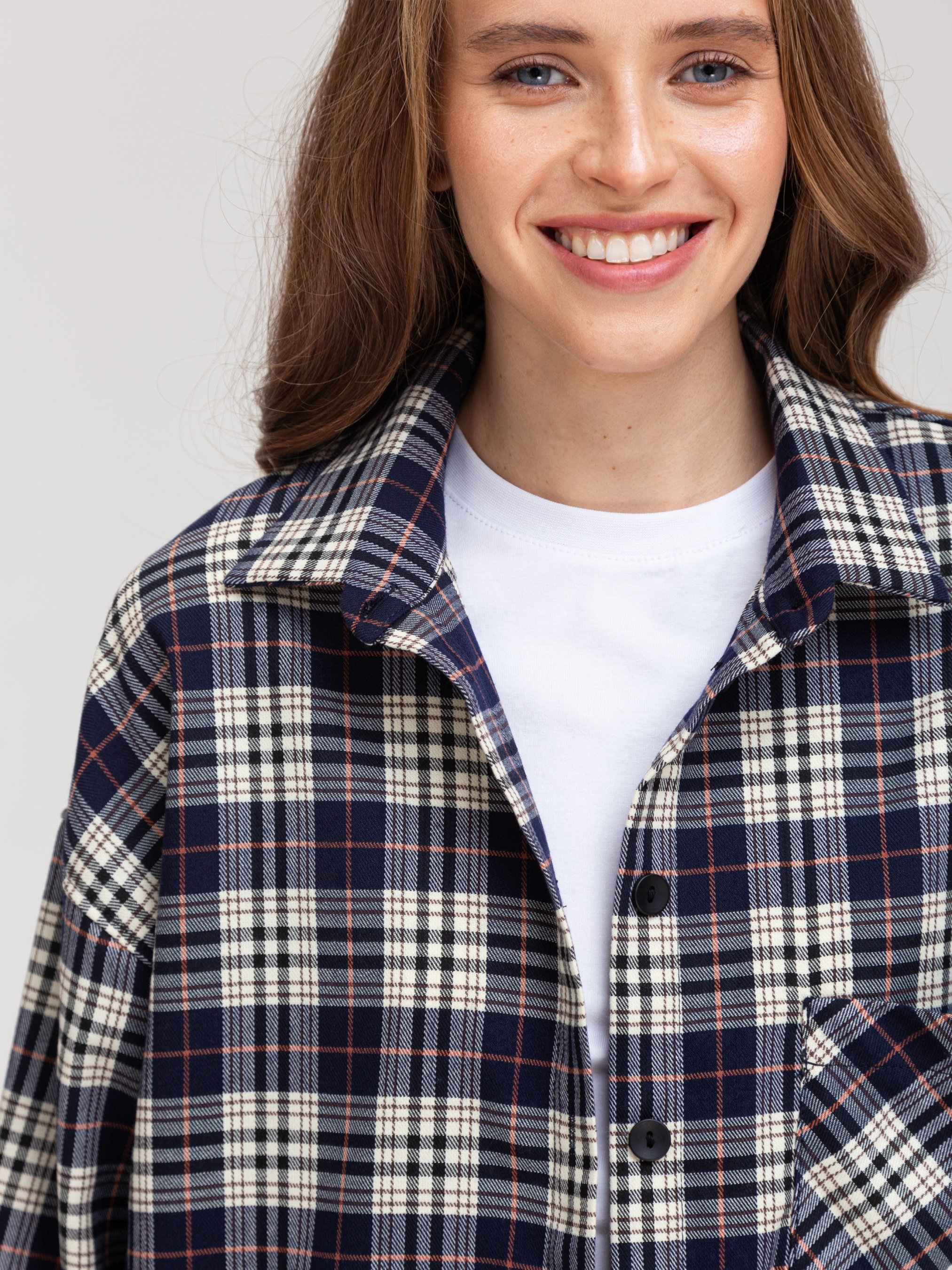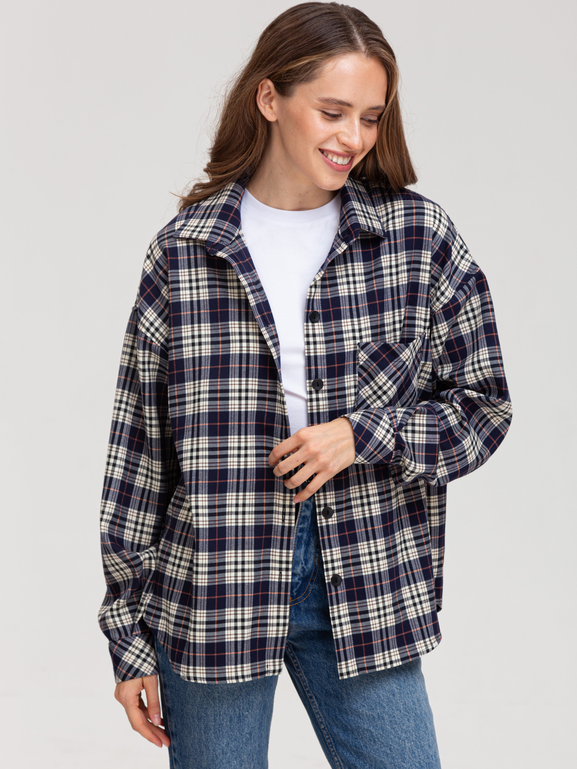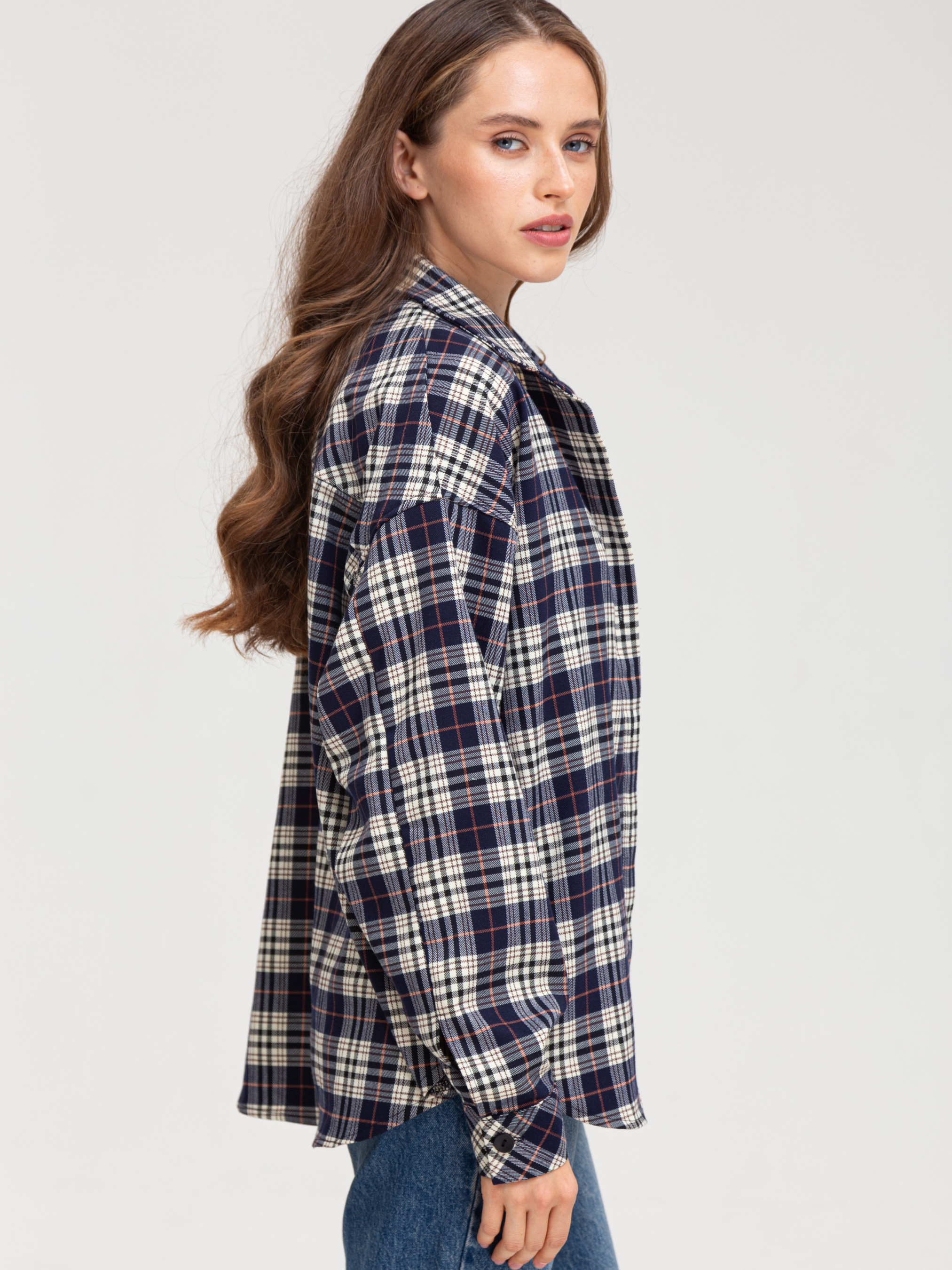 Сорочка в клітинку - це універсальний елемент гардеробу, який дозволяє створювати різноманітні образи. Вона є стильною, комфортною і підходить для різних випадків. • Кольорова гама: Переважають чорний, білий та сірий кольори. Клітинка досить велика і чітка, що надає сорочці виразного вигляду. • Фасон: Сорочка має вільний крій, що робить її комфортною у носінні. Рукава широкі, зібрані в манжети. Комбінація вільного крою та клітчастого візерунка надає сорочці сучасного і трохи бунтарського вигляду. • Деталі: Сорочка має нагрудну кишеню, яка додає функціональності. Комір класичний, застібка на гудзики. Стиль: Ця сорочка відмінно впишеться в повсякденний гардероб. Її можна носити як з джинсами, так і з легінсами або шортами. Залежно від обраних аксесуарів, сорочку можна зробити основою як повсякденного, так і більш стильного образу. Можливі образи: • Повсякденний: Сорочка в клітинку, джинси, кросівки або кеди. • Стильний: Сорочка в клітинку, шкіряна спідниця, ботфорти. • Офісний (неформальний): Сорочка в клітинку, брюки, туфлі на низькому ходу. Оскільки тканина містить як натуральні, так і синтетичні волокна, догляд за нею вимагає певної обережності. Обов'язково ознайомтеся з ярликом на виробі.Загальні рекомендації: Прання: Бажано прати виріб при температурі води не вище 30-40 градусів за Цельсієм. Вибирайте делікатний режим прання або ручне прання. Використовуйте рідкий пральний засіб для кольорових тканин. Уникайте віджимання на високих обертах. Прасування: • Прасувати виріб бажано з вивороту при середній температурі. Можна використовувати пар.
