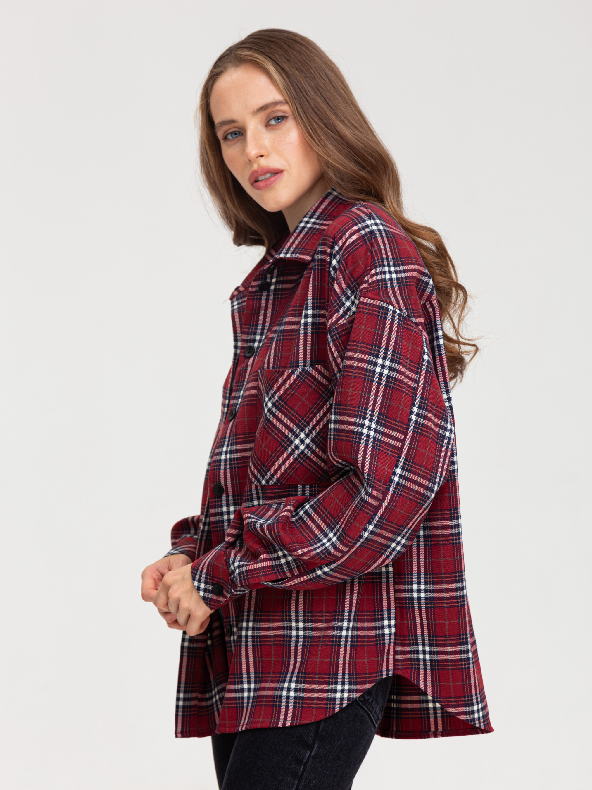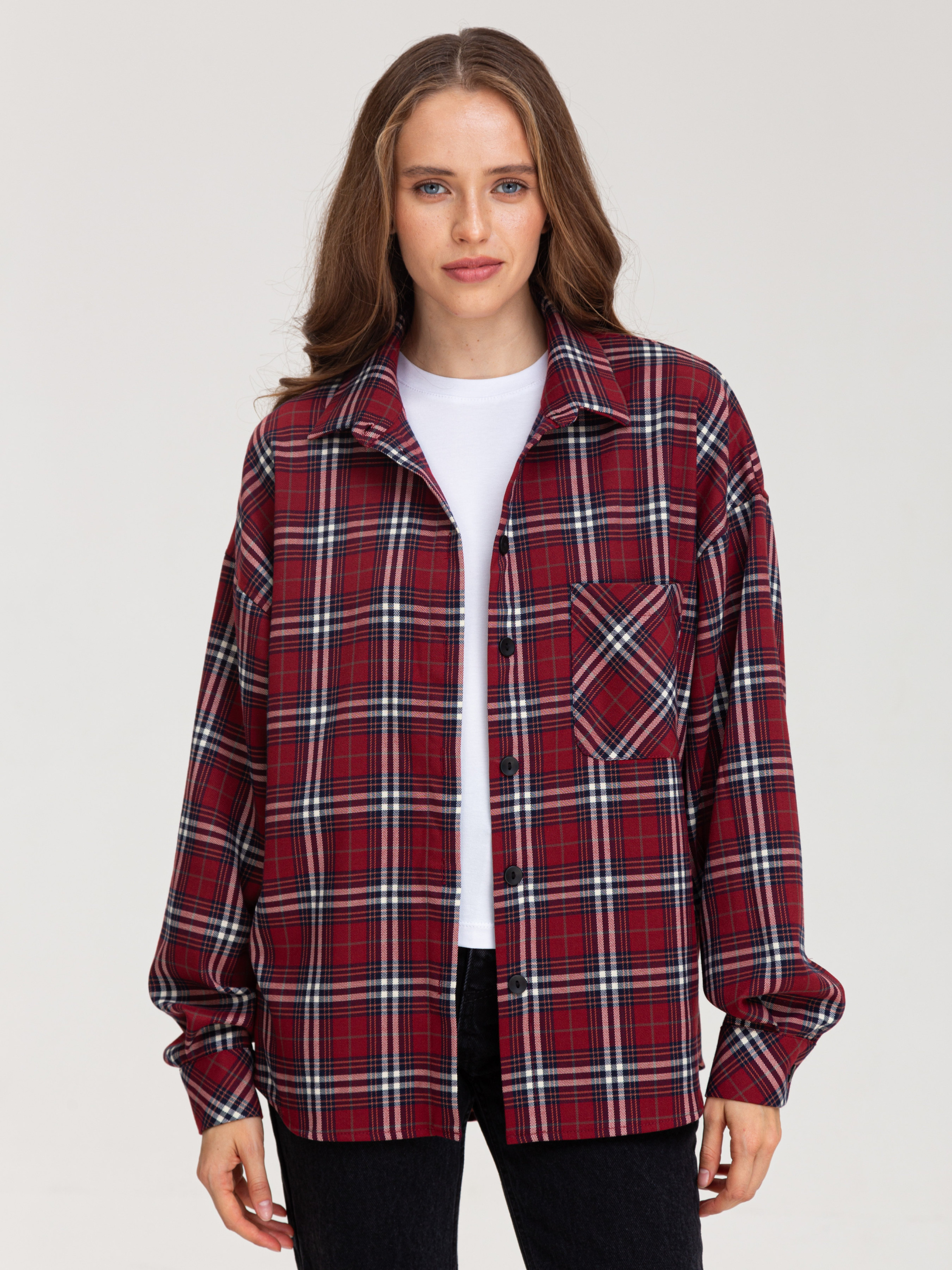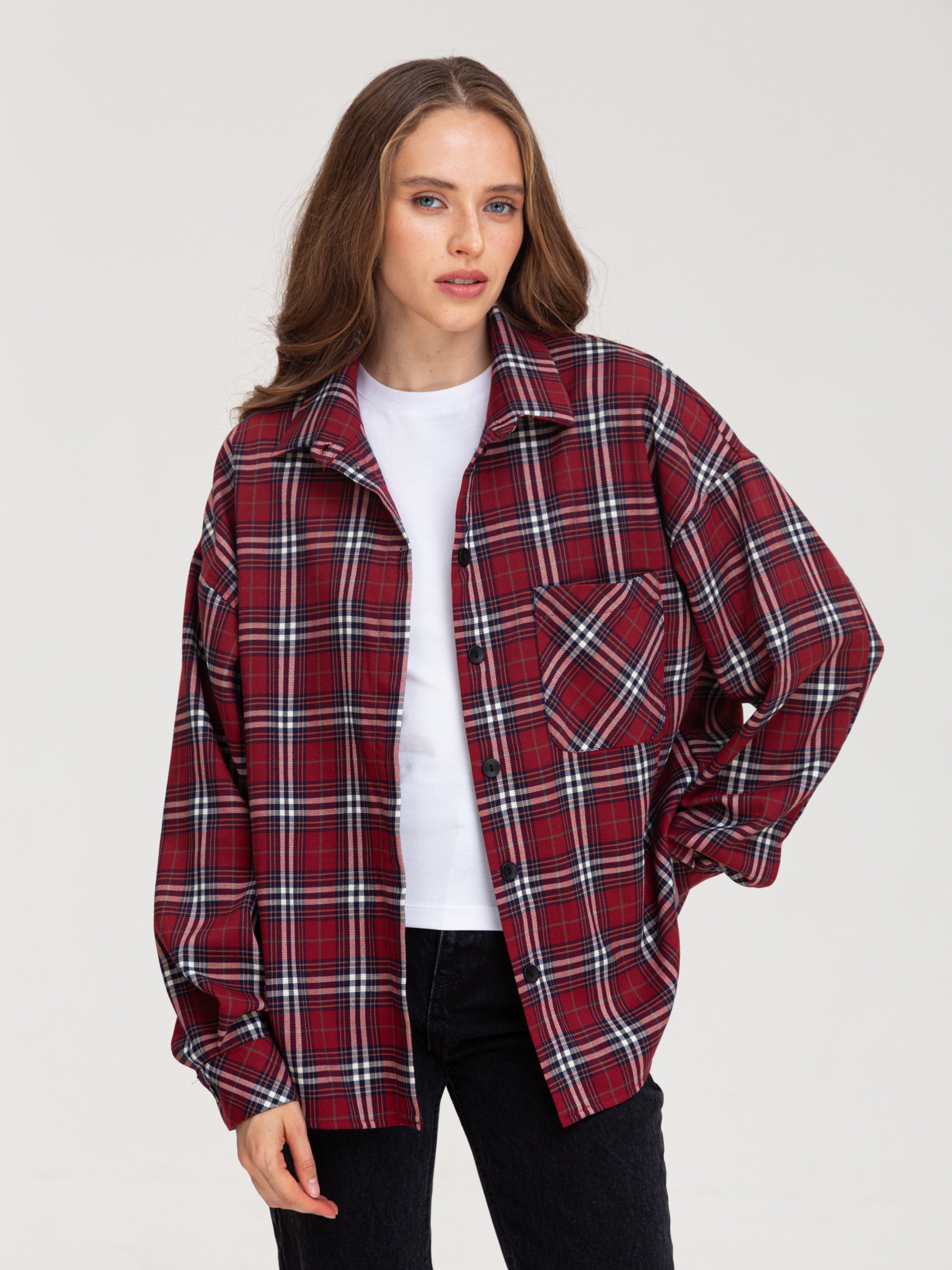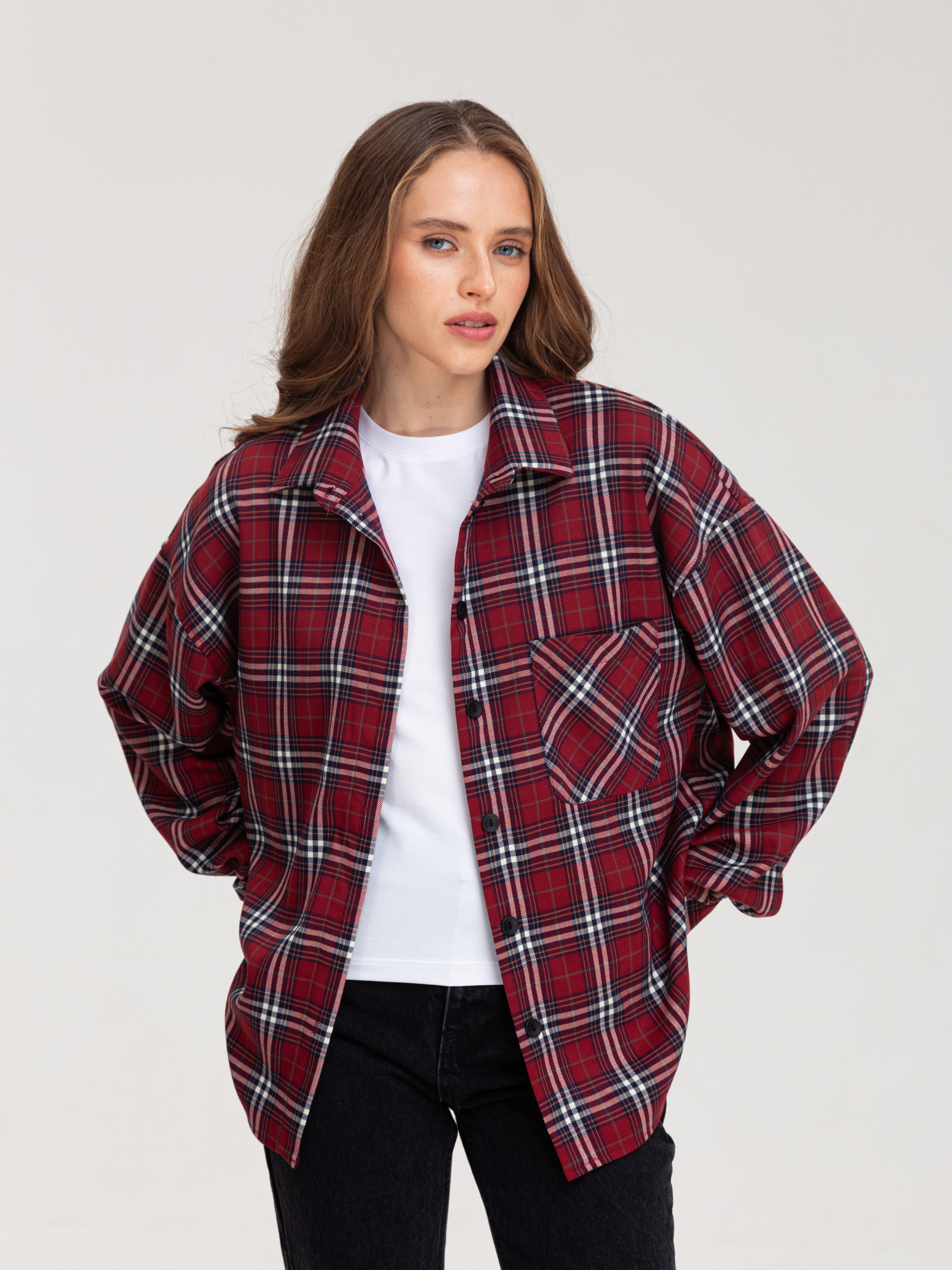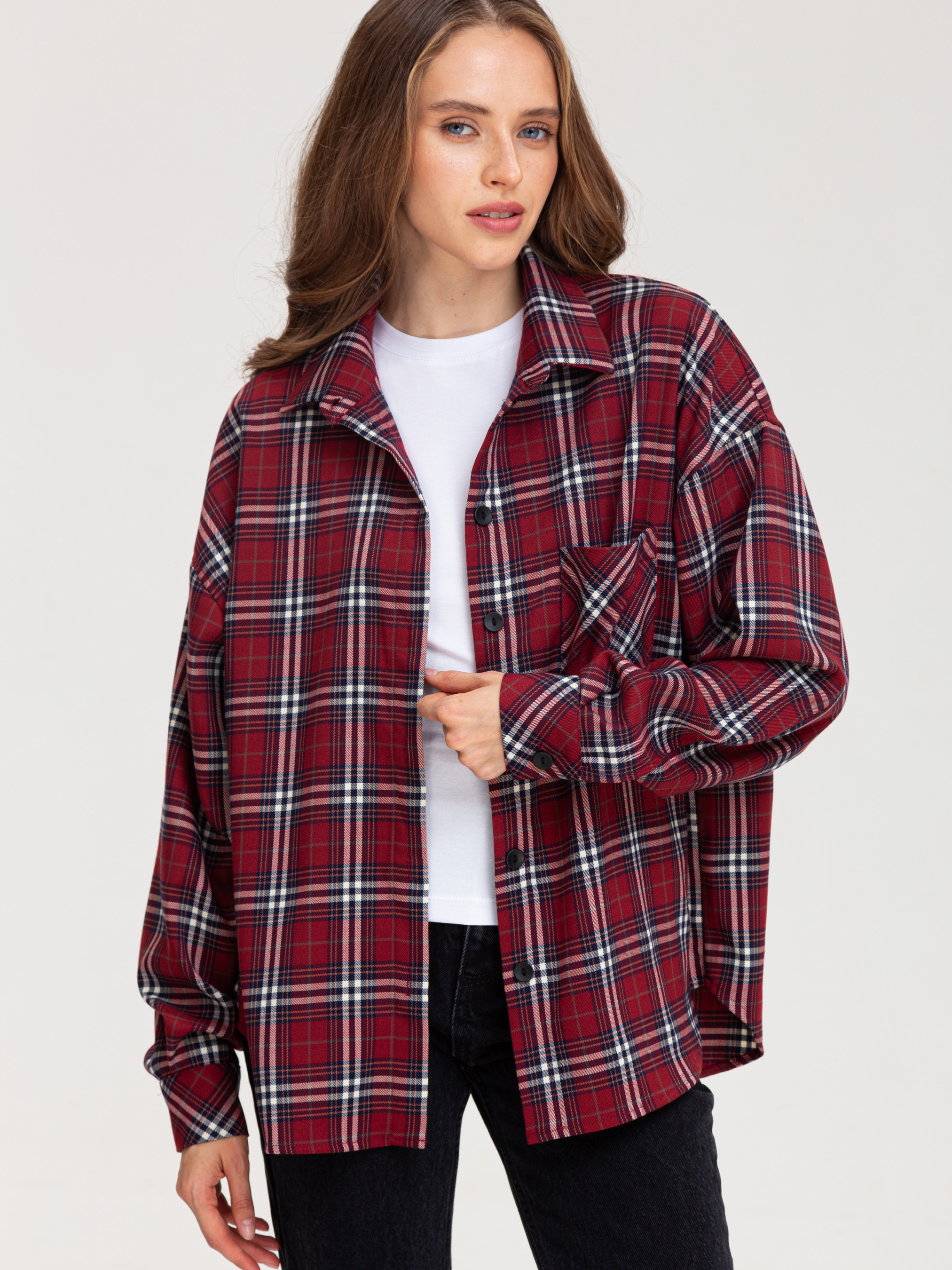 Сорочка в клітинку - це універсальний елемент гардеробу, який дозволяє створювати різноманітні образи. Вона є стильною, комфортною і підходить для різних випадків. • Кольорова гама: Переважають чорний, білий та сірий кольори. Клітинка досить велика і чітка, що надає сорочці виразного вигляду. • Фасон: Сорочка має вільний крій, що робить її комфортною у носінні. Рукава широкі, зібрані в манжети. Комбінація вільного крою та клітчастого візерунка надає сорочці сучасного і трохи бунтарського вигляду. • Деталі: Сорочка має нагрудну кишеню, яка додає функціональності. Комір класичний, застібка на гудзики. Стиль: Ця сорочка відмінно впишеться в повсякденний гардероб. Її можна носити як з джинсами, так і з легінсами або шортами. Залежно від обраних аксесуарів, сорочку можна зробити основою як повсякденного, так і більш стильного образу. Можливі образи: • Повсякденний: Сорочка в клітинку, джинси, кросівки або кеди. • Стильний: Сорочка в клітинку, шкіряна спідниця, ботфорти. • Офісний (неформальний): Сорочка в клітинку, брюки, туфлі на низькому ходу. Оскільки тканина містить як натуральні, так і синтетичні волокна, догляд за нею вимагає певної обережності. Обов'язково ознайомтеся з ярликом на виробі.Загальні рекомендації: Прання: Бажано прати виріб при температурі води не вище 30-40 градусів за Цельсієм. Вибирайте делікатний режим прання або ручне прання. Використовуйте рідкий пральний засіб для кольорових тканин. Уникайте віджимання на високих обертах. Прасування: • Прасувати виріб бажано з вивороту при середній температурі. Можна використовувати пар.