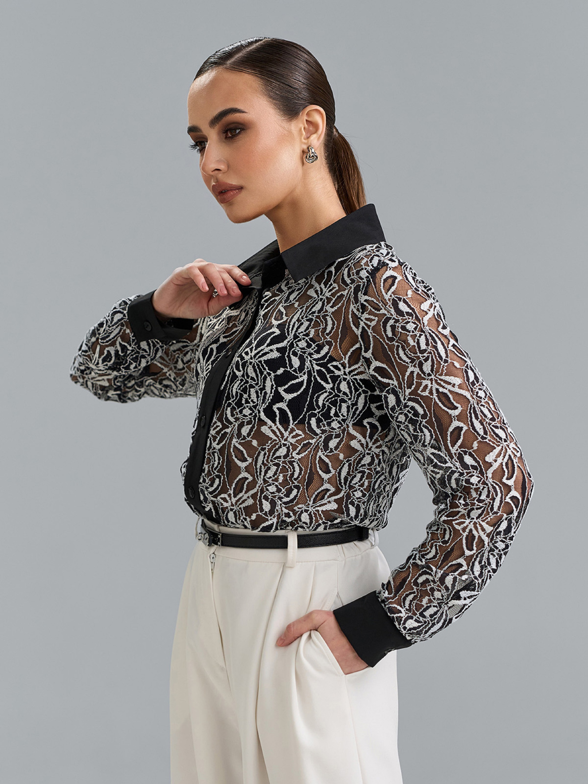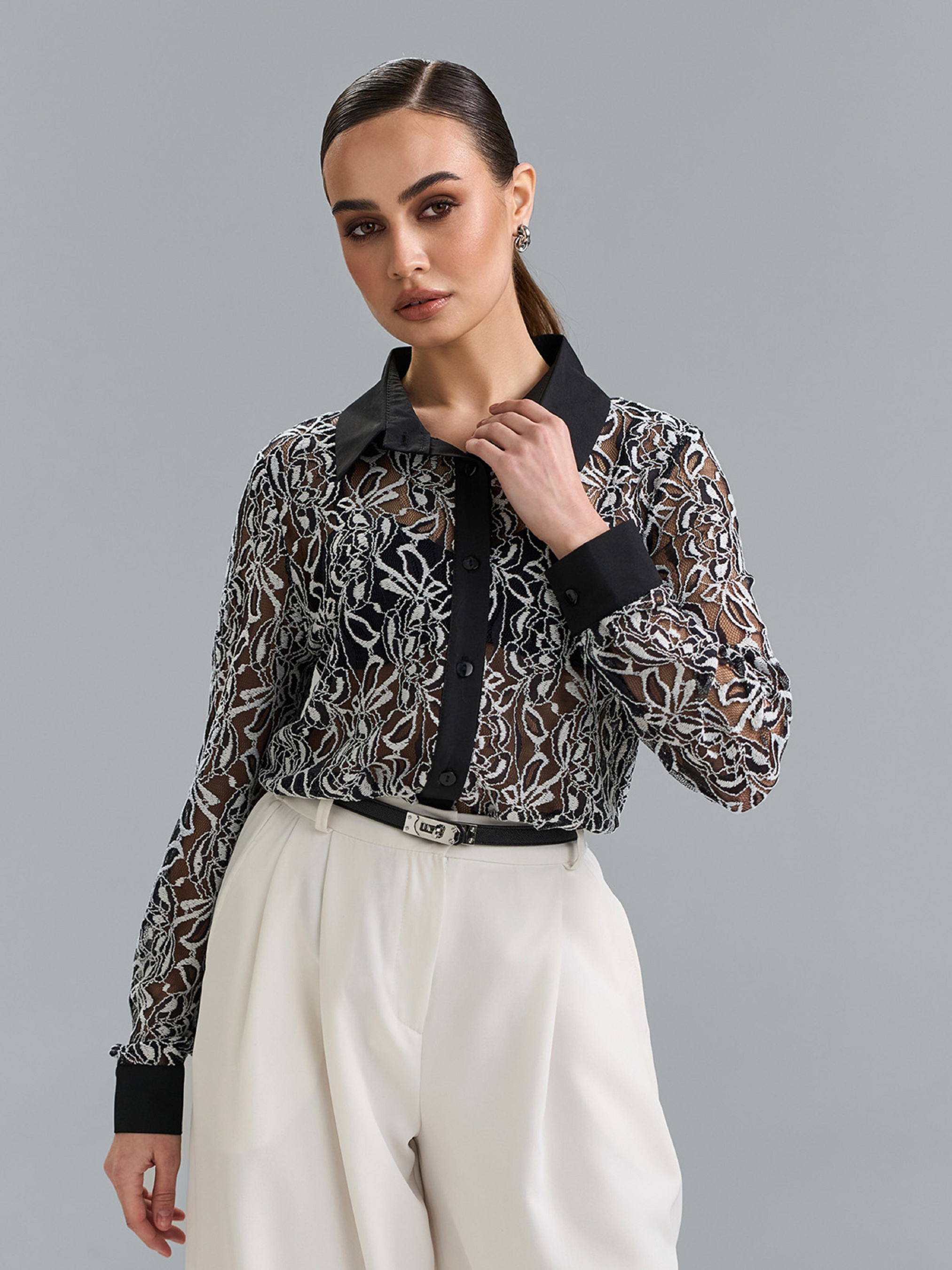 Сорочка повсякденна ISSA Plus модель 15516_черный_белый