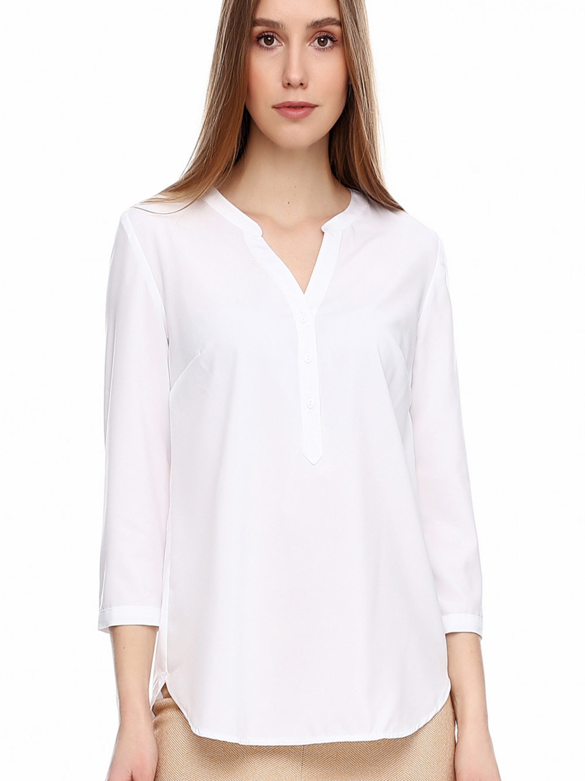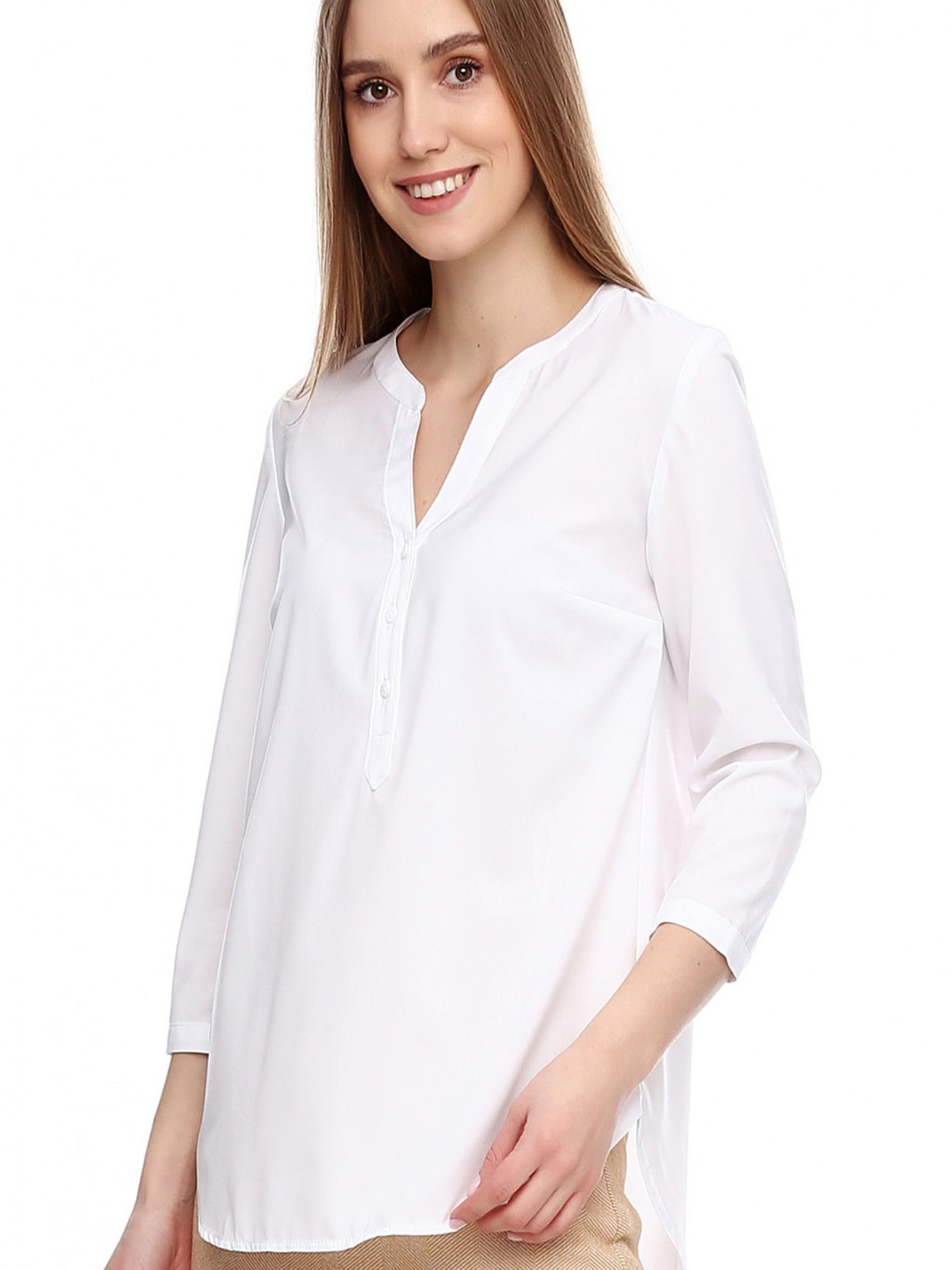 Жіноча біла блуза – 7/8 рукави, V-подібний виріз, прямий крій, класичний стиль ▪ Елегантність і комфорт у класичному виконанні.Ця біла блуза – ідеальне рішення для створення стриманого, стильного та універсального образу. Прямий крій забезпечує комфорт і свободу рухів, а V-подібний виріз додає елегантності та візуально подовжує шию. Рукави 7/8 роблять модель ще більш вишуканою. ● Основні характеристики: Матеріал: м’яка, приємна до тіла тканина, що добре пропускає повітря. Крій: прямий, універсальний, підходить для будь-якого типу фігури. Рукави: 7/8, зручні та стильні. Виріз: V-подібний, візуально витягує силует. Застібка: відсутня, модель легко надягається через голову. Колір: білий – класичний, легко поєднується з будь-якими відтінками. ● Як носити? Чудово комбінується з класичними брюками, спідницями або жакетом для офісного стилю, а також з джинсами для повсякденного образу. ● Ідеальний вибір для: Ділового та офісного стилю. Щоденних елегантних образів. Урочистих подій та зустрічей. Біла блуза з рукавами 7/8 – це класика, що завжди актуальна, надає образу витонченості та підходить для будь-якої події.