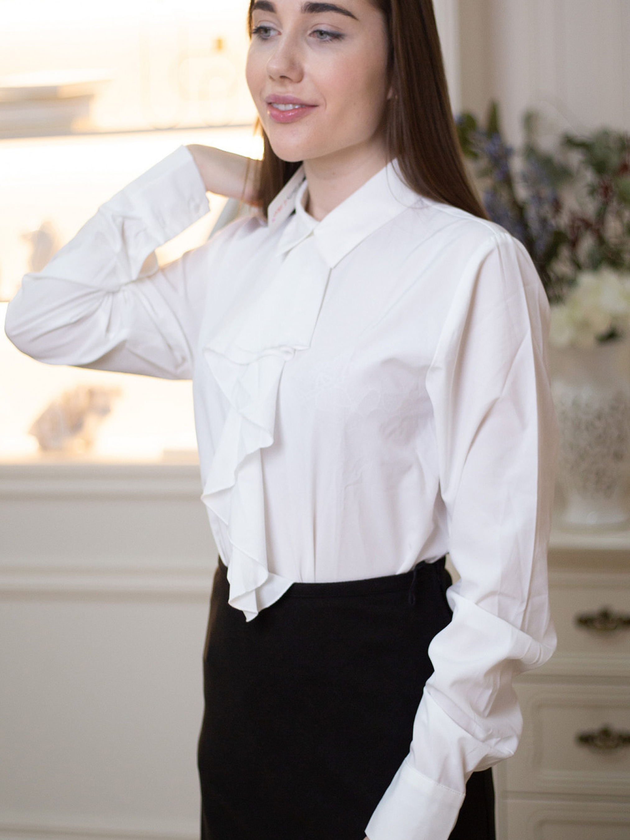 Жіноча блуза з манжетою та прямим широким кроєм — стильна і елегантна модель, яка підходить для різних випадків, від офісних образів до романтичних виходів. Особливості моделі: Манжета — додає елегантності і підкреслює вишуканість образу. Прямий крій — забезпечує зручність та комфорт протягом дня, підходить для будь-якої фігури. Широкий крій — дозволяє створити легкий і непринужденний вигляд, додаючи обсягу, що може виглядати особливо стильно. Через голову — зручна конструкція, яка спрощує процес одягання. Ідеально для: Нарядних образів, коли потрібно виглядати стильно, але при цьому комфортно. Офісного стилю — підходить для створення елегантних і строгих образів в межах дрес-коду. Романтичного стилю — універсальна модель, яка може виглядати жіночно та витончено в поєднанні з іншими елементами одягу. Сезонність: Ідеальна для весни та літа, завдяки легкому матеріалу та довгим рукавам.
