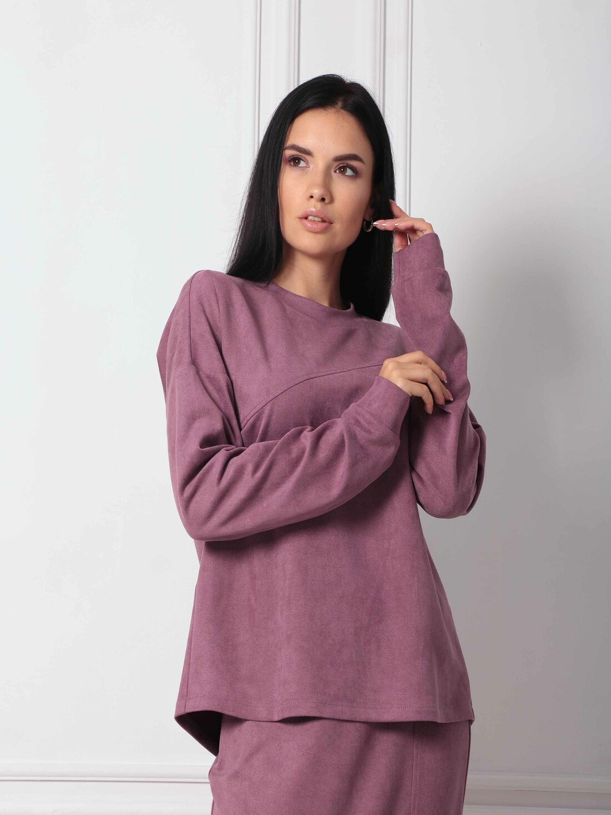 Стильна демісезонна блуза, що елегантно розкльошується донизу та сягає середини стегна, стане виразним елементом вашого гардеробу. Її округла горловина та спущена лінія плеча створюють м'який та невимушений силует. Просторий рукав завершується акуратною манжетою. Особливістю дизайну є оригінально замасковані в асиметричний шов нагрудні виточки. Спинка блузи має трохи подовжену лінію, що додає образу цікавої динаміки. Виготовлена з приємного на дотик твілу із замшем-діагоналлю, ця блуза поєднує стильний зовнішній вигляд та комфорт у носінні, ідеально підходячи для демісезонної погоди. Характеристики: Матеріал блузи: Твілл із замшем-діагональ (56% поліестер, 34% віскоза, 10% бавовна) Крій: Злегка розкльошена донизу Довжина: До середини стегна Горловина: Округла Рукав: Просторий, спущена лінія плеча, манжета Деталі: Асиметричний шов (маскує нагрудні виточки), подовжена спинка Стиль: Стильний, демісезонний, повсякденний Властивості: Комфортна тканина, оригінальний дизайн