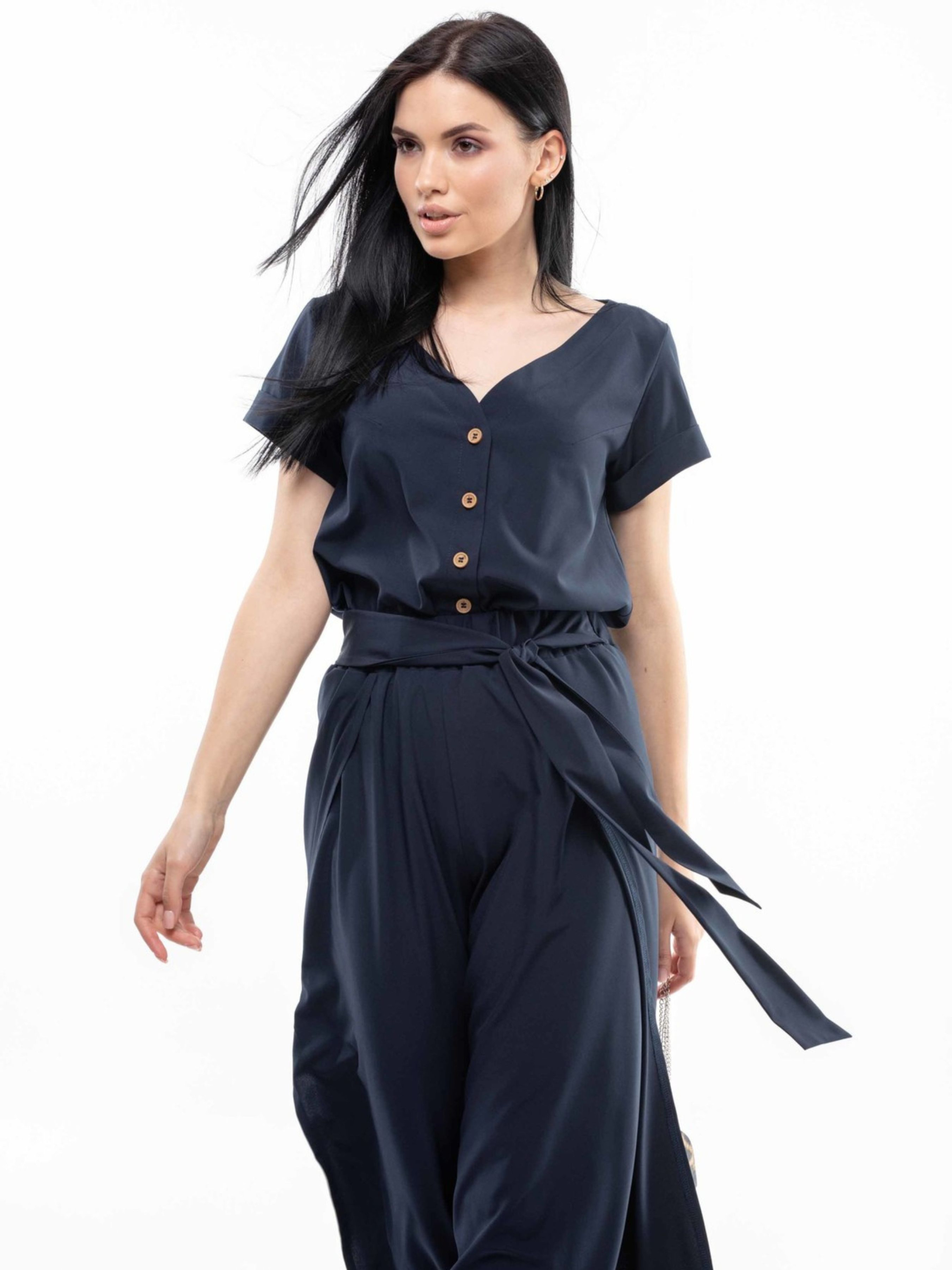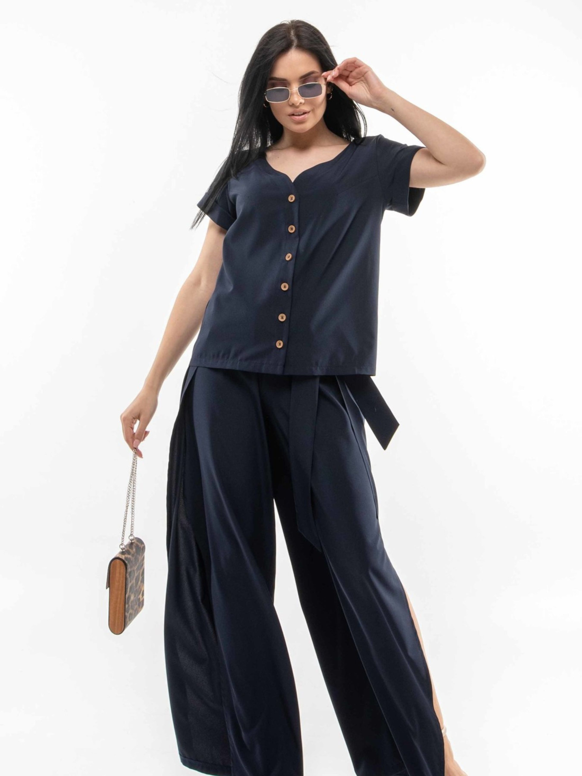 Трендова блуза вільного силуету, що елегантно сягає рівня стегон, зі спущеною лінією плеча, стане універсальним доповненням вашого гардеробу. Її елегантна розширена V-подібна горловина плавно переходить у функціональну застібку на ґудзики, додаючи образу витонченості. Широкі рукави завершуються акуратними манжетами. Ця ніжна блуза є досить класичною для офісу, але водночас легко комбінується з різними елементами гардеробу, допомагаючи створювати безліч стильних образів. Залежно від кольору, блуза виготовлена з різних, але однаково приємних до тіла тканин: Беж, капучино: Легкий та струмливий аер флоу муслін. Темно-синій, червоний: М'який та комфортний софт. Обидва матеріали забезпечують приємні тактильні відчуття та гарну посадку. Характеристики (залежно від кольору): Матеріал (беж, капучино): Аер флоу муслін (34% віскоза, 56% поліестер, 10% бавовна) - легка, струмлива тканина. Матеріал (т.синій, червоний): Софт (34% віскоза, 56% поліестер, 10% бавовна) - м'яка, приємна тканина. Крій: Вільний силует Довжина: До рівня стегон Горловина: Розширена V-подібна, переходить у застібку на ґудзики Рукав: Широкий, спущена лінія плеча, манжета Стиль: Універсальний, офісний (класичний), повсякденний, ніжний Властивості: Комфортна посадка, приємна тканина, легко комбінується