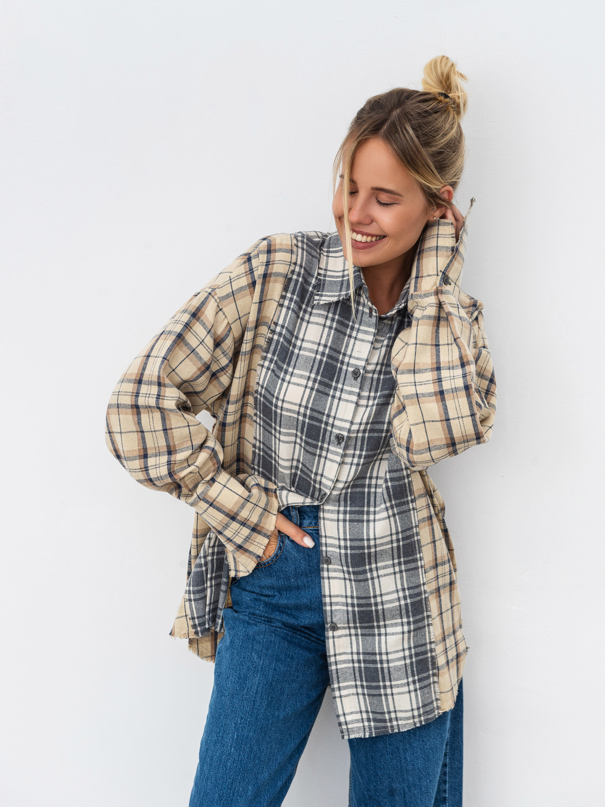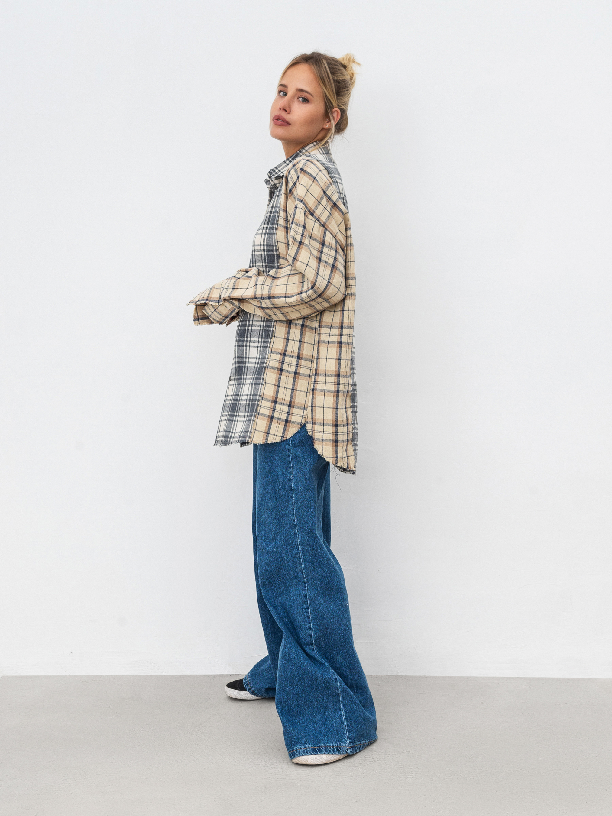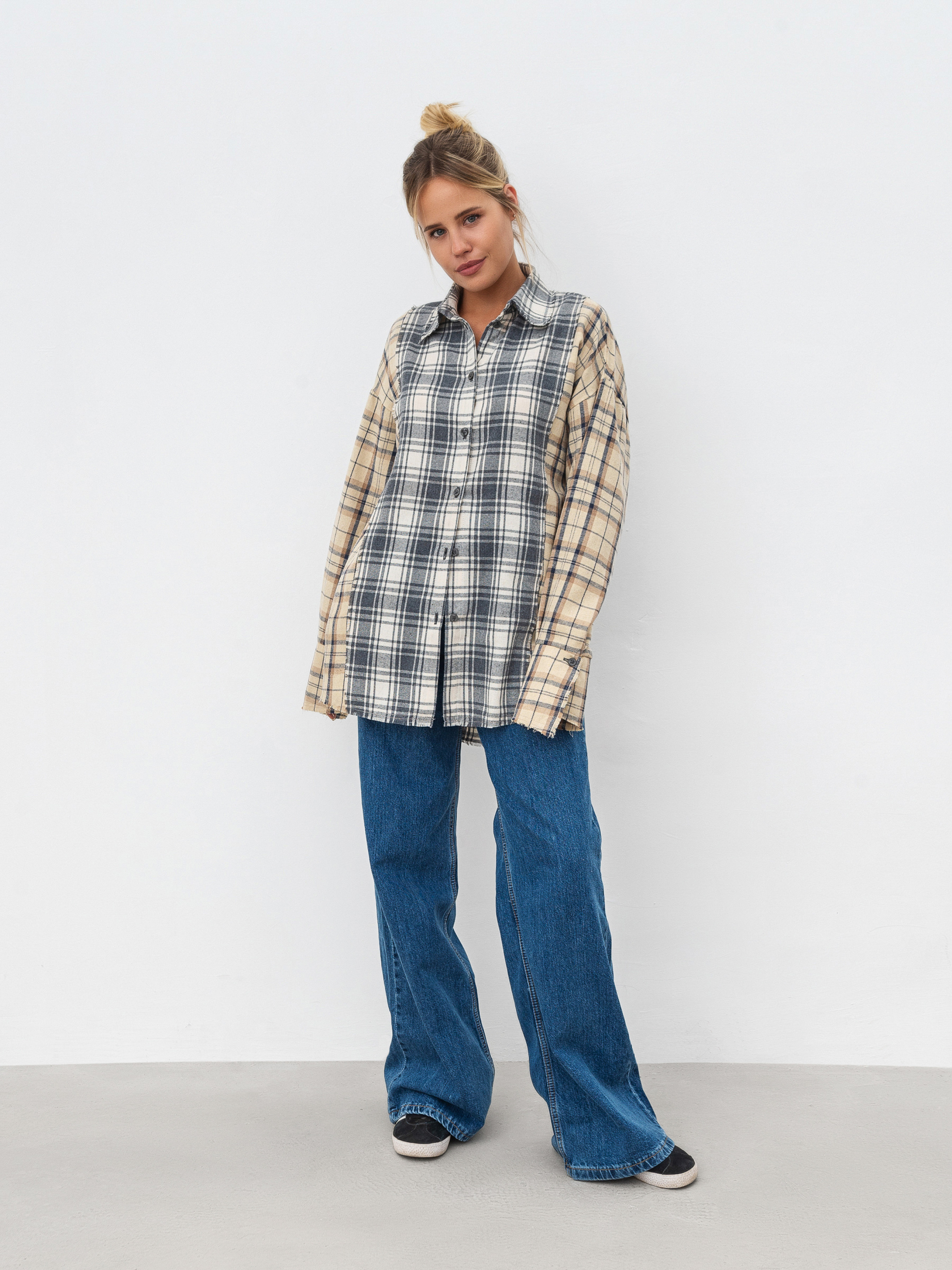 Сорочка з комбінованої байки. Вільний фасон з легка подовженими манжетами. Краї невідпрацьовані. Ідеально впишеться в образ із косухою та джинсами. XS-S Довжина по спині : 76 см Довжина рукава : 57 см Напівобхват грудей : 51 см Плечі : 55 см Напівобхват талії : 50 см S-M Довжина по спині : 76 см Довжина рукава : 57 см Напівобхват грудей : 55 см Плечі : 57 см Напівобхват талії : 54 см M-L Довжина по спині : 76 см Довжина рукава : 57 см Напівобхват грудей : 57 см Плечі : 59 см Напівобхват талії : 56 см L-XL Довжина по спині : 76 см Довжина рукава : 57 см Напівобхват грудей : 51 см Плечі : 55 см Напівобхват талії : 50 см XL-XXL Довжина по спині : 76 см Довжина рукава : 57 см Напівобхват грудей : 51 см Плечі : 55 см Напівобхват талії : 50 см