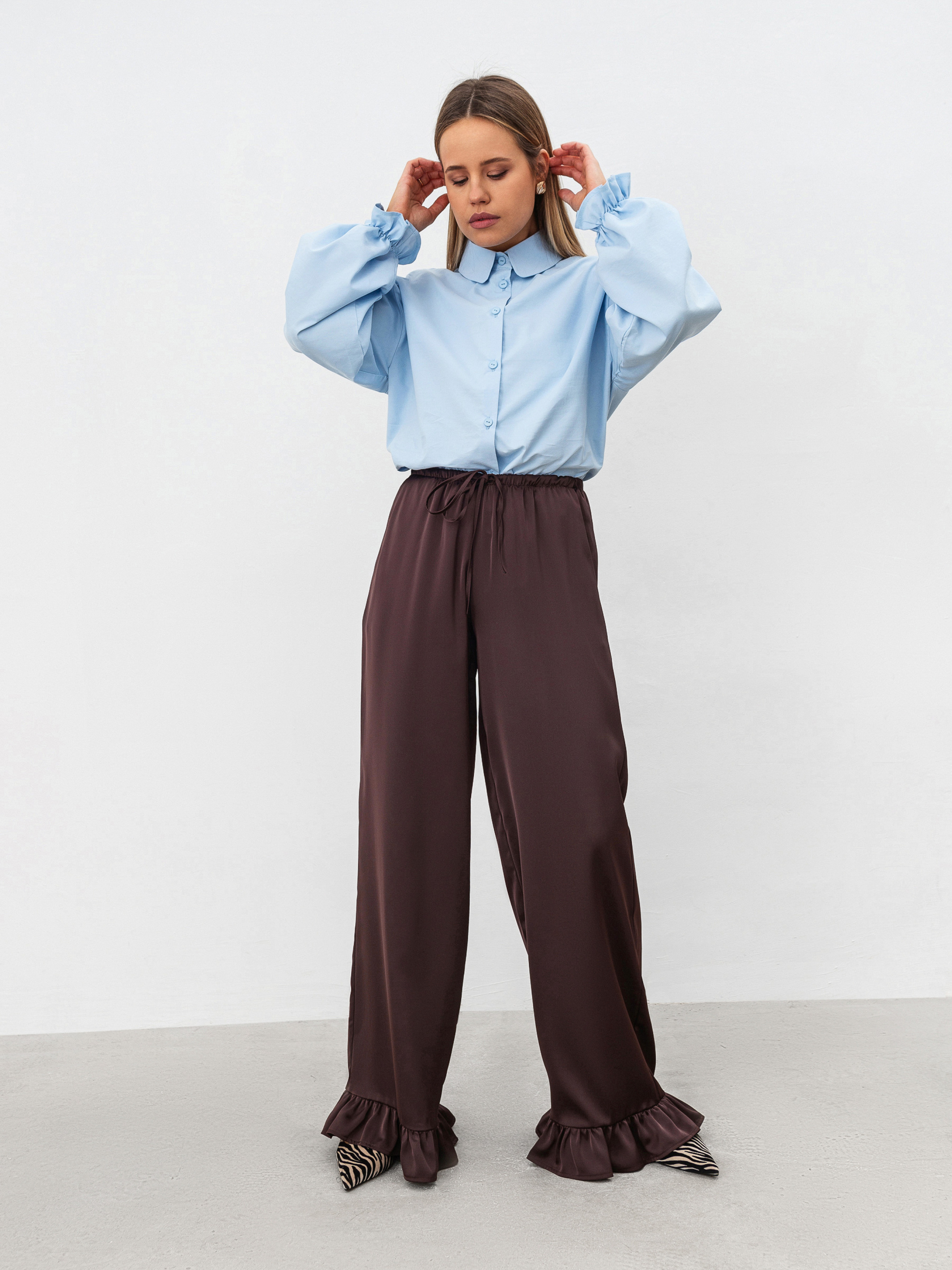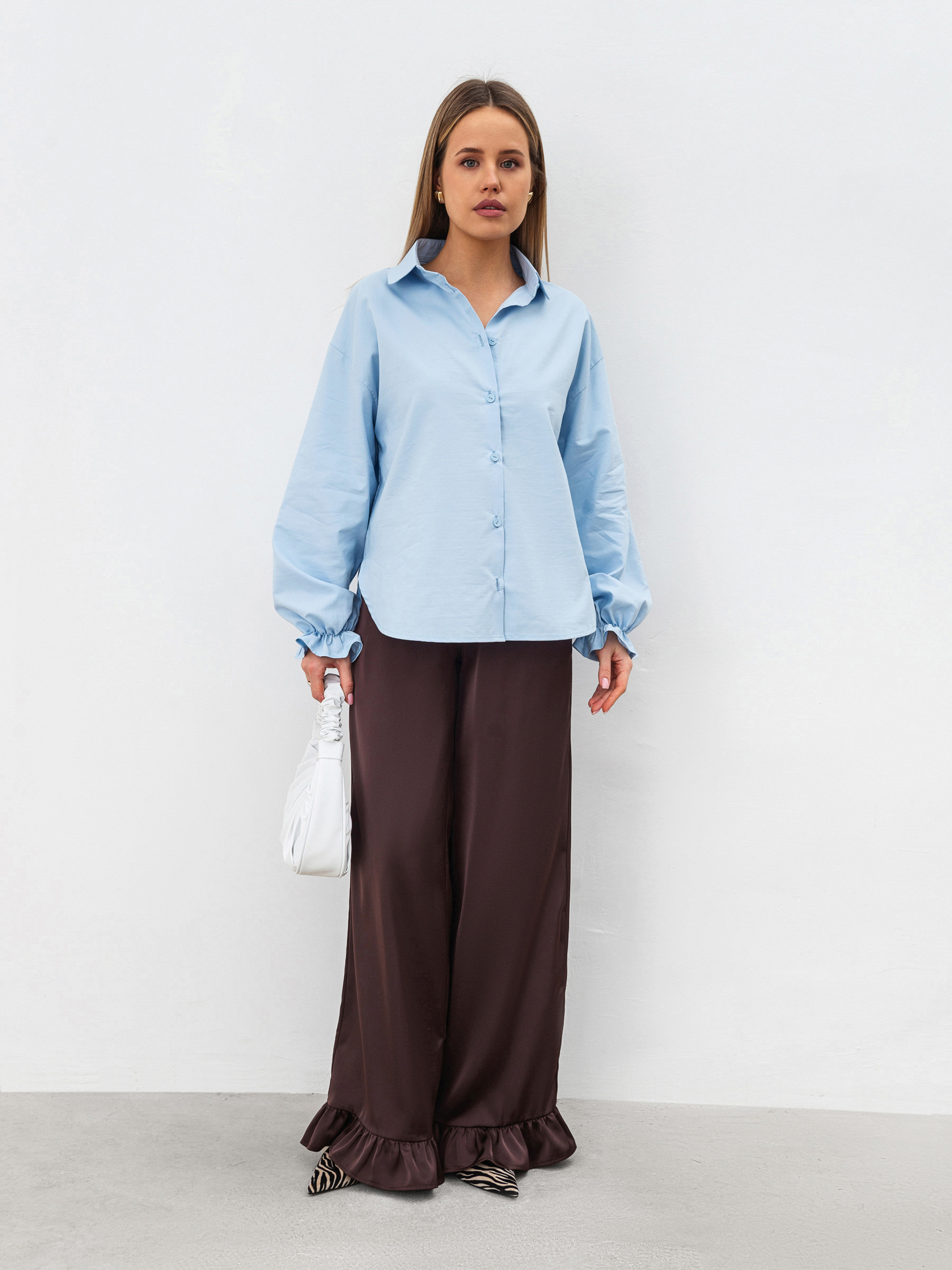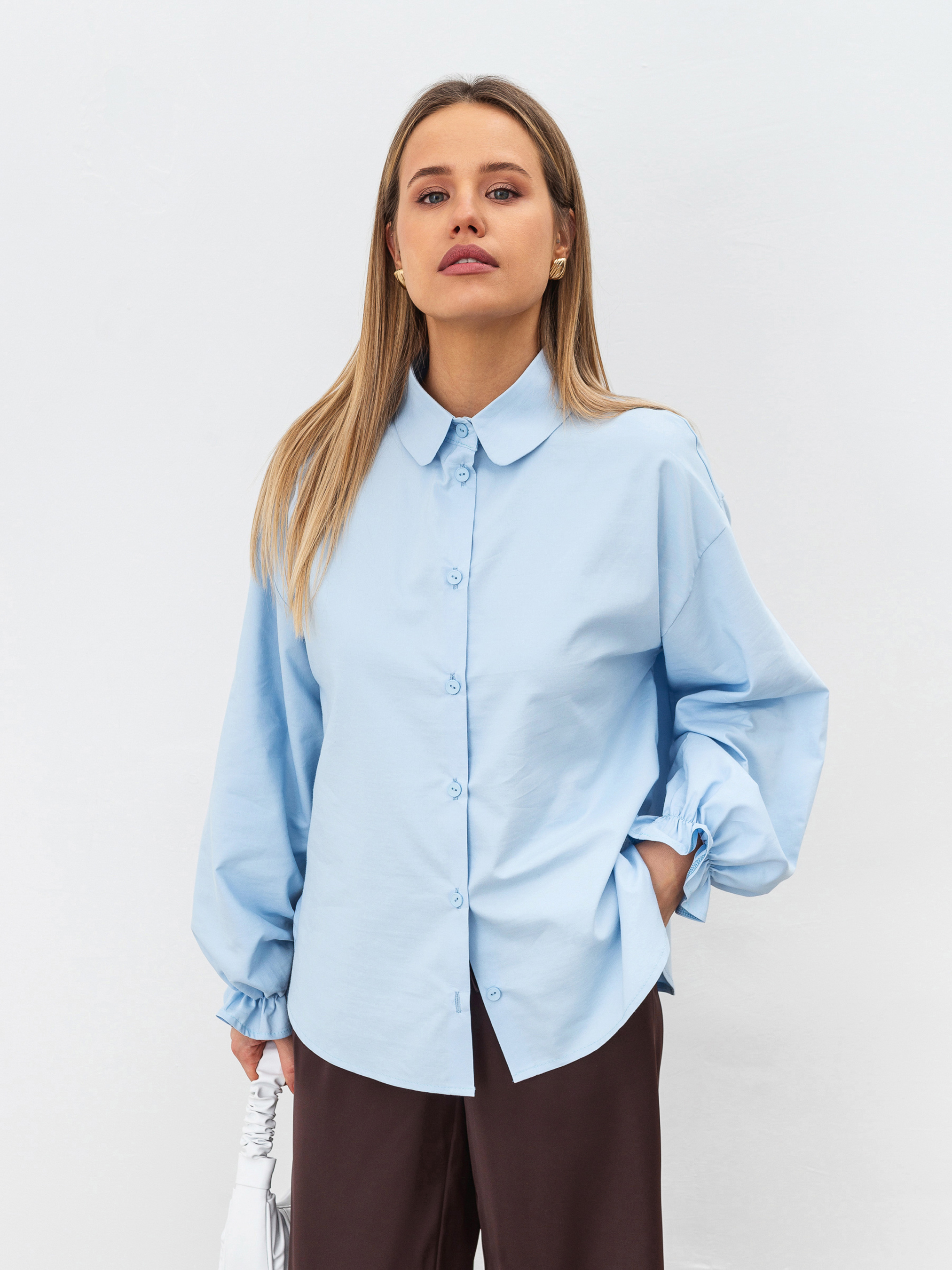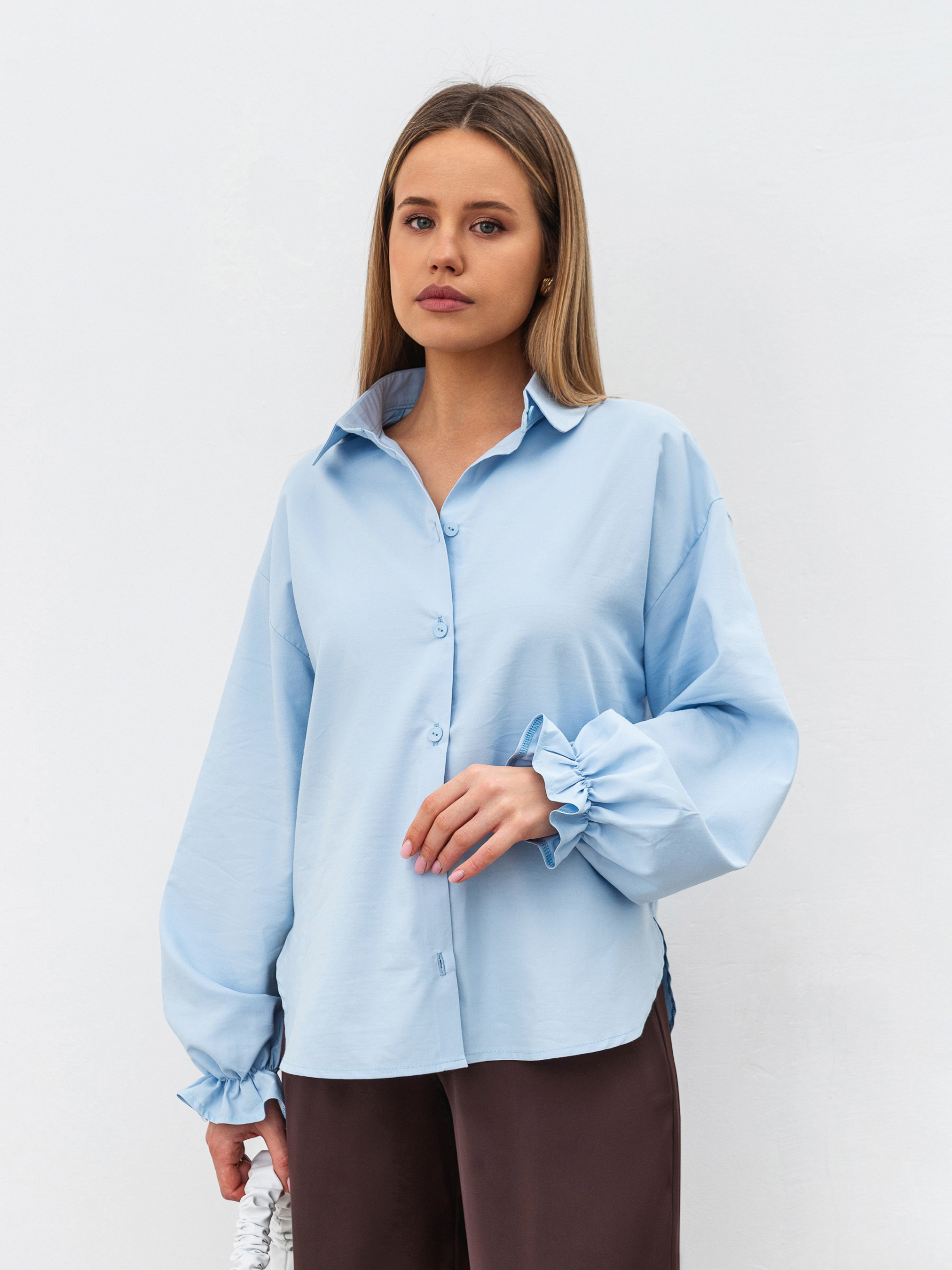 Сорочка у вінтажному стилі з об ємними рукавами. Модель прямого силуету має відкладний комірець з круглим краєм. Низ рукавчиків на резинці та з рюшами. Застібається на ґудзики. Сорочка виготовлена з приємної на дотик бавовни (60% у складі, 40% поліестер). Ідеальний варіант для образів зі спідницями в різних довжинах. Поєднувати можна з пальто чи тренчем для більш строгого аутфіту. ХС-С Довжина по спині : 63 см Довжина рукава : 52 см Напівобхват грудей : 56 см Плечі : 54 см С-М Довжина по спині : 63 см Довжина рукава : 53 см Напівобхват грудей : 58 см Плечі : 55 см М-Л Довжина по спині : 64 см Довжина рукава : 53 см Напівобхват грудей : 60 см Плечі : 56 см Л-ХЛ Довжина по спині : 64 см Довжина рукава : 54 см Напівобхват грудей : 61 см Плечі : 57 см