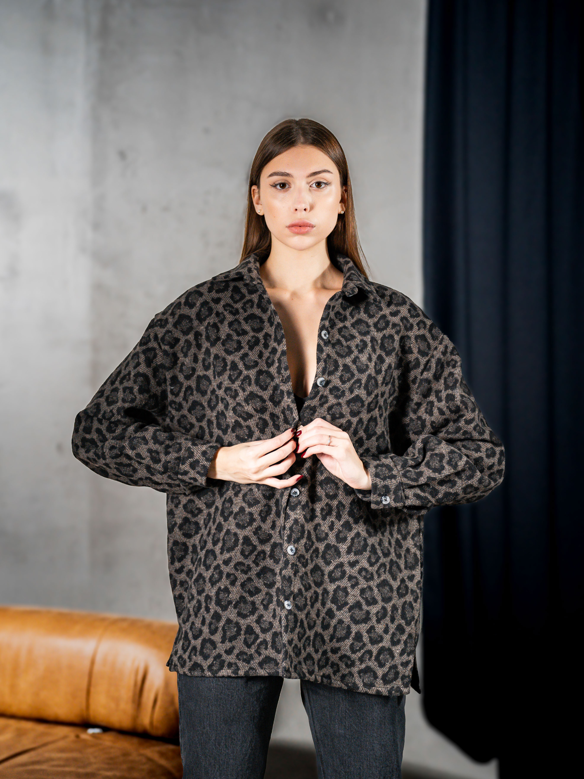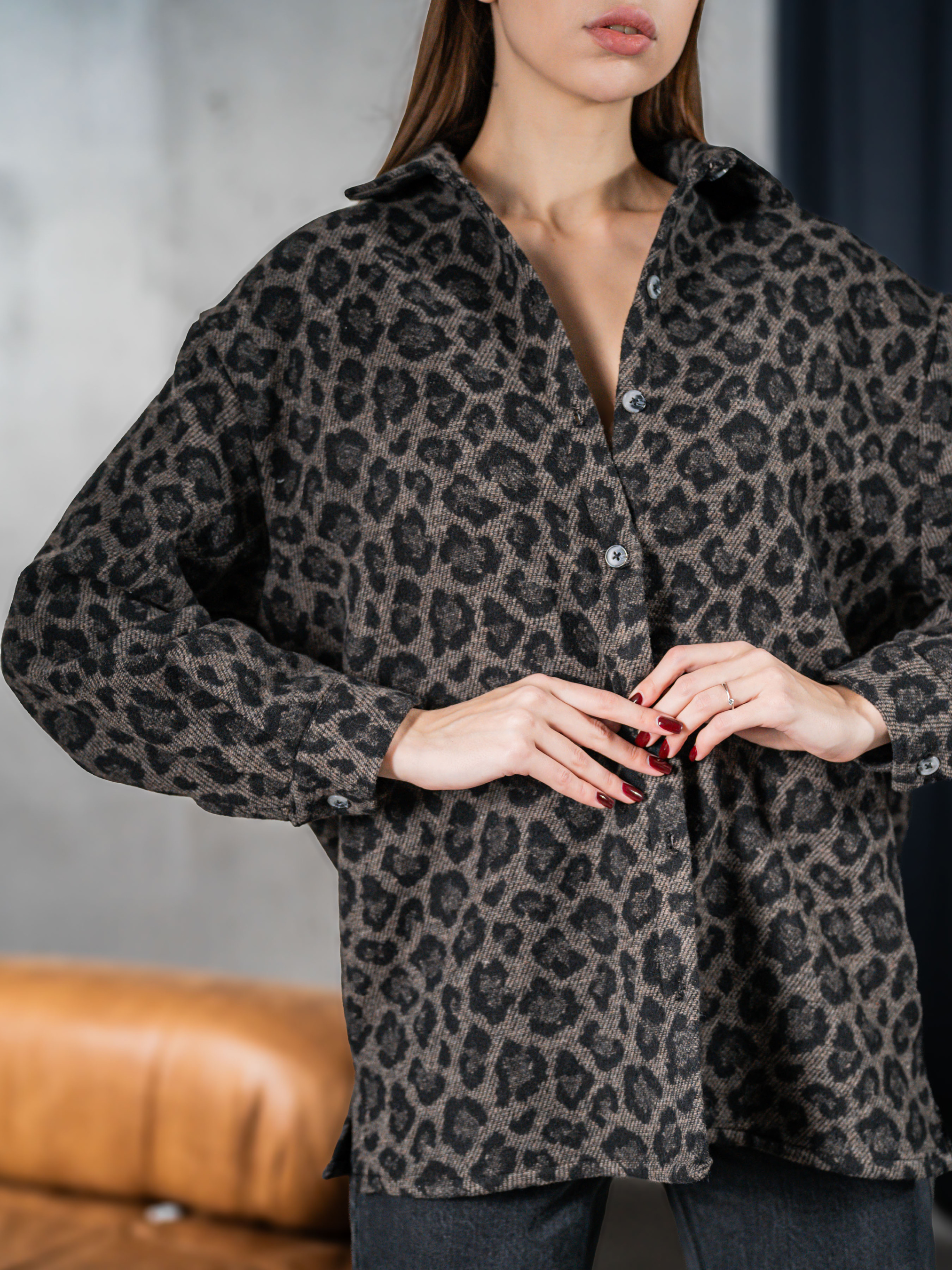 Якщо ви хочете купити теплу жіночу леопардову сорочку, зверніть увагу на цю модель. Ідеальна жіноча сорочка з кашеміру, Виконана з теплої кашемірової тканини, м'якої та приємної на дотик.