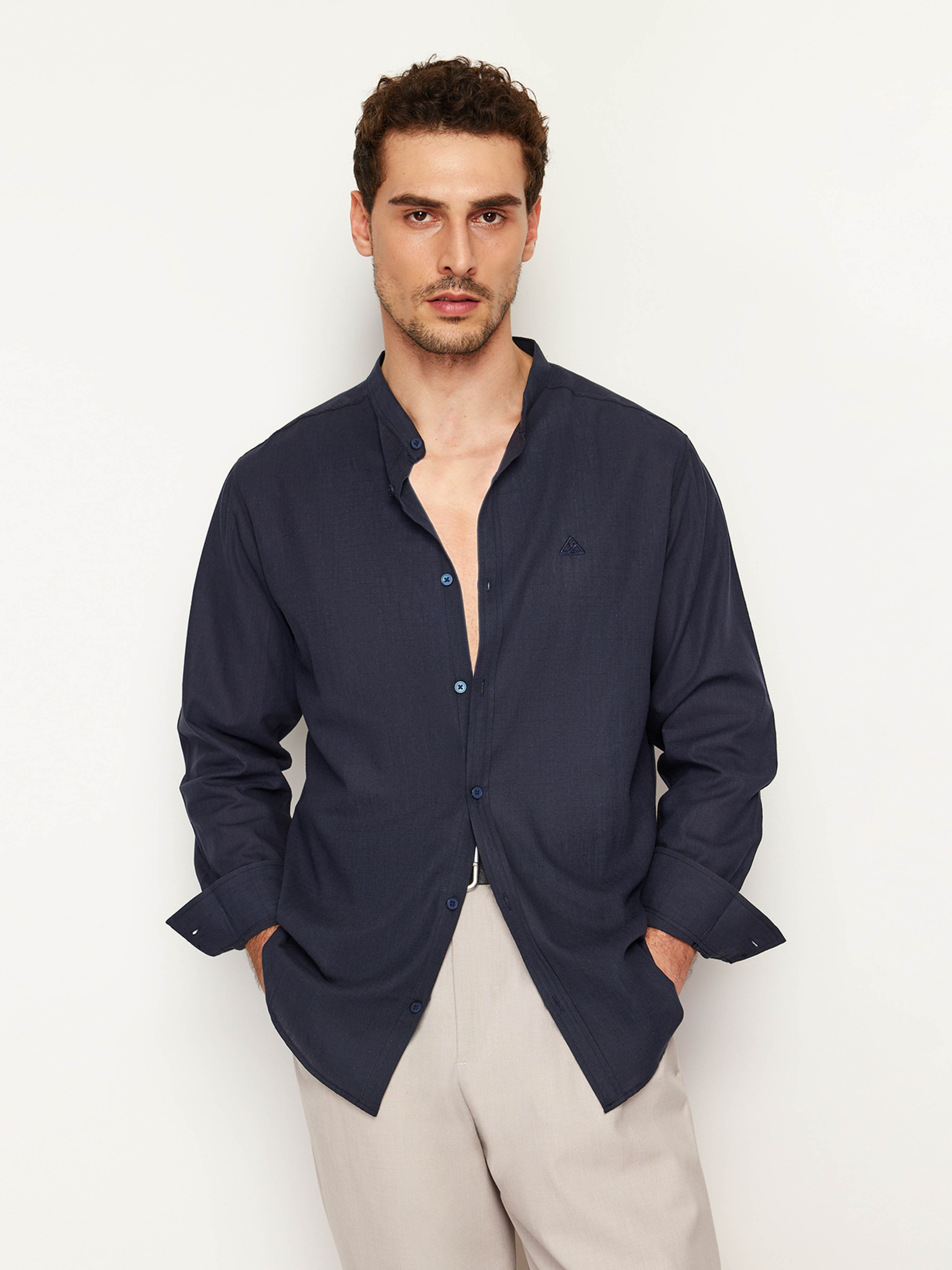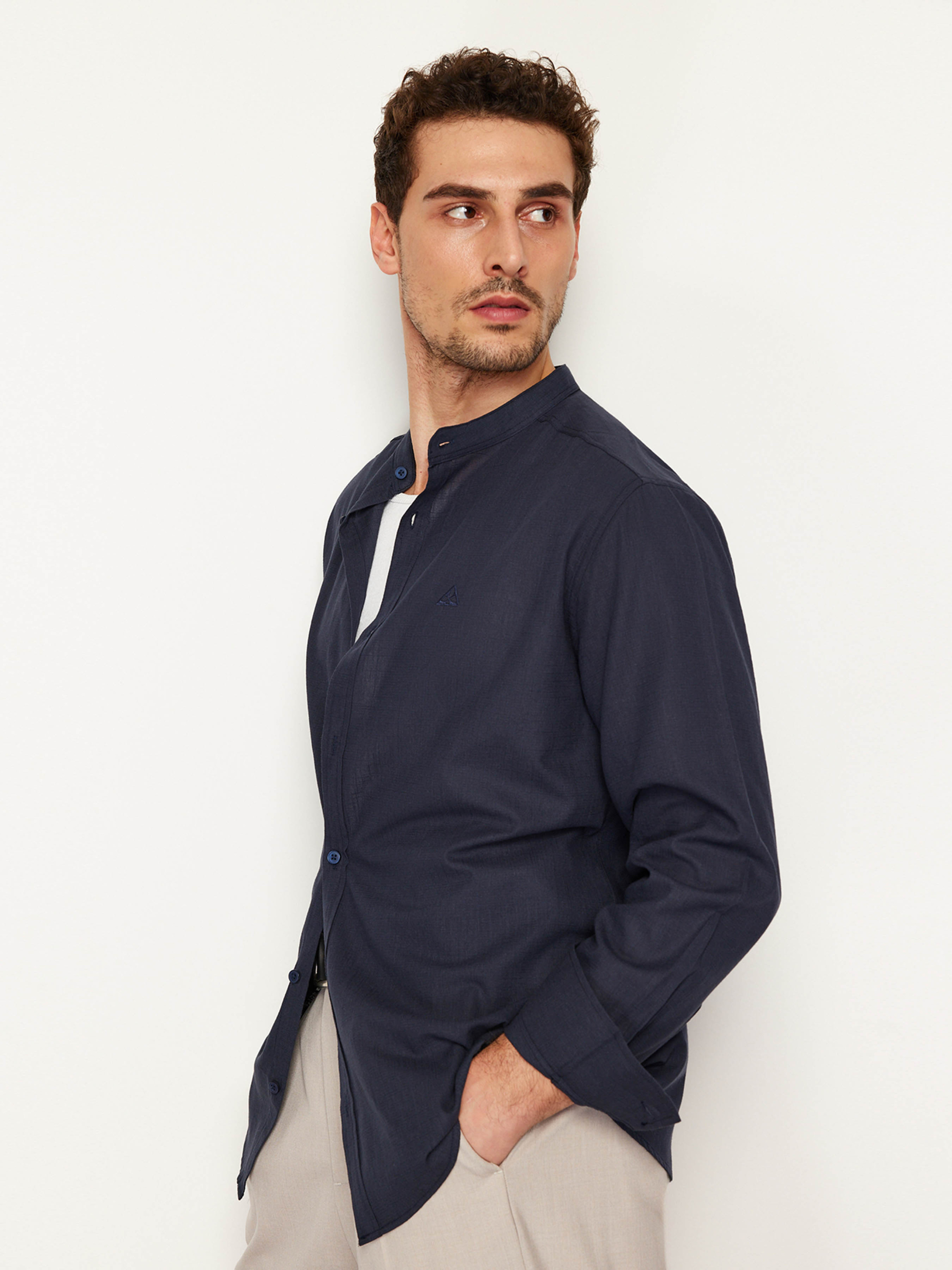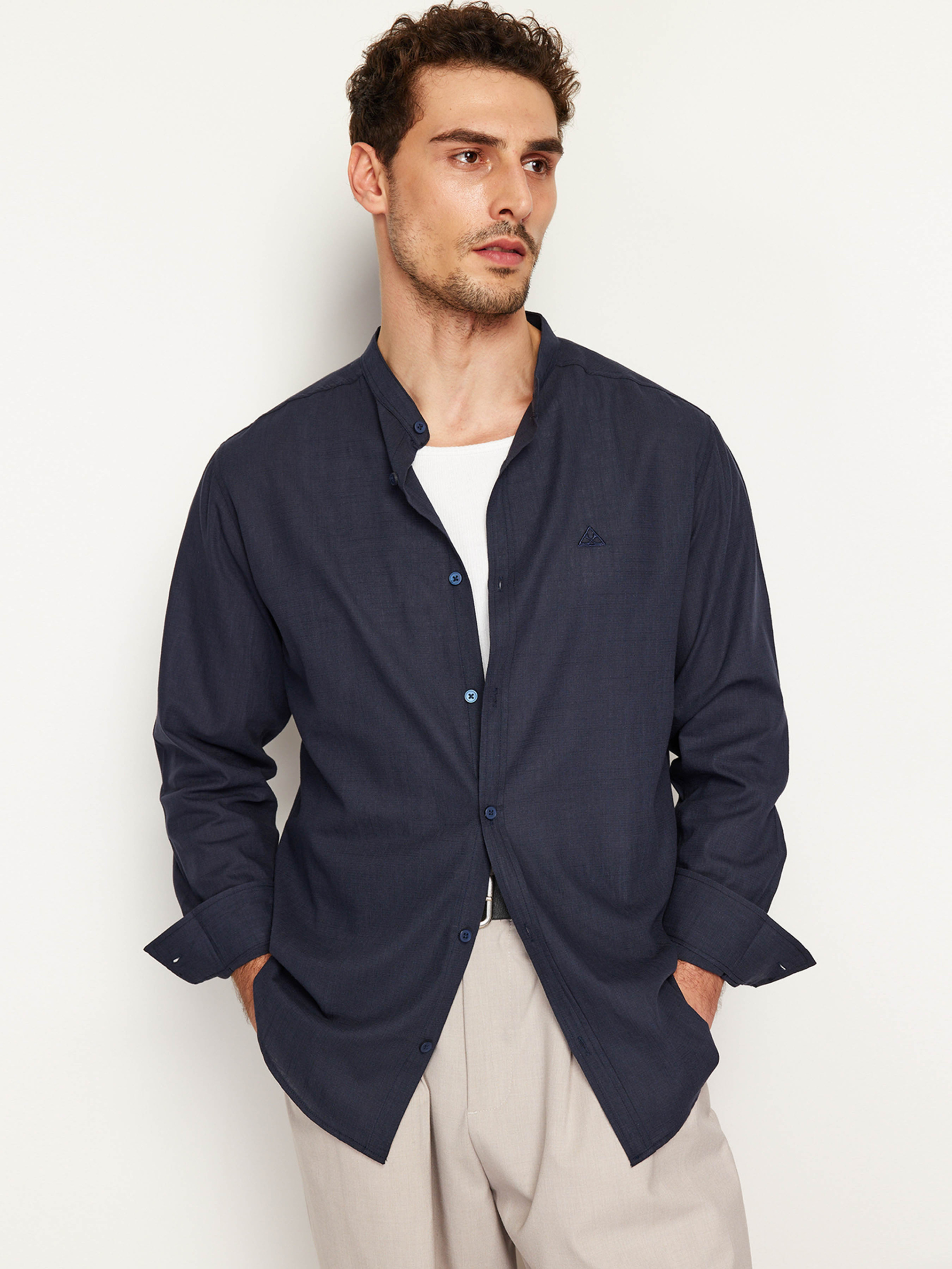 Сорочка повсякденна Trendyol модель TMNSS24GO00009/Lacivert