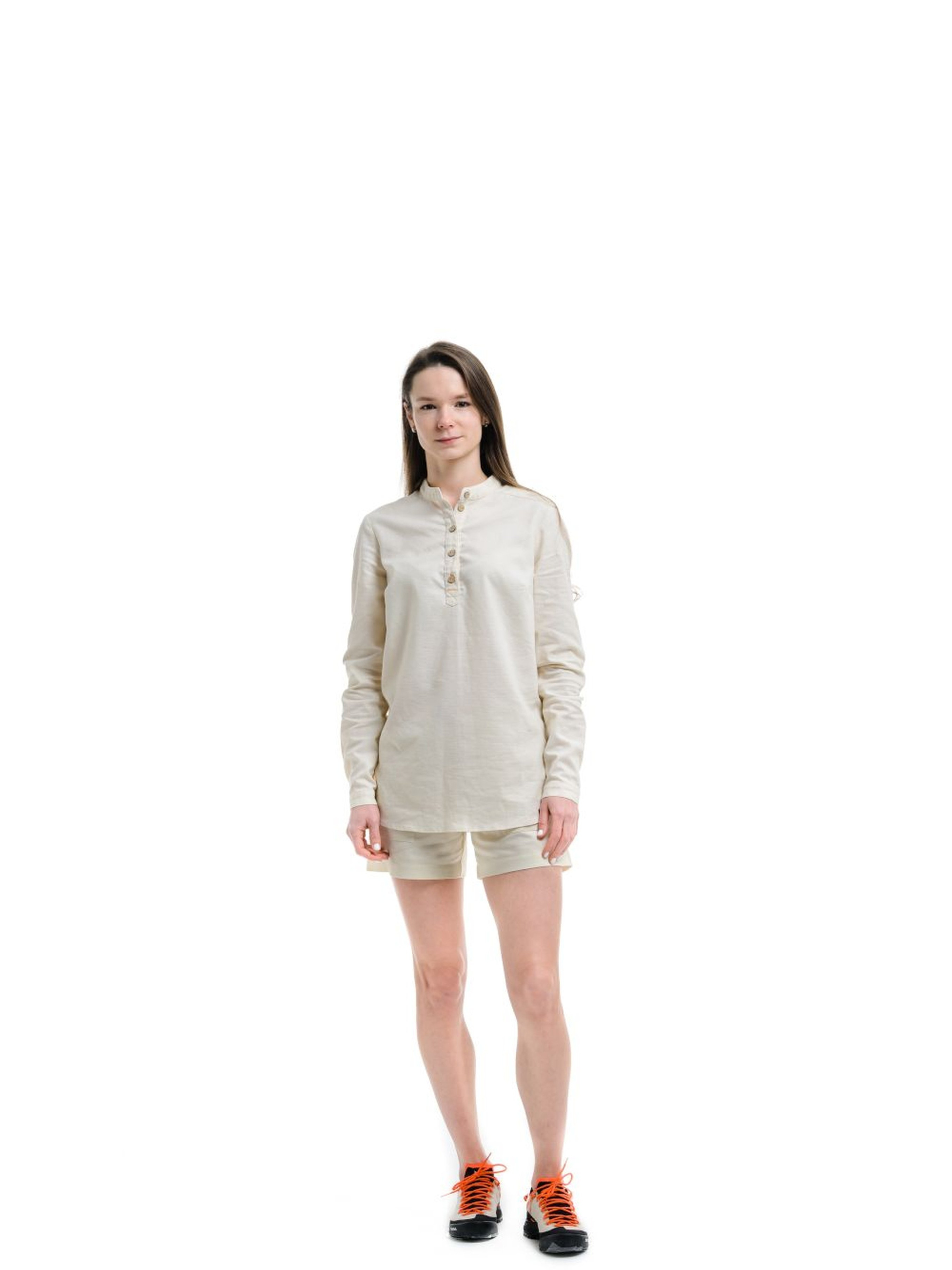 - натуральний матеріал із вмістом коноплі і переробленим поліестером. Сорочка стала більш компактною і легкою, швидко сохне