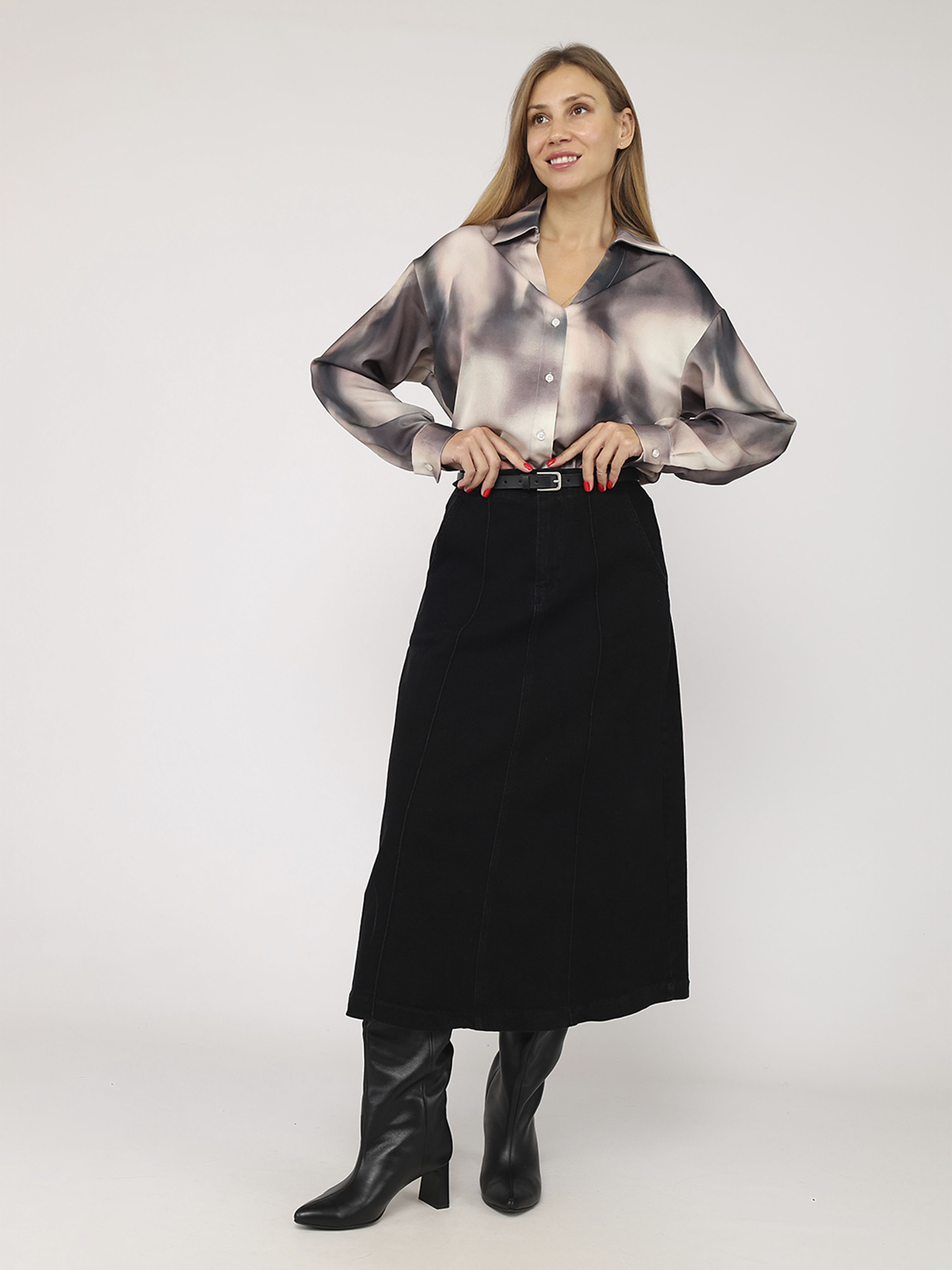 Жіноча сорочка з довгим рукавом колір сірий ЦБ-00285490 модель ЦБ-00285490