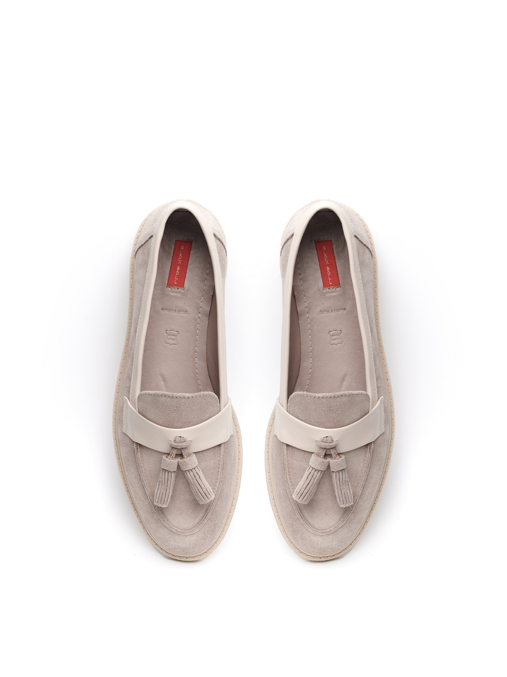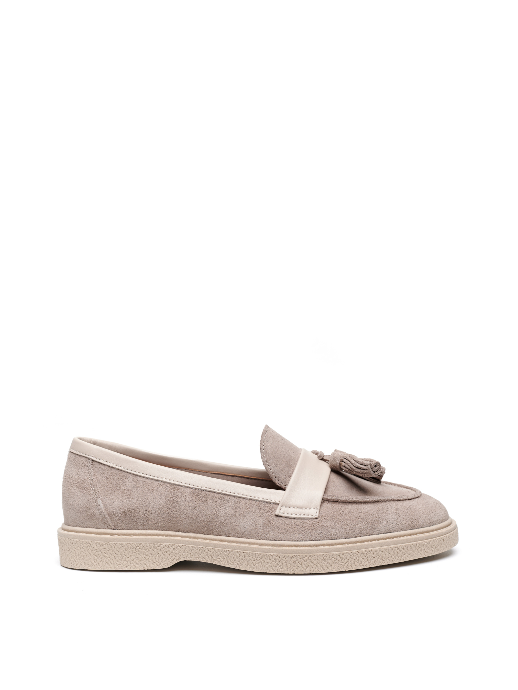 Ці затишні туфлі з італійської замші найвищої якості були б досконалими і без прикрас, але вони додатково прикрашені пензликами, розміщеними на шкіряній вставці. Дуже зручна, класична й водночас актуальна модель у трендовому кольорі на монохромній підошві! Чудово доповнить образ у діловому стилі, романтичному та міському, стане в пригоді як базове повсякденне взуття.