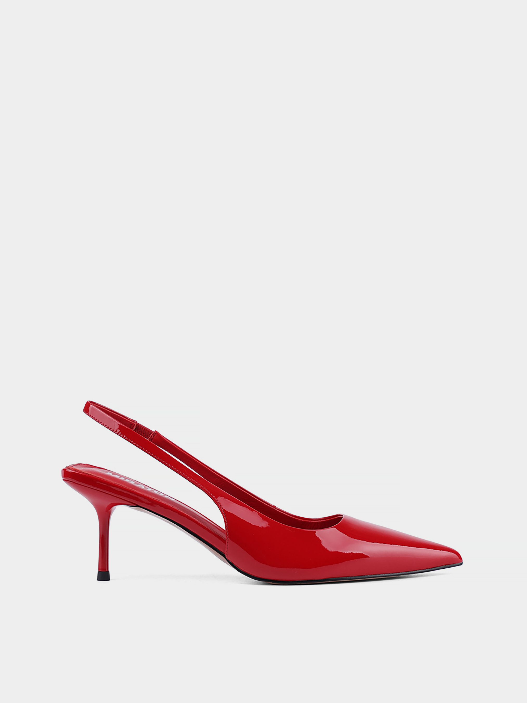 Жіночі туфлі слінгбеки MIRATON лакові червоні Матеріал: натуральна лакова шкіра. Підкладка: шкіра. Бренд: MIRATON. Колір: червоний. Підошва тонка. Вид підборів: шпилька. Висота підбору: 6. Стиль: мода. Сезон: весна-літо.