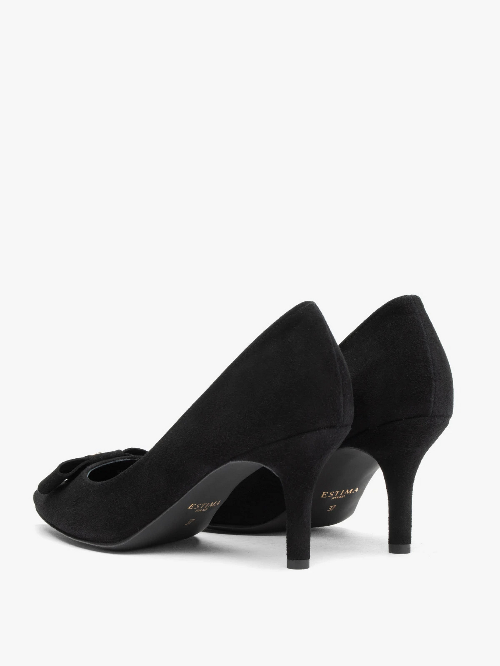 Класика з витонченим штрихом. Ці чорні замшеві туфлі-човники мають прості, мінімалістичні лінії та загострений носок. Єдиною прикрасою є металевий ґудзик на носку – непомітна деталь, яка додає характеру цій моделі. Шпилька висотою 7,5 см підкреслює елегантний силует і робить фігуру стрункішою. Підходять на стандартну (середню) повноту стопи. Щоб правильно обрати свій розмір, обов'язково використовуйте розмірну сітку RYŁKO EU: 35-23,3 см; 36-24 см; 36,5-24,3 см; 37-24,7 см; 37,5-25 см; 38-25,3 см; 38,5-25,7 см; 39-26 см; 39,5-26,3 см; 40-26,7 см; 40,5-27 см; 41-27,3 см; 42-28 см.