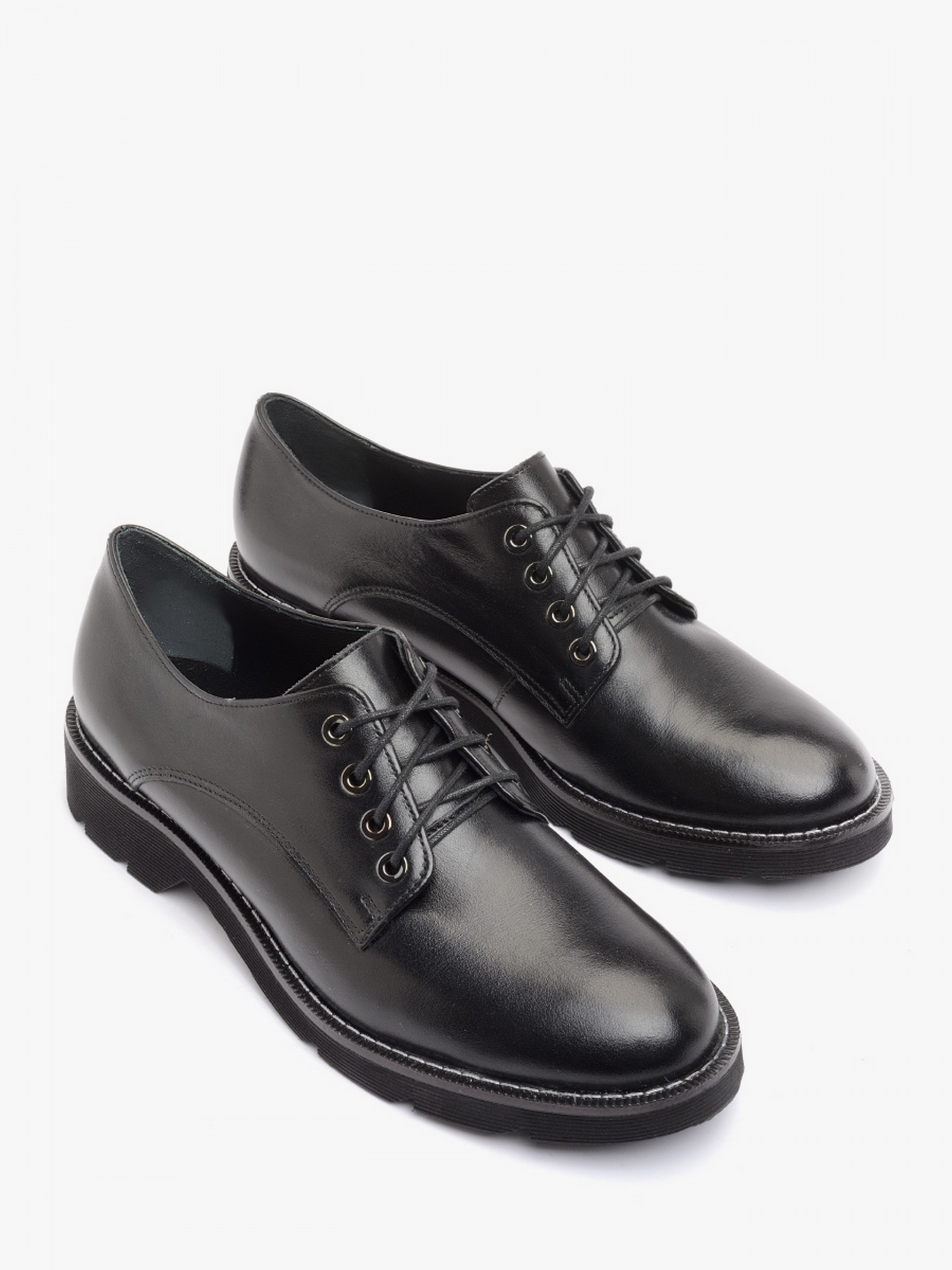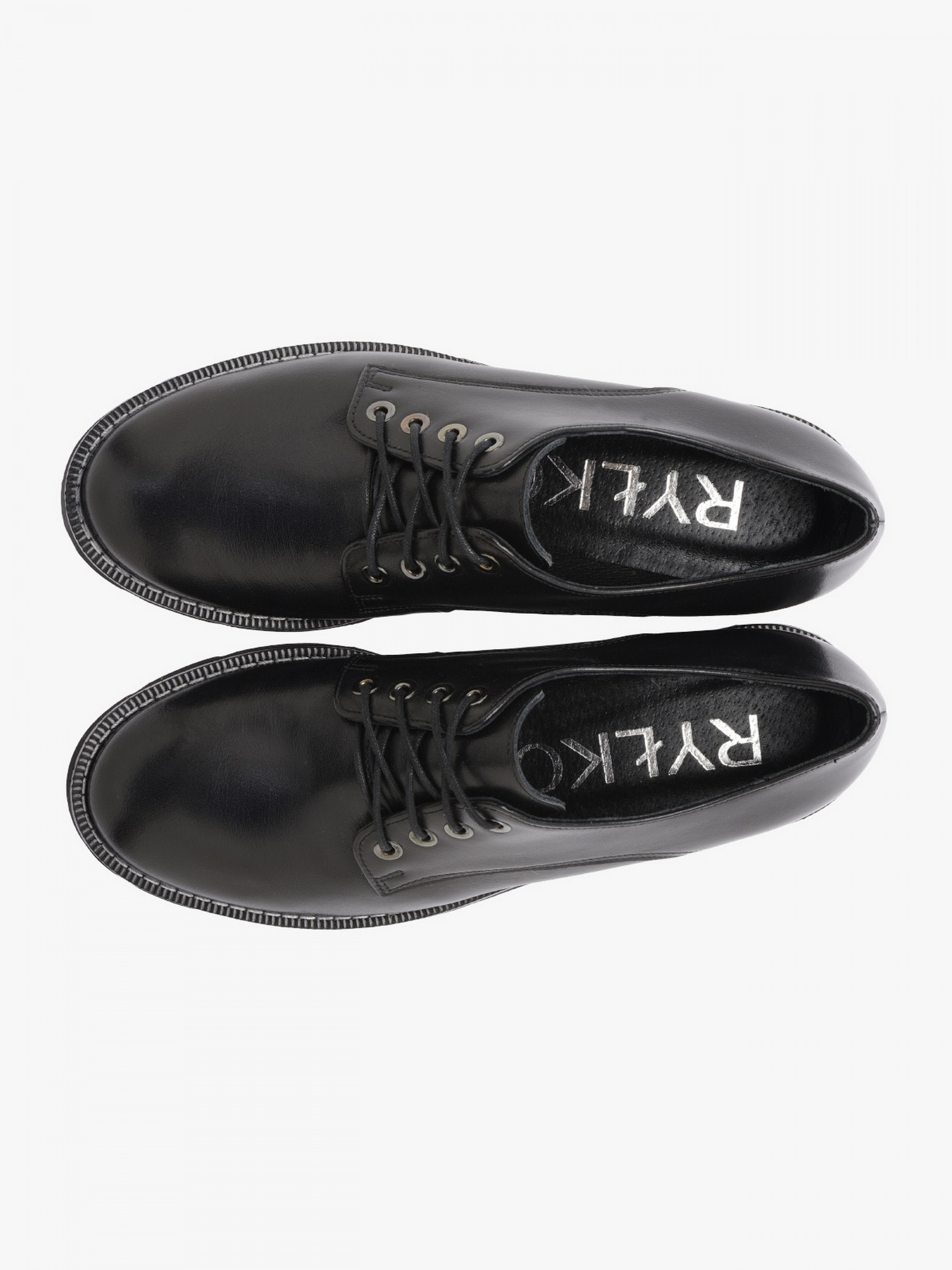 Чорні туфлі RYŁKO на плоскій, прошитій підошві з невисоким каблуком, висотою – до 3 см. Модель виготовлена з лицьової шкіри високої якості, підходять на стандартну (середню) повноту стопи. Склад моделі - Верх: натуральна шкіра/Підкладка: натуральна шкіра/Устілка: натуральна шкіра/Підошва: EVA - чорного кольору/Вигляд носової частини: кругла/Застібка: на шнурках. Розмірна сітка RYLKO EU: 35-23,3 см. 36-24 см. 36,5-24,3 см. 37-24,7 см. 37,5-25 см. 38-25,3 см. 38,5 -25,7 см. 39-26 см. 39,5-26,3 см. 40-26,7 см. 40,5-27 см. 41-27,3 см. 42-28 см.