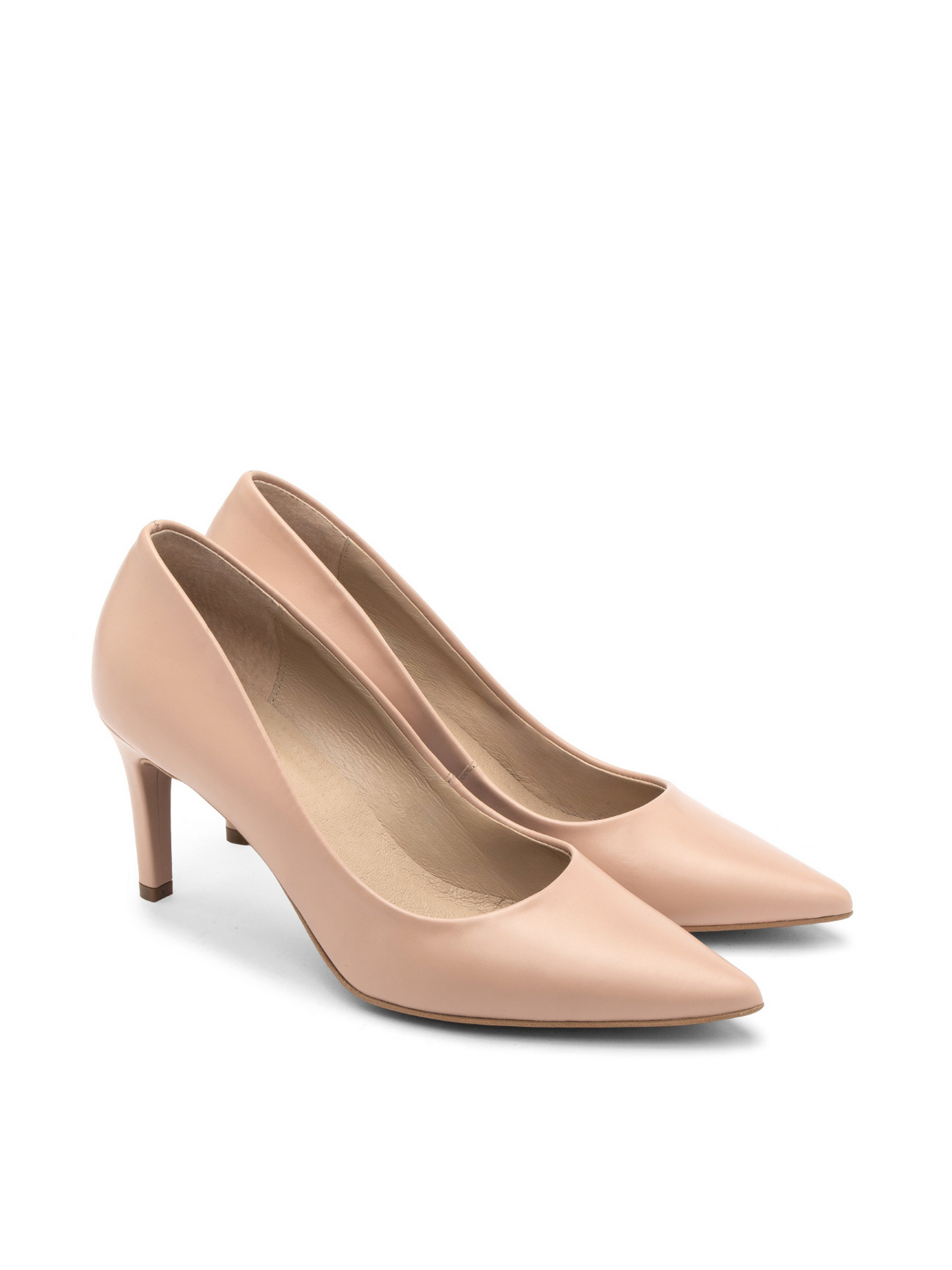 Шкіряні туфлі-човники польського виробника RYŁKO бежевого кольору. Модель виготовлена з натуральної лицьової шкіри високої якості. Підходять на стандартну (середню) повноту стопи. Мають зручні та стійкі підбори, обтягнуті шкірою, заввишки 7,5 см. Всередині - натуральна шкіра. Носок - шпиль.