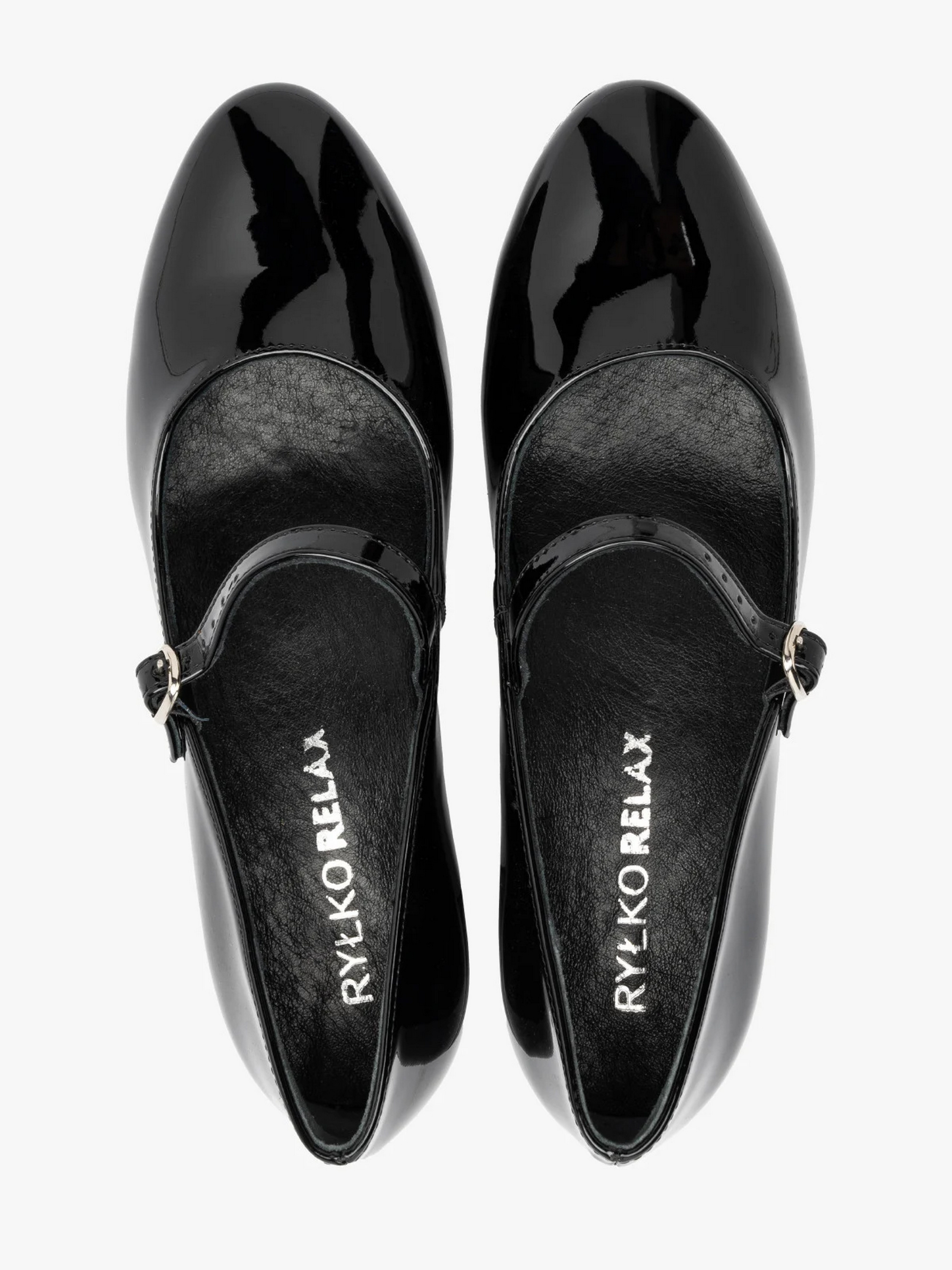 Лаковані чорні туфлі польського виробника RYLKO серії RELAX. Модель виготовлена з високоякісної синтетичної лакованої шкіри. Всередині натуральна шкіра. Підходять на стандартну (середню) повноту стопи. Мають зручні підбори, обтягнуті лакованою шкірою, заввишки 4,5 см. В цій моделі взуття використовується технологія R.SILENCE - це приглушення ударів підборів, досягнуте завдяки застосуванню технологічно нової набійки, що гасить вібрації при ходьбі. Під устілкою є піна, що амортизує і містить активоване вугілля. Це надає їй сильні антибактеріальні та протигрибкові властивості. Піна перфорована, завдяки чому забезпечує циркуляцію повітря та вбирає зайву вологу. Піна м'яка та щільно прилягає до стопи. Ці властивості значно підвищують комфорт користування взуттям. Щоб правильно обрати свій розмір, обов'язково використовуйте розмірну сітку RYŁKO EU: 35-23,3 см; 36-24 см; 36,5-24,3 см; 37-24,7 см; 37,5-25 см; 38-25,3 см; 38,5-25,7 см; 39-26 см; 39,5-26,3 см; 40-26,7 см; 40,5-27 см; 41-27,3 см; 42-28 см.
