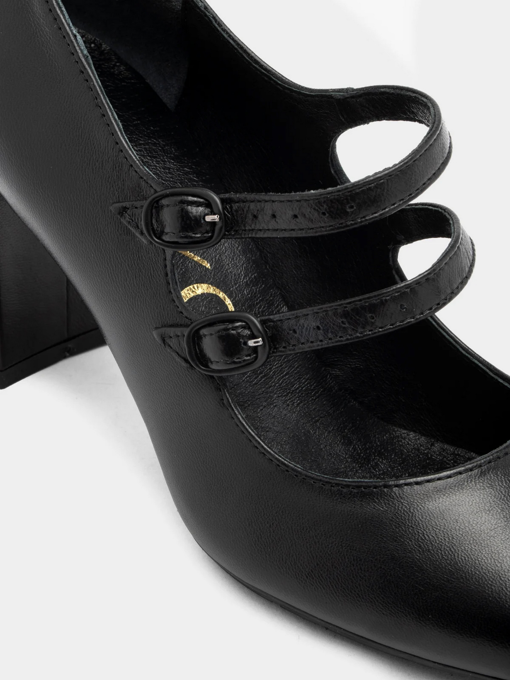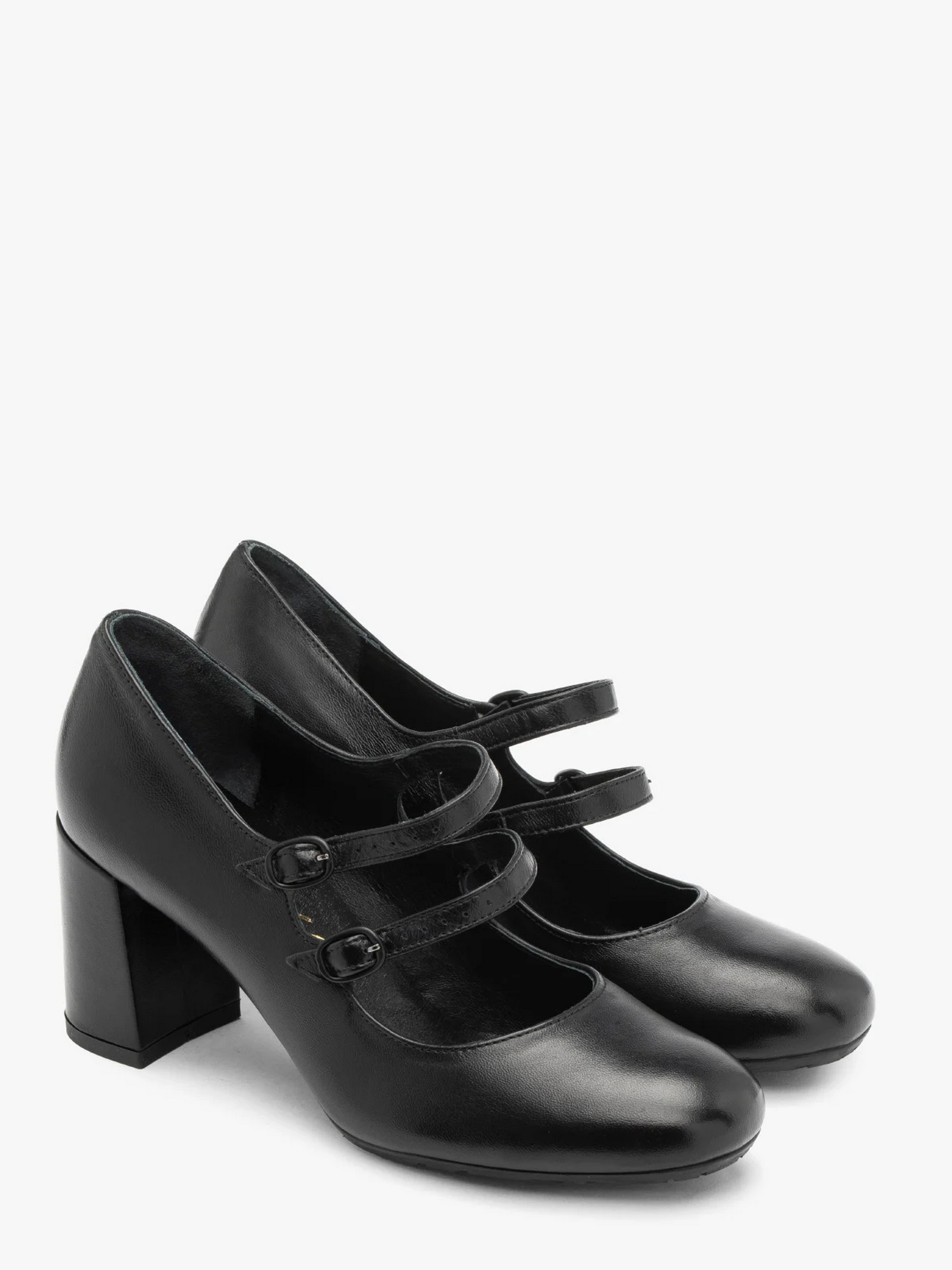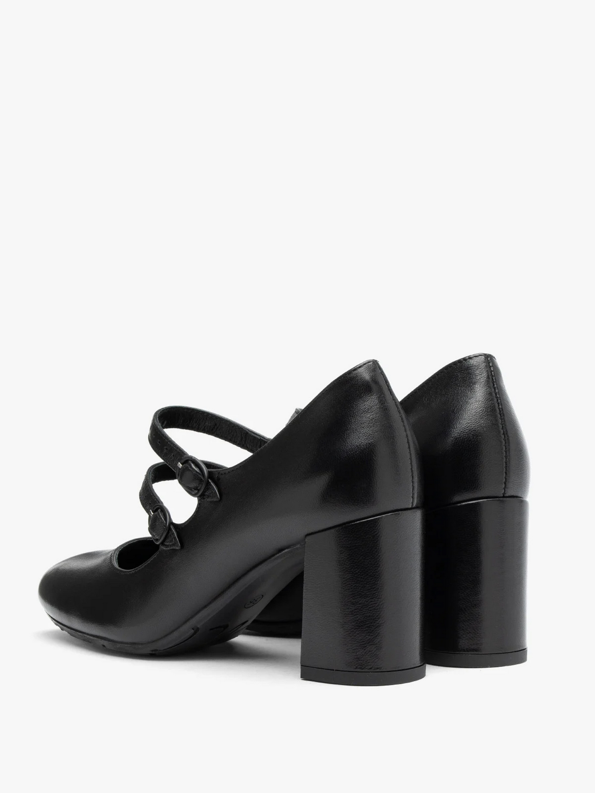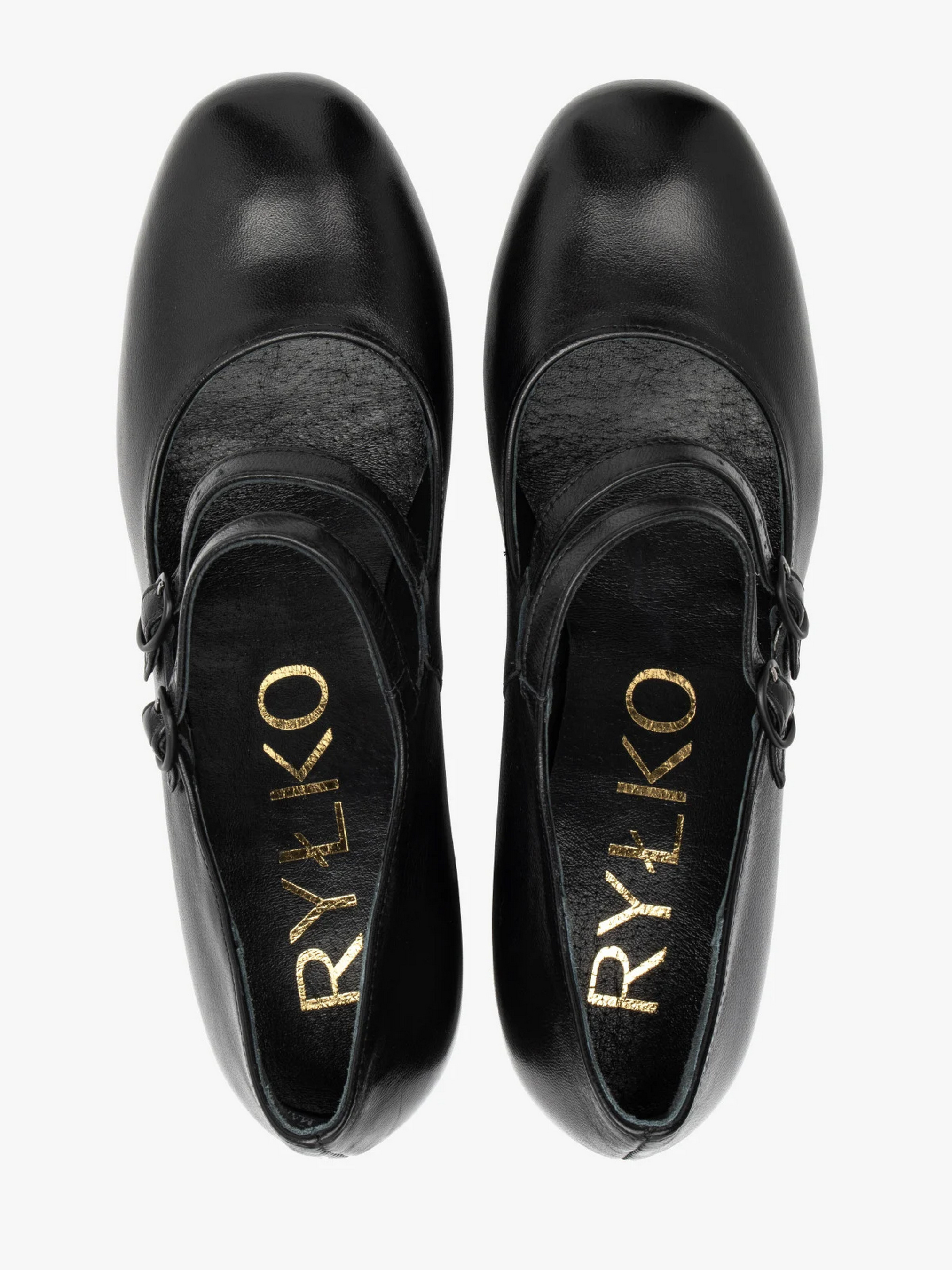 Шкіряні туфлі польського виробника RYŁKO чорного кольору. Виготовлені з натуральної шкіри преміум якості. Підходять на стандартну (середню) повноту стопи. Мають дві декоративні застібки на підйомі чорного кольору. Всередині - натуральна шкіра. Підбори заввишки 7,5 см. Щоб правильно обрати свій розмір, обов'язково звертайте увагу на розмірну сітку RYŁKO EU: 35-23,3 см; 36-24 см; 36,5-24,3 см; 37-24,7 см; 37,5-25 см; 38-25,3 см; 38,5-25,7 см; 39-26 см; 39,5-26,3 см; 40-26,7 см; 40,5-27 см; 41-27,3 см; 42-28 см.