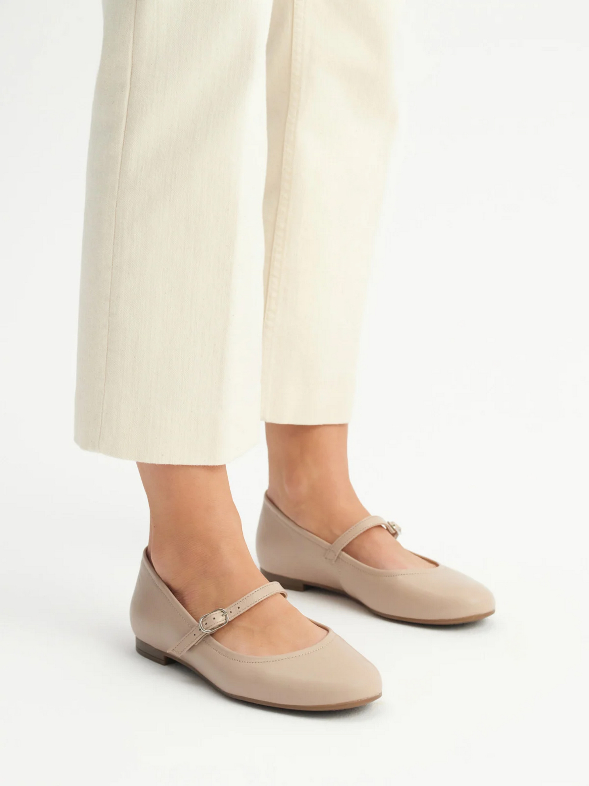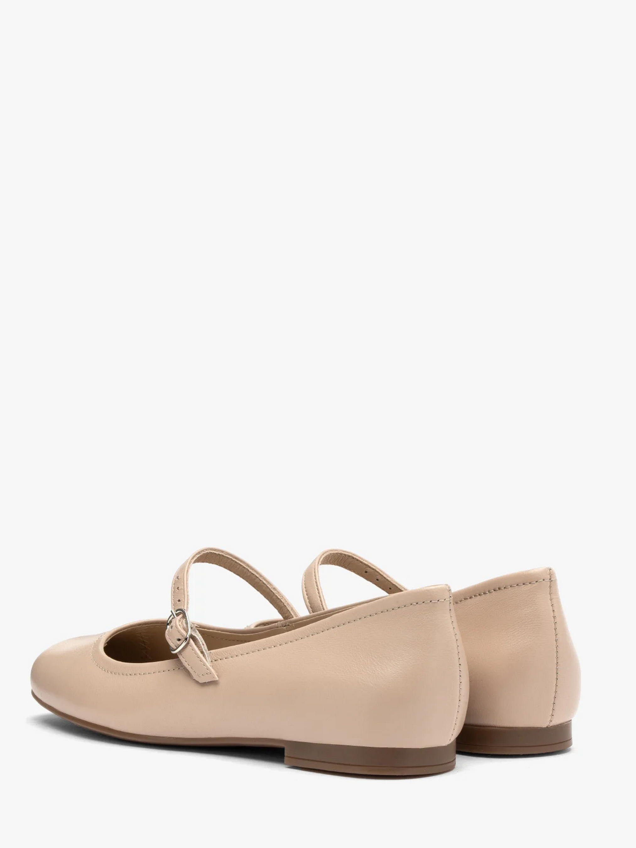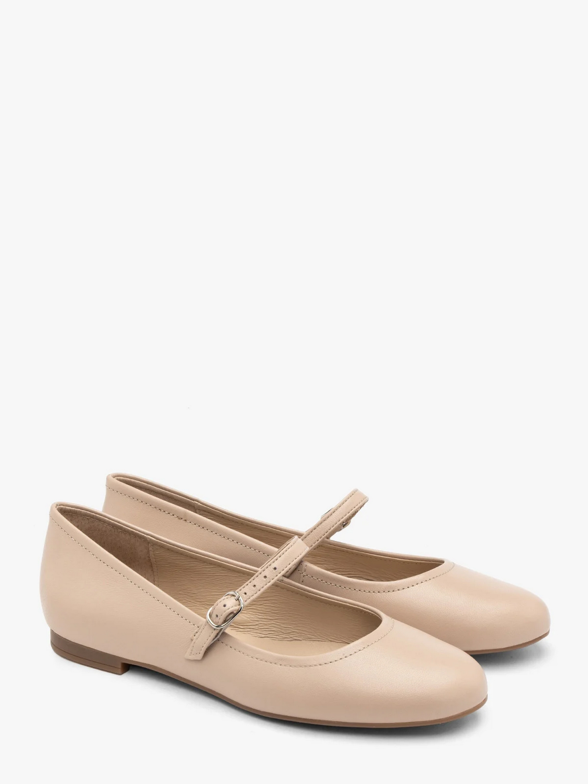 Шкіряні туфлі-балетки польського виробника RYŁKO бежевого кольору. Виготовлені з натуральної шкіри преміум якості. Підходять на стандартну (середню) повноту стопи. Мають декоративну застібку на підйомі сріблястого кольору. Всередині - натуральна шкіра. Підошва плоска з маленькими підборами заввишки 1,5 см, носок - круглий.