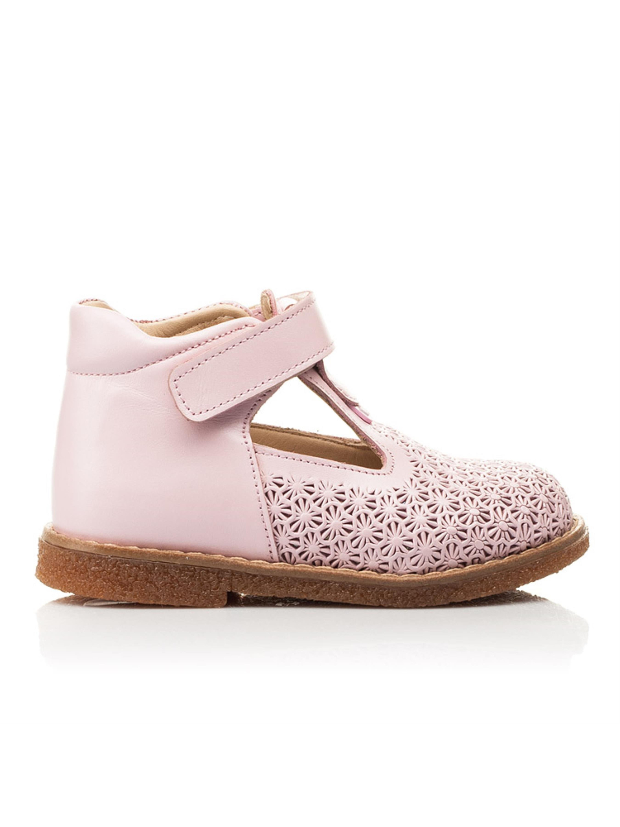 Витончена пара туфель для маленької принцеси створена з натуральної шкіри ніжного рожевого кольору. Матеріал підкладки та устілки - натуральна високоякісна шкіра. 100% окрасою моделі виступає перфорований носочок. Дитячі туфлі такого дизайну з легкістю доповнять і святковий образ Вашої крихітки. На основі поєднання гладкої лакованої шкіри та шкіри з перфорованим візерунком створено неповторну фактуру. Комфорт дитячим стопам забезпечать такі елементи дитячого взуття: жорсткий задник, анатомічно правильна устілка з подушечкою під зведення стопи, легка та гнучка підошва. Спосіб застібання - надійна липучка, яка полегшить взування.
