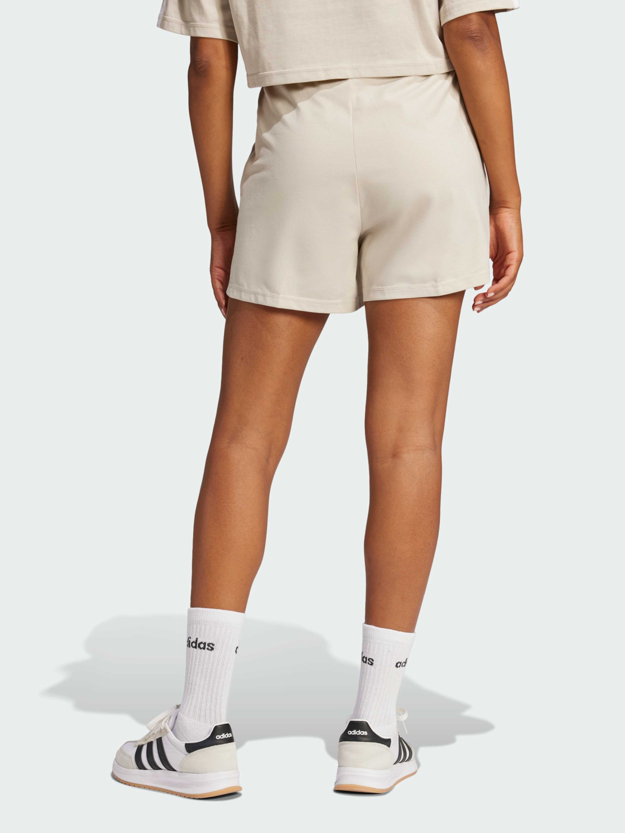Характеристики 93% бавовна, 7% еластан Висока посадка Передні кишені Стандартний крій Еластичний пояс на зав'язках-шнурках Опис Ці шорти adidas - легка повсякденна річ, яка ідеально підходить для спокійних днів. Вони пошиті з м'якої бавовни, яка приємно відчувається, як тільки ти їх одягаєш. Класичні смужки з боків додають спортивного стилю.