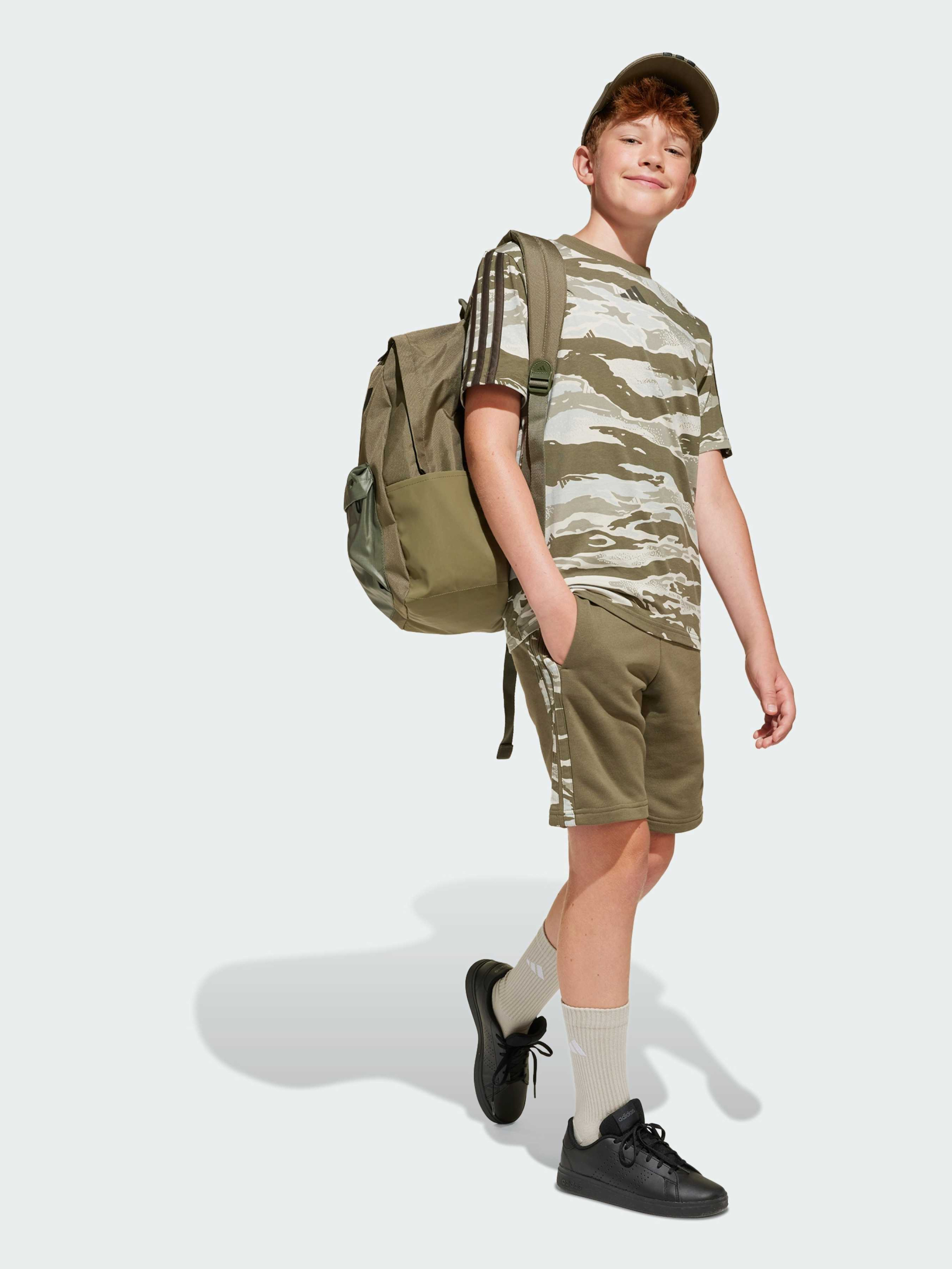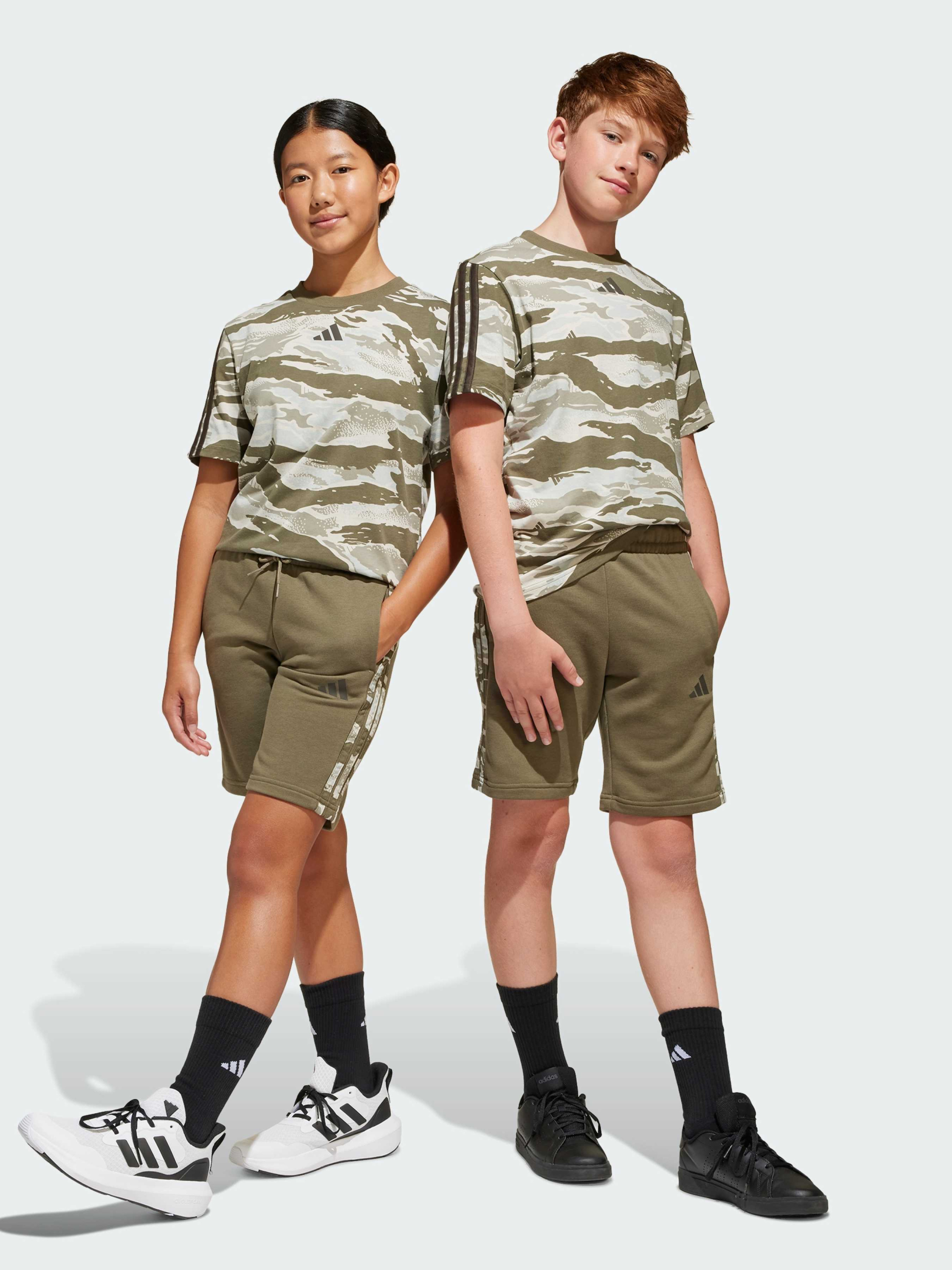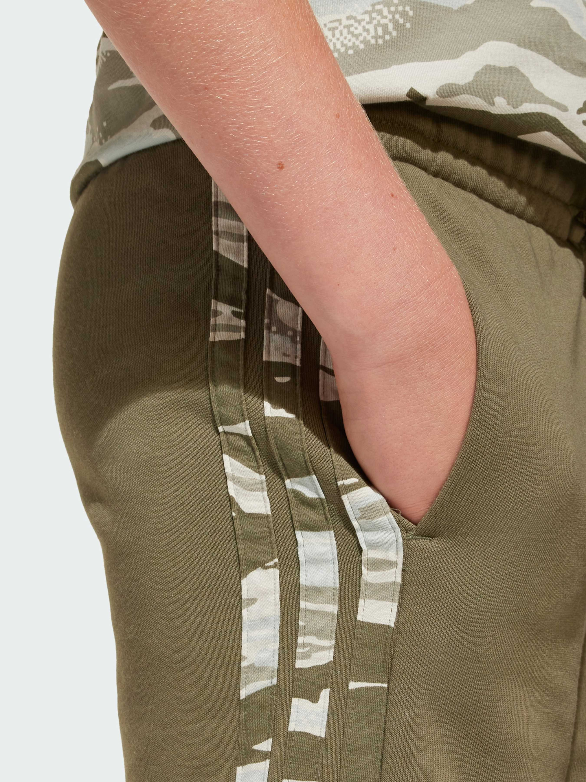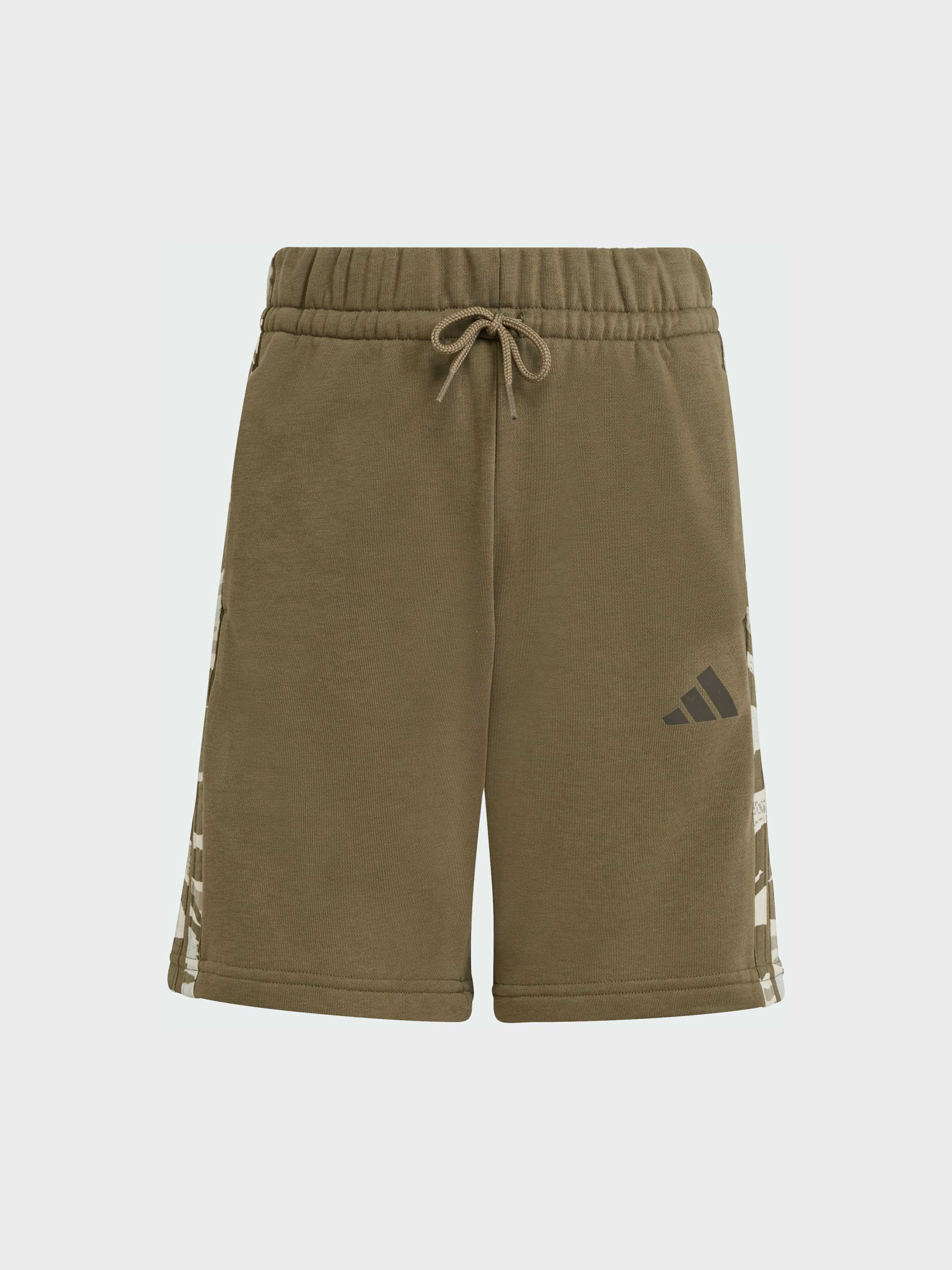 Характеристики 55% бавовна, 36% перероблений поліестер, 9% віскоза Бічні кишені Стандартний крій Еластичний пояс, регульований шнуром Містить щонайменше 70% переробленої та відновлюваної сировини Опис Ці шорти adidas для підлітків - ідеальний вибір для будь-якого дня. М'який френч-террі дарує комфорт і свободу рухів, будь ти з друзями або в дорозі. Стильна деталь - камуфляжні три смужки на нозі - додає спортивний акцент і робить образ завершеним. Вибираючи перероблені матеріали, ми можемо повторно використовувати вже створені матеріали, що допомагає скоротити кількість відходів. Використання поновлюваних матеріалів допоможе нам позбутися залежності від обмежених ресурсів. Наші продукти, виготовлені з суміші перероблених і поновлюваних матеріалів, містять не менше 70% таких матеріалів.