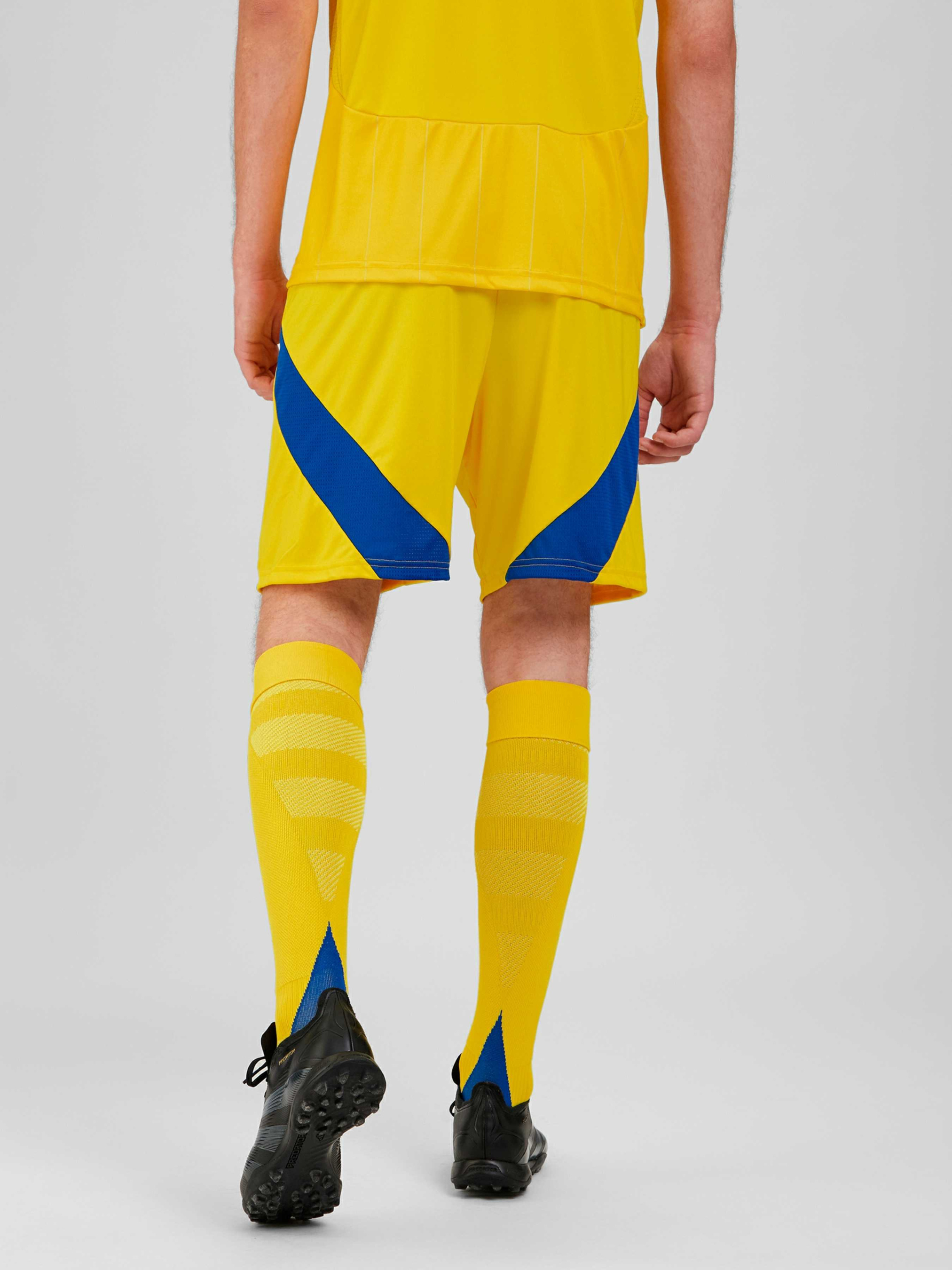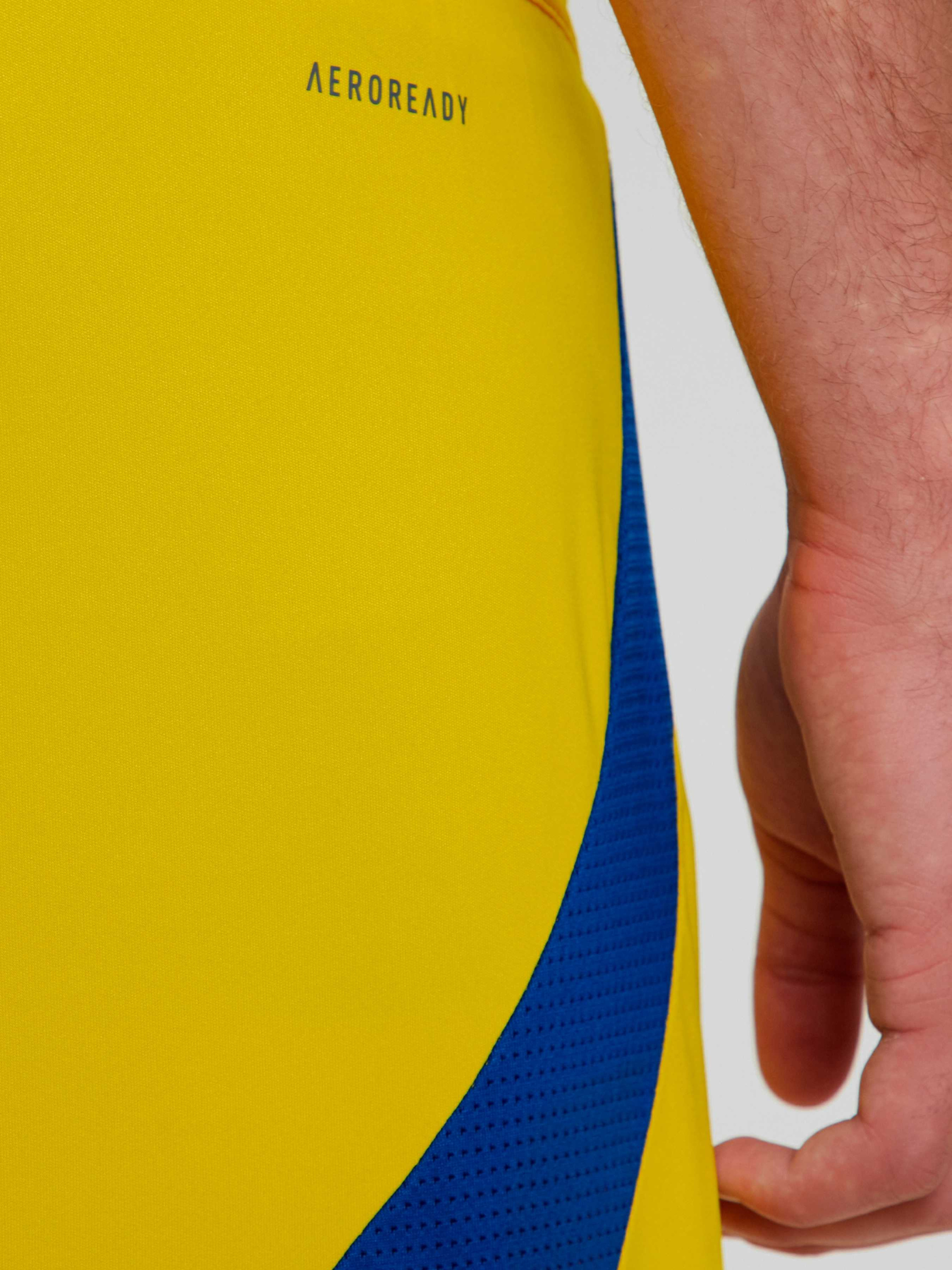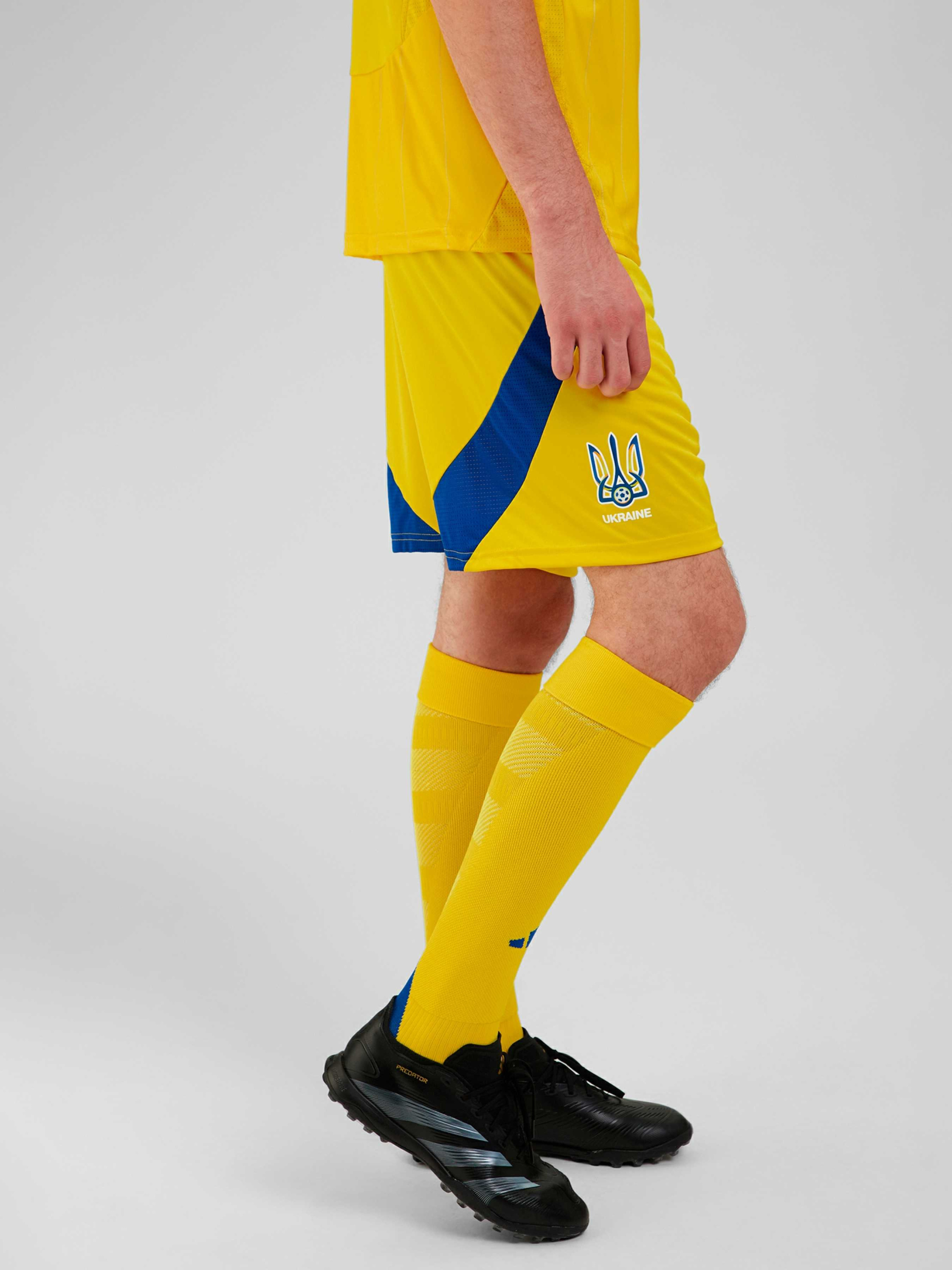 Характеристики 100% перероблений поліестер AEROREADY Стандартний крій Еластичний пояс на зав'язках-шнурках Герб збірної України Опис Нова футбольна форма створена спеціально для справжніх патріотів і любителів руху! Представляємо тобі шорти в домашніх кольорах, у яких ти відчуєш нестримне прагнення до перемоги, а технологія AEROREADY допоможе в цьому. Легка тканина відводить вологу, залишаючи винятковий комфорт під час гри. Приєднуйся до підтримки нашої національної команди, одягнувши форму в жовто-блакитних відтінках. Вишитий логотип adidas і термопринт емблеми УАФ - це знак найкращої якості, в якій можеш не сумніватися. Обираючи цю модель, ти не тільки дбаєш про свою зручність, а й робиш свій внесок у збереження довкілля. Не прогав можливість стати частиною історії українського футболу!