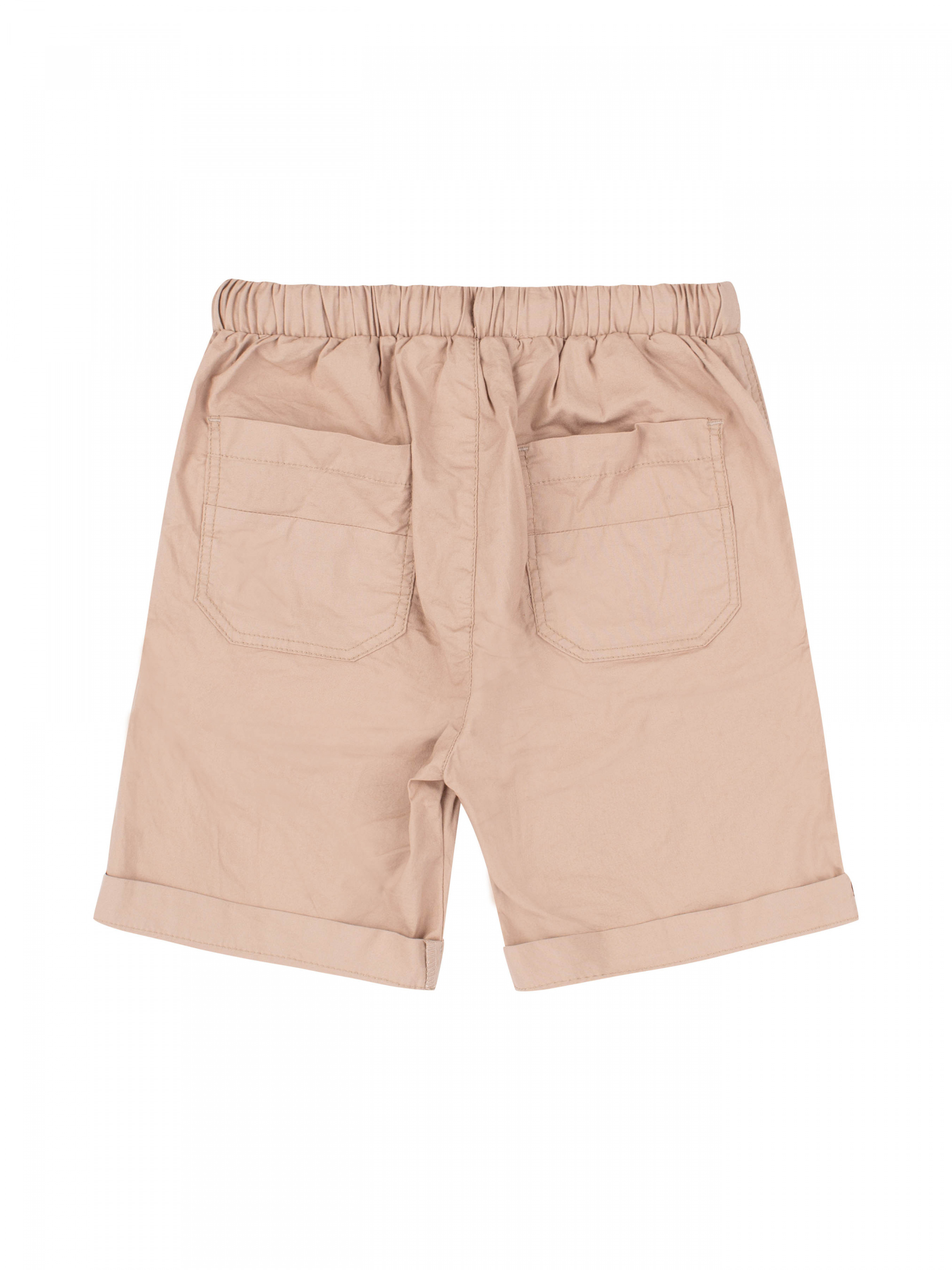 Шорти з еластичною резинкою на зав'язках. По боках кишені. Прямий крій. Тканина коттон.