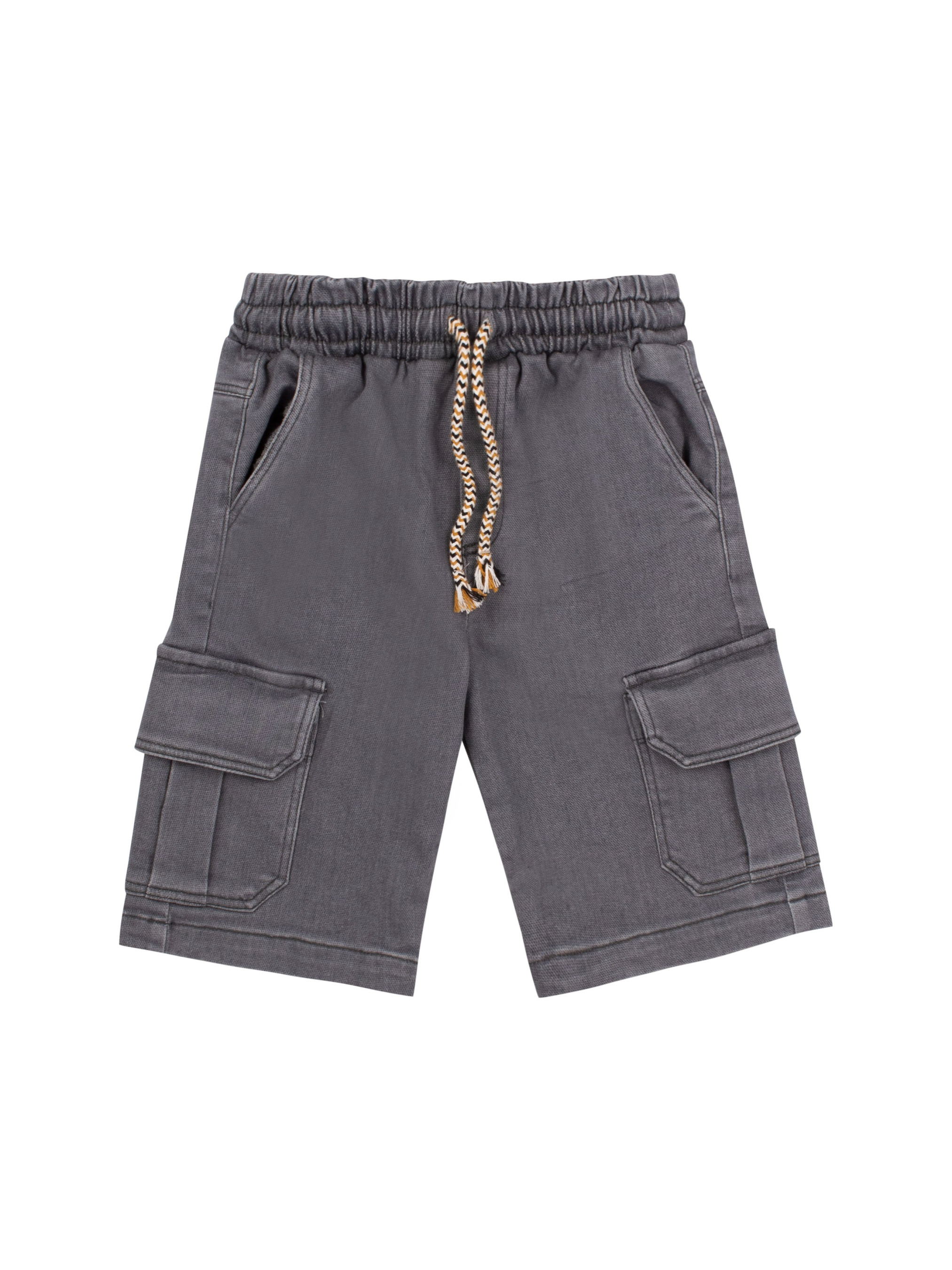Шорти прямого силуету, короткі. На передніх половинках бокові кишені. Задні половинки з кокетками. По бічних швах накладні кишені з клапанами. Пояс пришивний всередині з резинкою та шнуром.