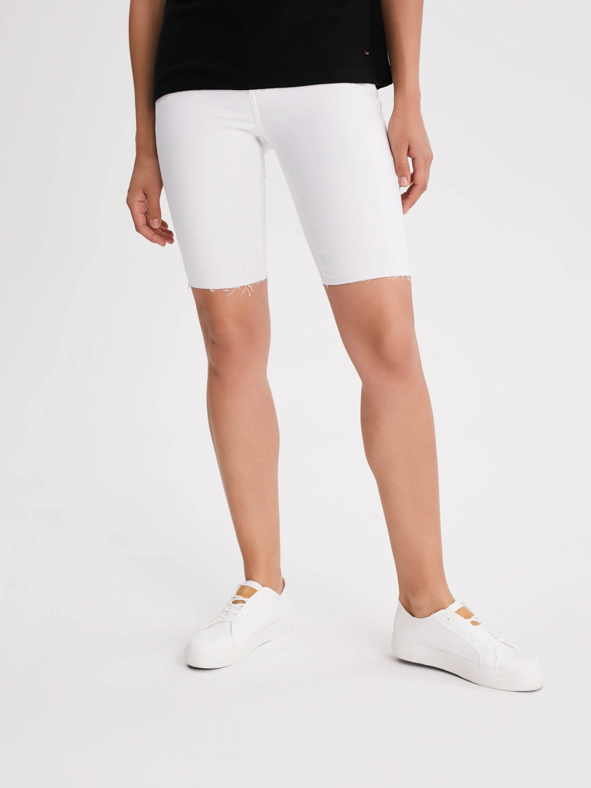 Приталені "велосипедні" тканинні шорти KOLAR з сирою обробкою внизу. Кишені спереду та ззаду. Модель із бавовняної тканини з додаванням еластану. Ідеально підходить для прогулянки або зустрічі з друзями у теплий весняний та літній день. Сезон: Весна-літо Склад: 69% бавовна 29% поліестер 2% еластан РОЗМІР: XS, S, М, L, XL, ШИРИНА ТАЛІЇ: 33 см, 35 см, 36 см, 38 см, 40 см ДОВЖИНА ВНУТРІШНЬОЇ НОГИ: 27 см, 27 см, 27 см, 27 см, 27 см ШИРИНА СТЕГНА:24 см, 25 см, 26 см, 27 см, 28 см ШИРИНА НИЗУ ШТАНИНИ: 16 см, 17 см, 18 см, 19 см, 20 см