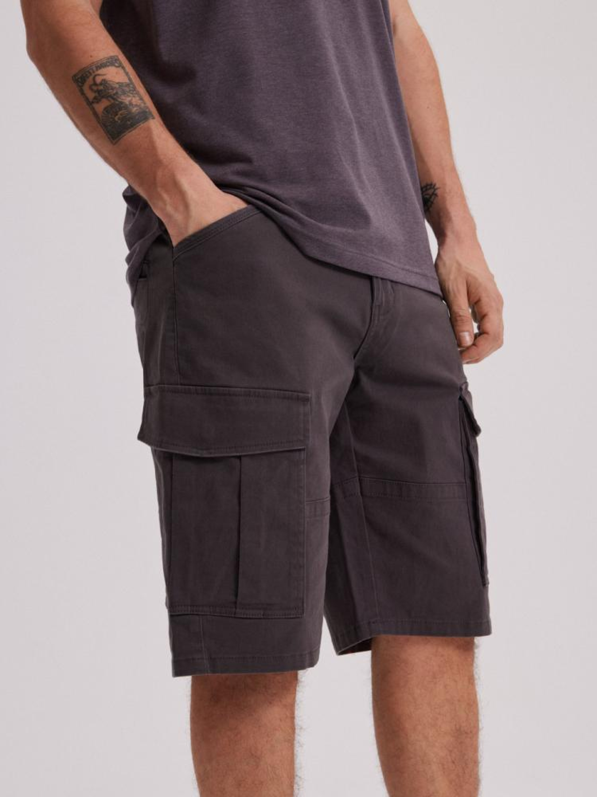 Шорти THORAN 242 SH 10043897 Шорти карго: - вільні, зручні бавовняні штани з стрейчем, - застібаються на блискавку та ґудзик, - дві передні кишені, - дві великі кишені карго, що закриваються з боків штанин, - дві задні кишені. Сезон: Весна/Літо 2024 Склад: 98% бавовна 2% еластан Догляд: - прання при максимум 30 °С - не відбілювати - не сушити в сушильній машині - прасувати максимум при темп. 150 °С - не хімчистка Розмір на моделі - 34 Зріст моделі - 187 см РОЗМІР: 31, 32, 33, 34, 36, Ширина пояса: 42,50 см, 44,00 см, 45,50 см, 47,00 см, 50,00 см, Внутрішня довжина ноги: 31,00 см, 31,00 см, 31,00 см, 33,00 см, 35,00 см, Ширина стегна: 33,30 см, 34,00 см, 34,70 см, 35,40 см, 36,80 см, ШИРИНА НОГИ ЗНИЗУ: 26,30 см, 27,00 см, 27,70 см, 28,40 см, 29,80 см