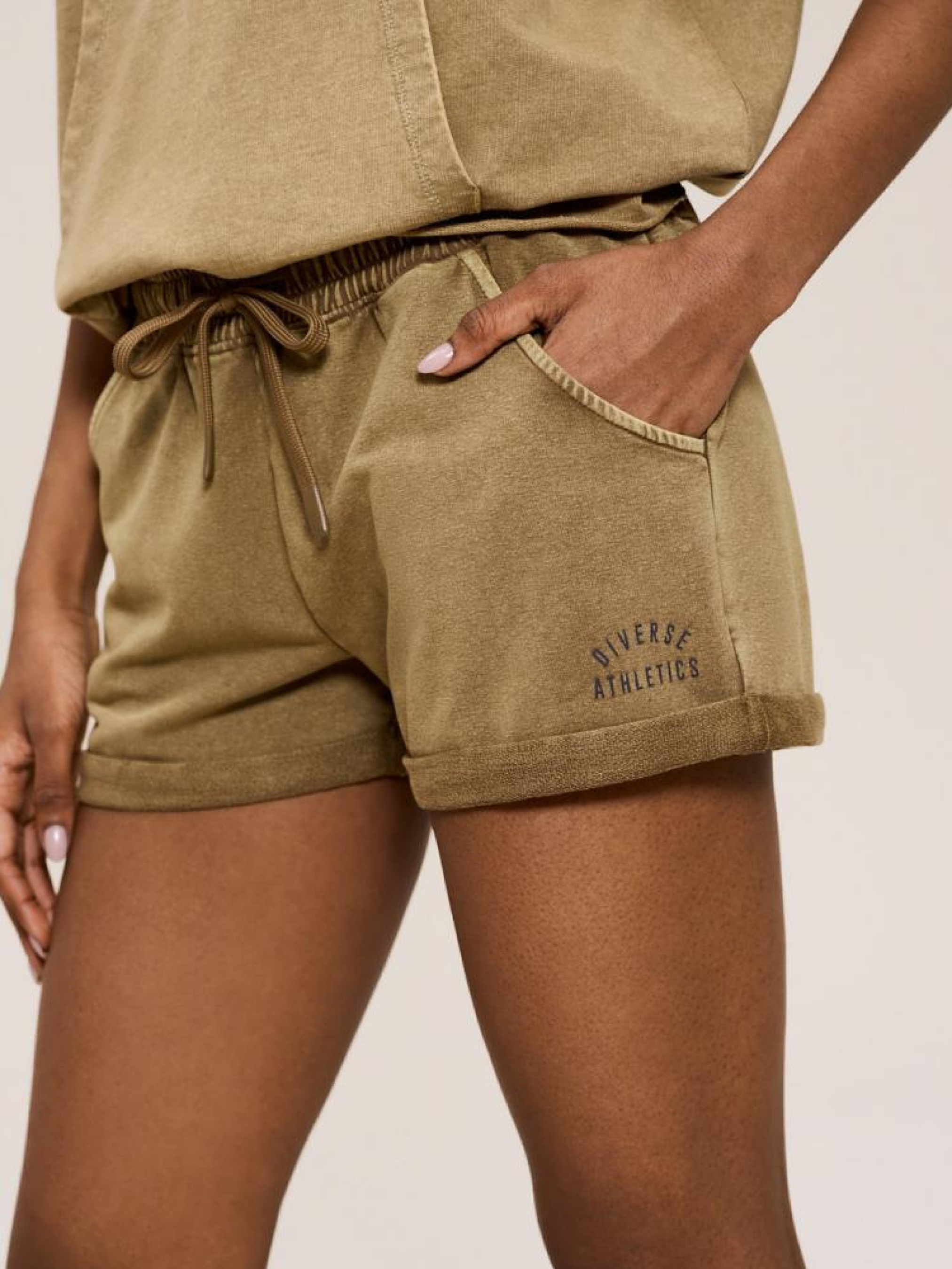 Жіночі шорти зі світшотного трикотажу: - класичного крою, - еластичний пояс та куліска, - практичні кишені з боків, - підгорнуті штанини, - зручний в носінні і приємний на дотик трикотаж, - ідеальні для повсякденного використання та активного відпочинку, - ідеальні для бігу та їзди на велосипеді, - доступні в кольорі хакі. Через унікальний, ручний спосіб виробництва виріб може відрізнятися від представленого на фото. Сезон: Весна/Літо. Склад: 98% бавовна, 2% віскоза.