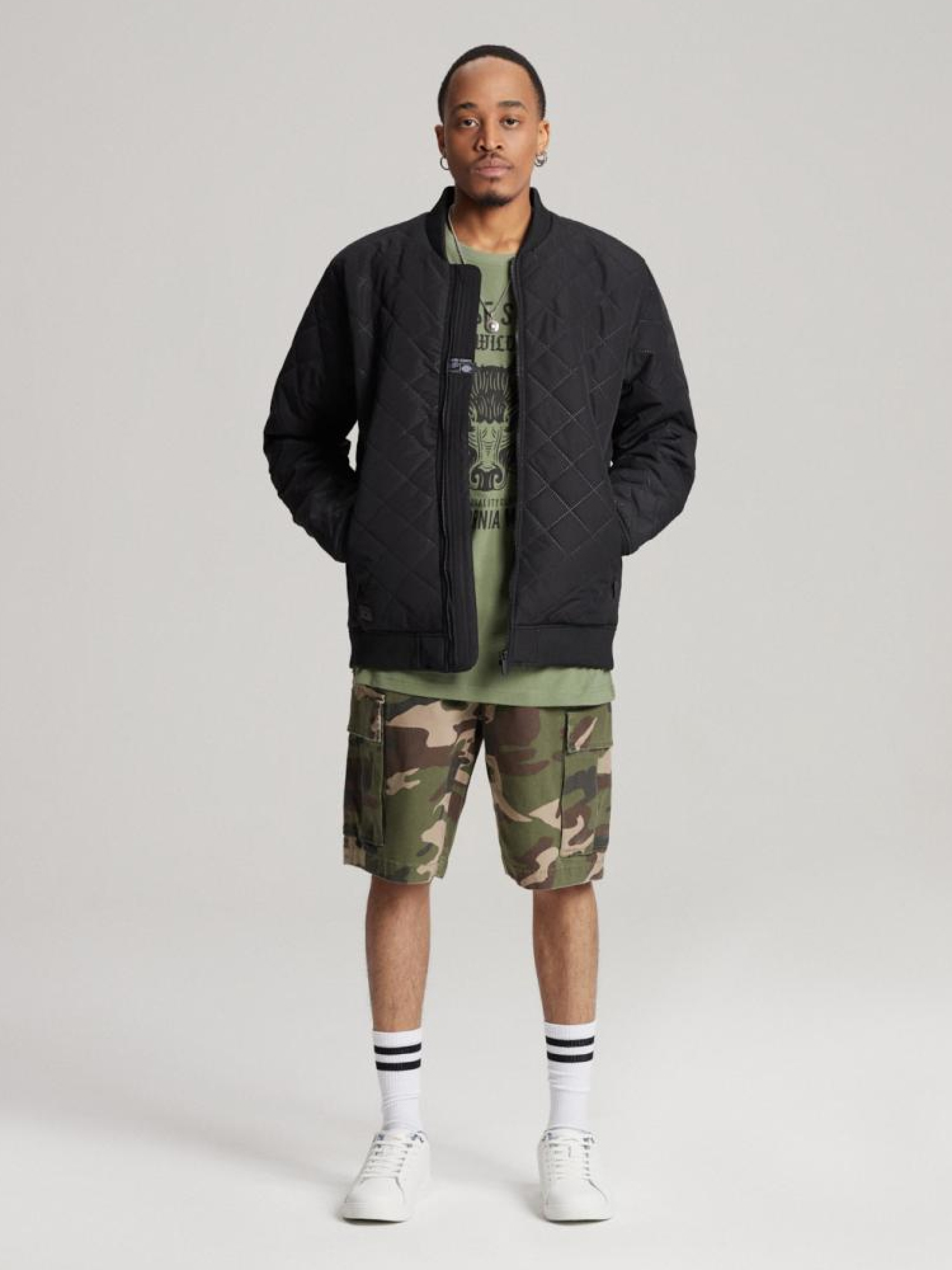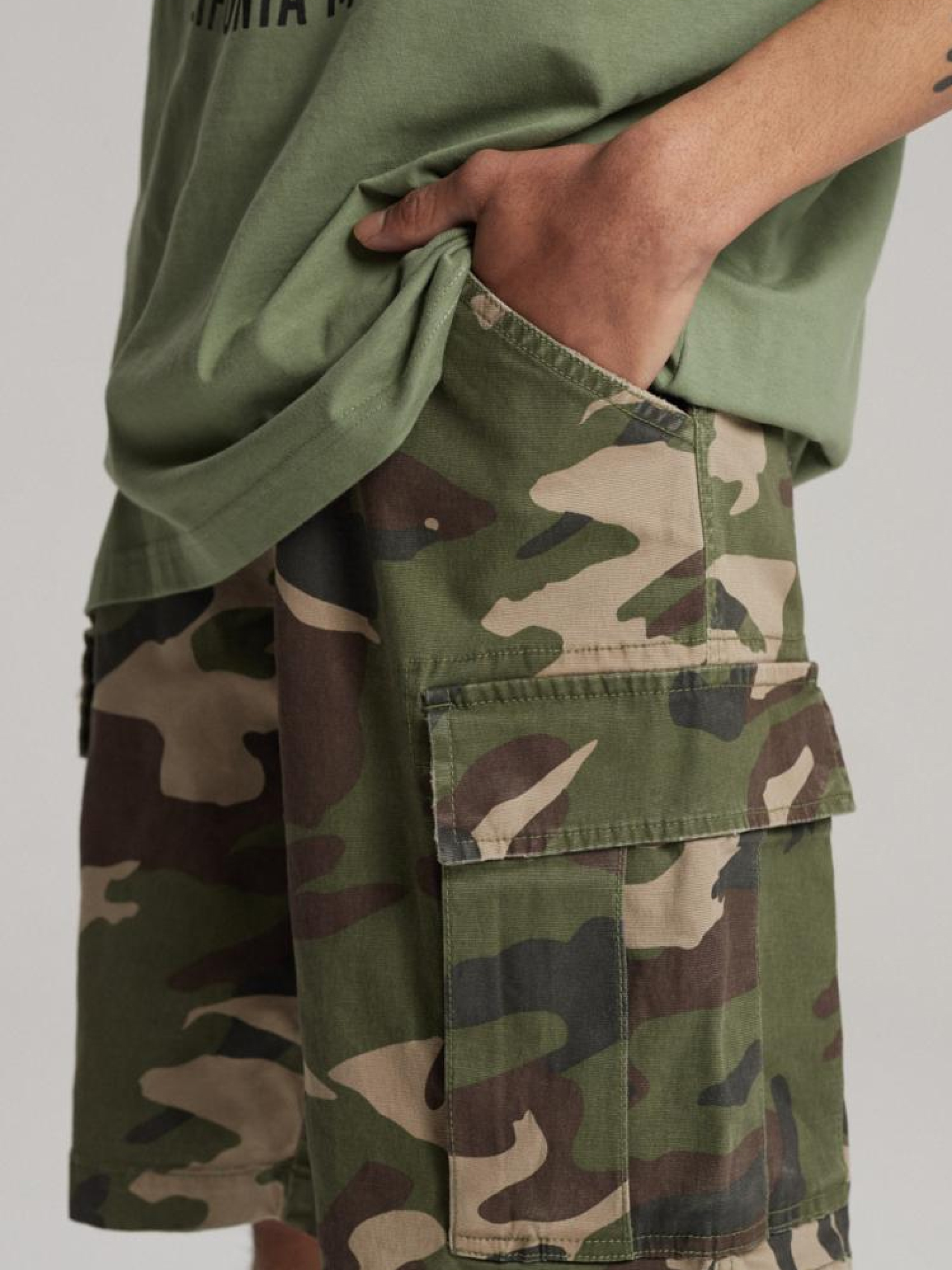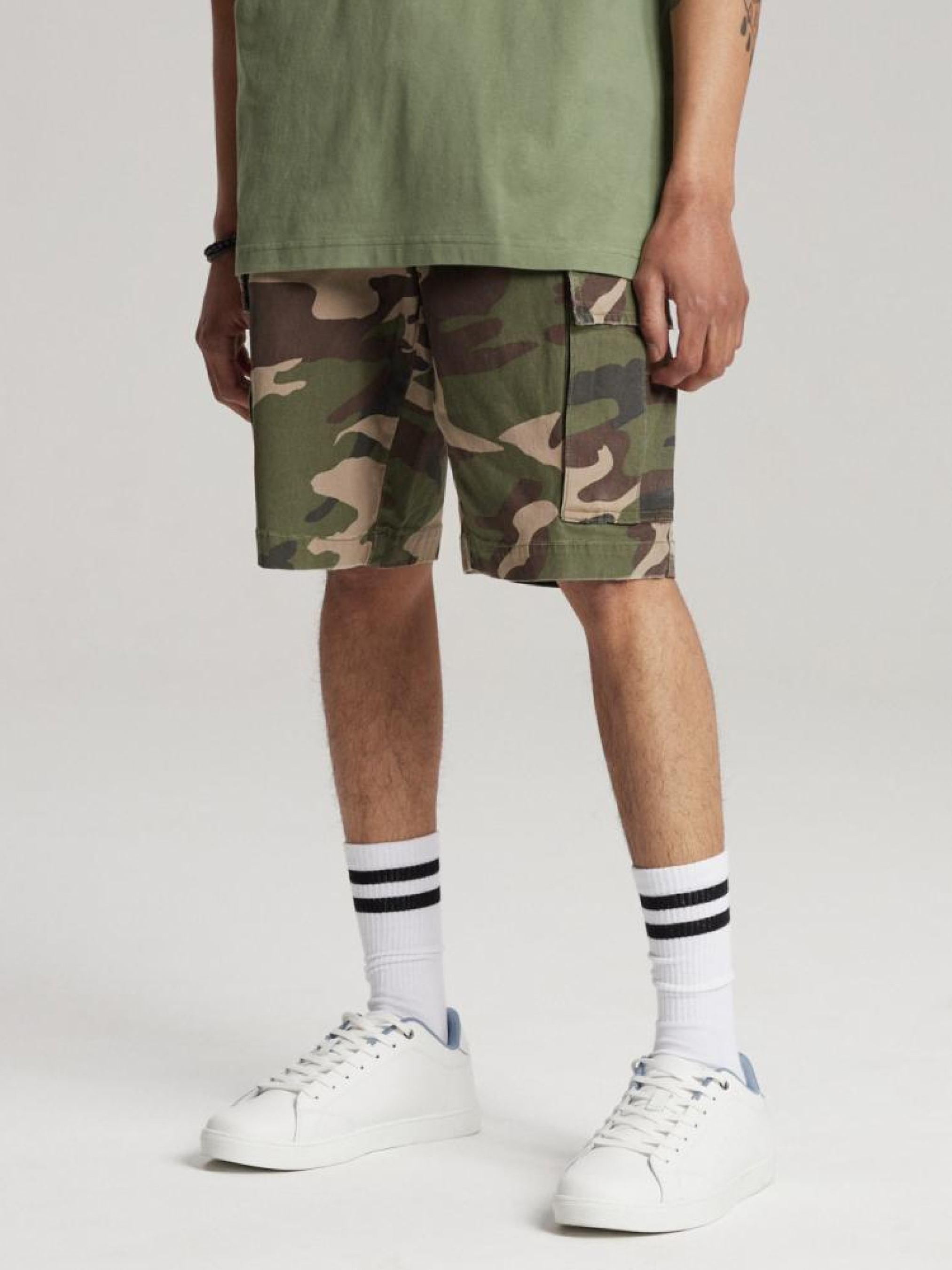 Шорти BORTES SH 232 10041314 Короткі штани карго: - класичні камуфляжні штани, натхненні стилем мілітарі, - виготовлені з бавовняного полотна з додаванням еластичності, - застібаються на блискавку та кнопку, - дві передні кишені, дві великі закриті кишені карго з боків ніг і дві закриті. кишені з задньою стороною, - зручна модель COMFORT FIT, - зелено-коричневий камуфляж. Сезон: Весна/Літо Склад: 98% бавовна 2% еластан. Догляд: - прання при максимум 30 °С - не відбілювати - не сушити в сушильній машині - прасувати максимум при темп. 150 °С - не хімчистка РОЗМІР: 31, 32, 33, 34, 36 . ШИРИНА ПОЯСА: 42,50 см, 44,00 см, 45,50 см, 47,00 см, 50,00 см . ВНУТРІШНЯ ДОВЖИНА НОГИ: 26,00 см, 26,00 см, 26,00 см, 28,00 см, 30,00 см . ШИРИНА СТЕГНА: 32,80 см, 33,50 см, 34,20 см, 34,90 см, 36,30 см . ШИРИНА НІЖКИ ВНИЗУ 26,30 см, 27,00 см, 27,70 см, 28,40 см, 29,80 см