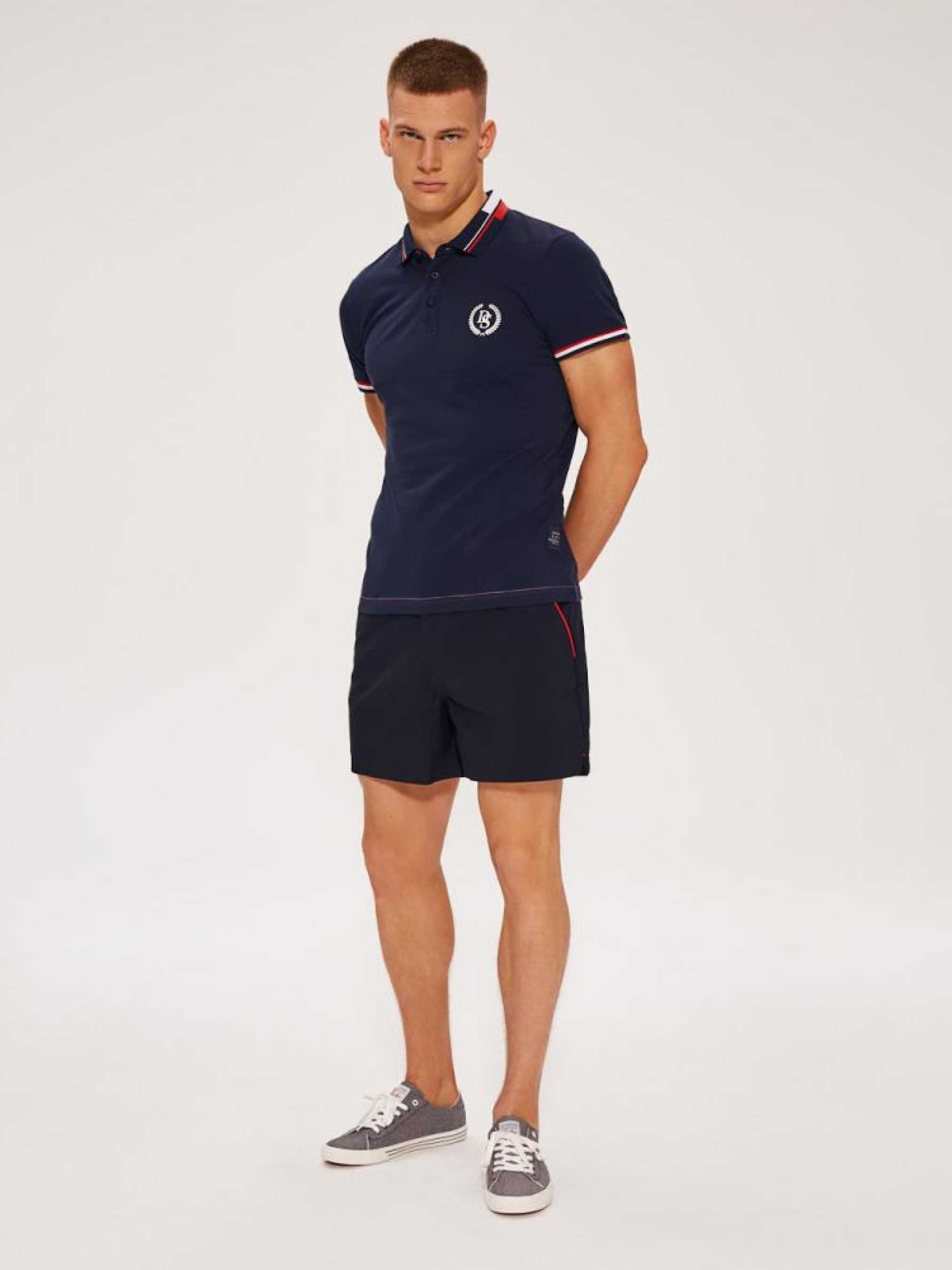 Шорти з м'якої тканини: - контрастна тасьма на талії, - дві кишені спереду, - одна кишеня чінос позаду, - вкорочені штанини, - доступні у синьому кольорі. Сезон: Весна / Літо. Склад: 56% бавовна, 41% нейлон, 3% еластан. РОЗМІР: M, L, XL, ХХL . ШИРИНА ПОЯСА: 40,00 см, 43,00 см, 46,00 см, 49,00 см . ДОВЖИНА ВНУТРІШНЬОЇ НОГИ 12,00 см, 12,00 см, 12,00 см, 13,00 см . ШИРИНА СТЕГНА: 33,60 см, 35,00 см, 36,40 см, 37,80 см . ШИРИНА НИЗУ: ШТАНИНИ 32,00 см, 33,00 см, 34,40 см, 35,80 см