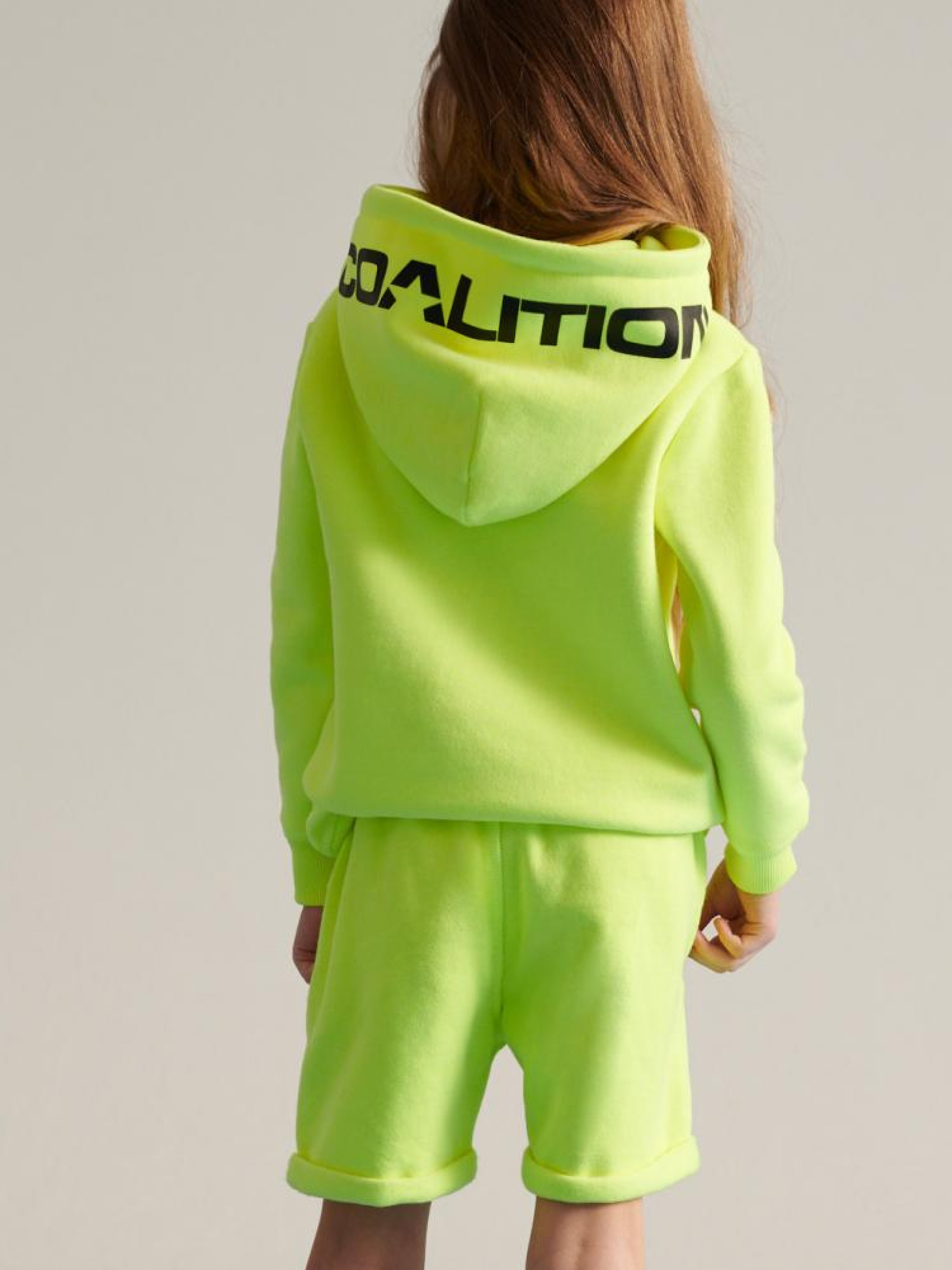 Неоново-жовті спортивні шорти: - декоративна вишивка спереду, - вільний крій, - декоративна етикетка позаду, - доступні у неоново-жовтому кольорі. Сезон: Весна / Літо. Склад: 60% бавовна, 40% поліестер. РОЗМІР: 98/104, 110/116, 122/128, 134/140, 146/152 . ШИРИНА ТАЛІЇ 22,50 см, 25,50 см, 27,50 см, 30,50 см, 33,50 см . ДОВЖИНА ВНУТРІШНЬОЇ НОГИ 8,50 см, 9,50 см, 10,50 см, 12,00 см, 13,50 см . ШИРИНА СТЕГНА: 19,50 см, 20,50 см, 21,50 см, 23,00 см, 24,00 см . ШИРИНА НИЗУ: ШТАНИНИ 16,50 см, 17,50 см, 18,50 см, 20,00 см, 22,00 см