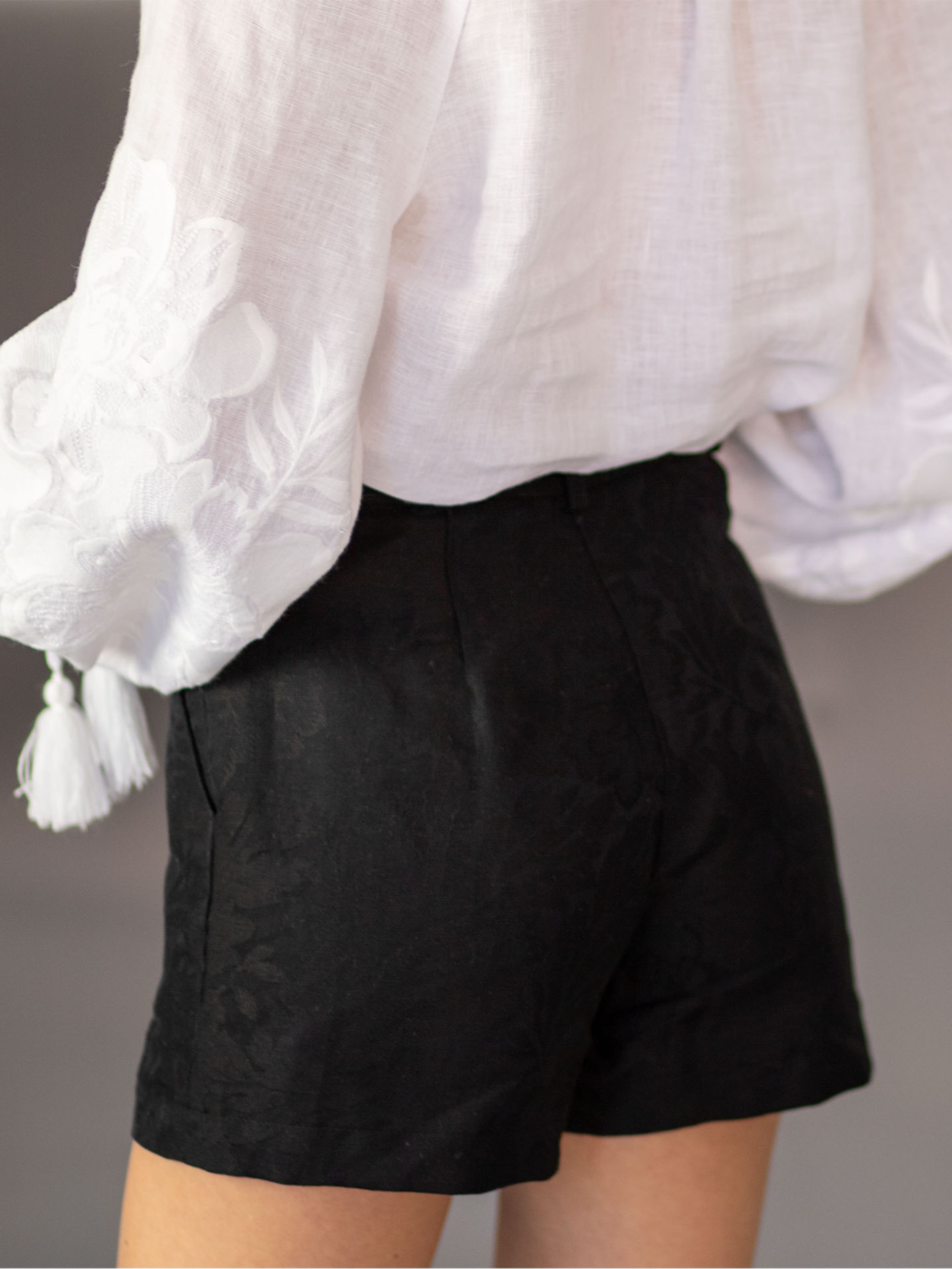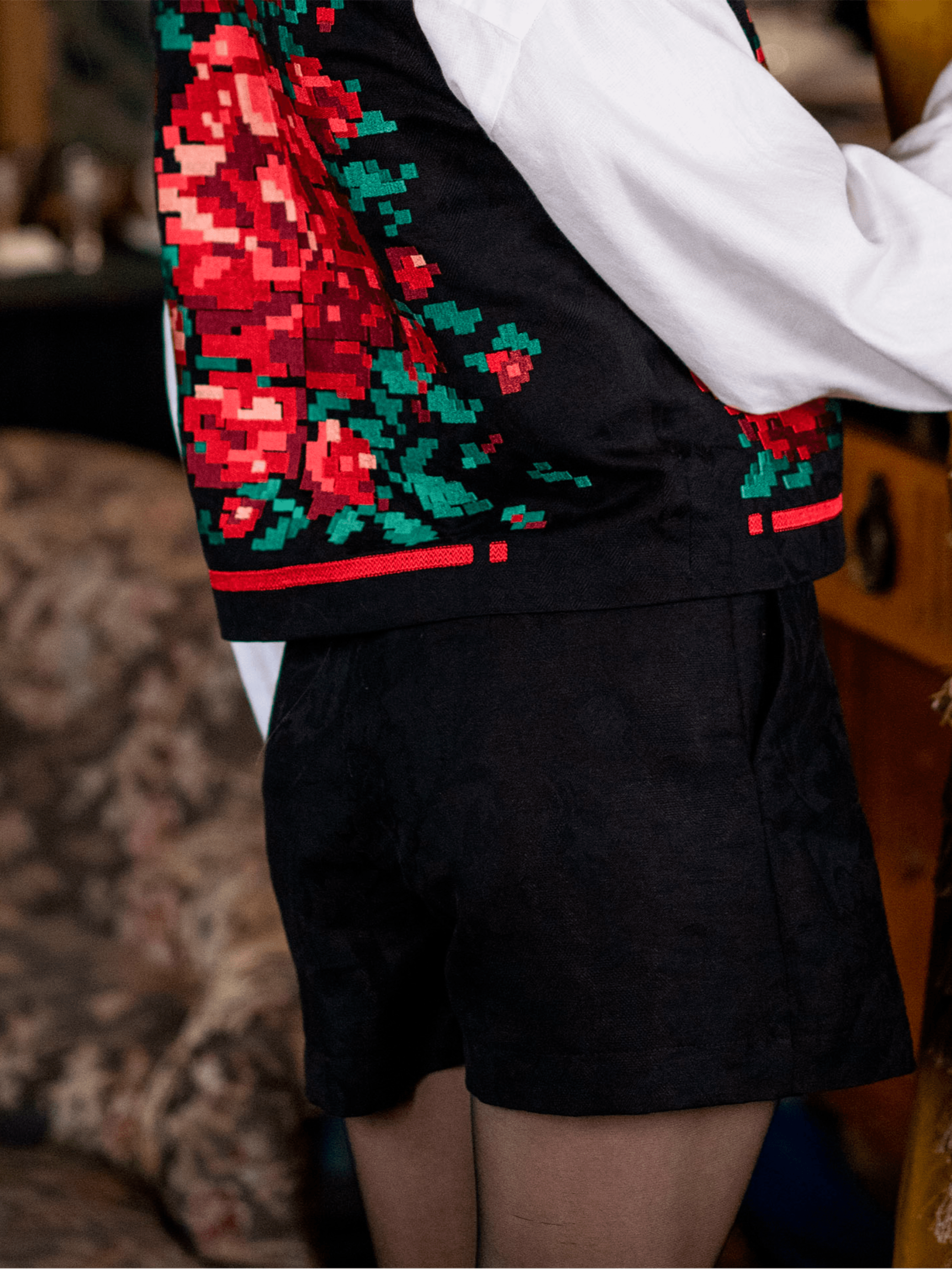Колір: Чорний Склад: 50%Льон 50%Бавовна Правда, буває так хочеться одягнути мініспідницю, але вас стримує активний образ життя? А ми попіклувались про ваш комфорт і створили унікальну річ – шорти-спідницю. Вони виглядають жіночно, а їх практичність не ставитиме вас перед вибором: «що ж одягнути сьогодні?!». Такі шорти-спідниця гарантують вам впевненість у кожному кроці. Виріб створений з вишуканої жакардової тканини, на якій естетично переплітаються таємничі квіти. В складі полотна лише натуральні волокна – 50% льону та 50% бавовни. Шорти-спідниця мають збоку застібку у вигляді блискавки, також містять дві кишені. Такі шорти вдало поєднуватимуться, як і з класичним одягом, так і з повсякденним гардеробом. А ще, в нашій осінній колекції «Квіткова мозаїка» представлені стильні сорочки та жакети з стильною вишивкою, поєднуючи їх ви можете створити повноцінний образ.