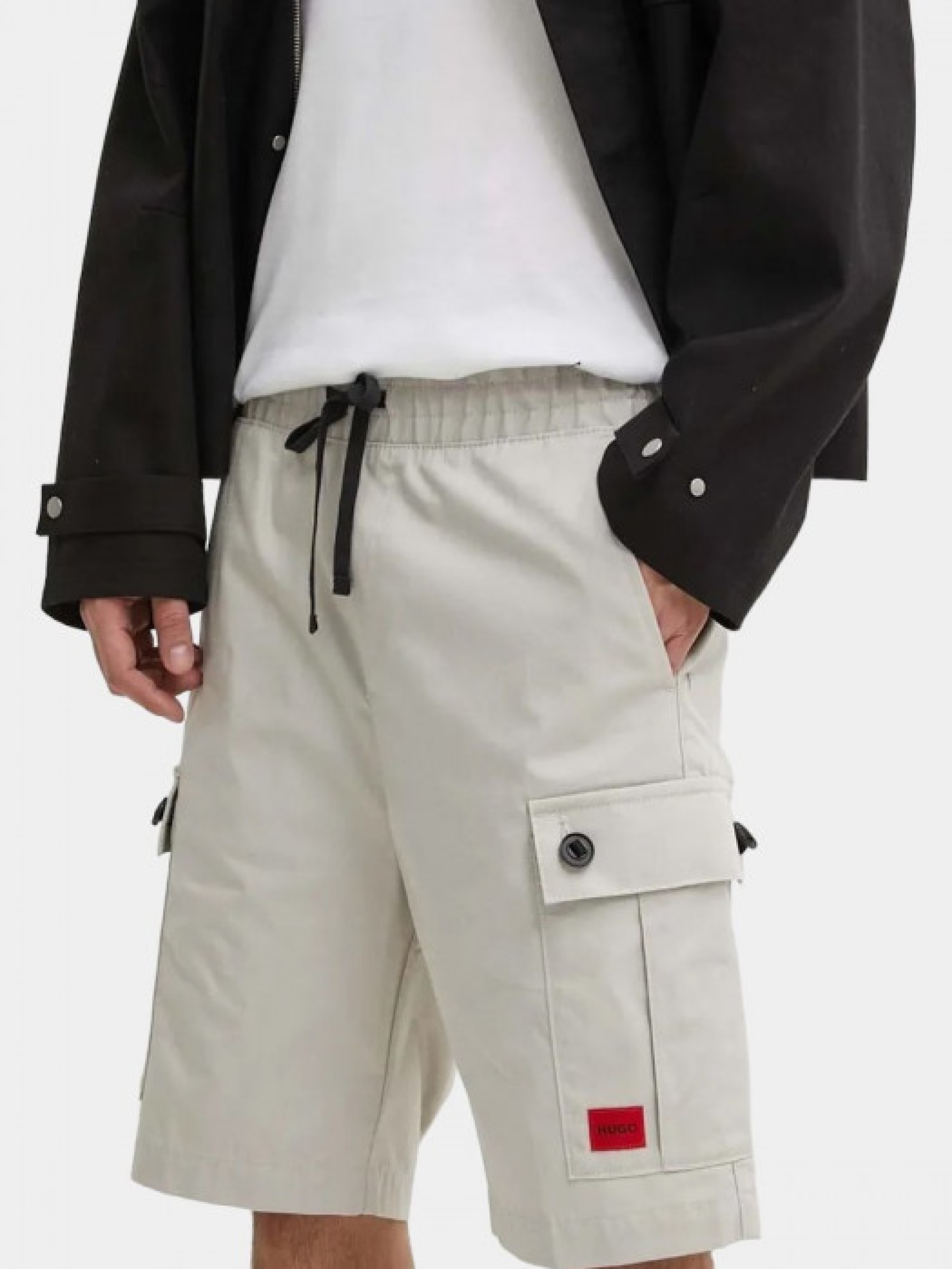 Шорти-карго Garlio242 від HUGO, виготовлені з високоякісної 100% бавовни, що забезпечує комфорт і довговічність. Мають regular fit крій, що додає зручності для повсякденного носіння. Шорти оснащені еластичним поясом з зав’язками для ідеальної посадки, а також кількома функціональними кишенями, включаючи бічні кишені з ґудзиками. Модель ідеально підходить для весняно-літнього сезону. Зріст моделі - 189 см, на моделі розмір 48.