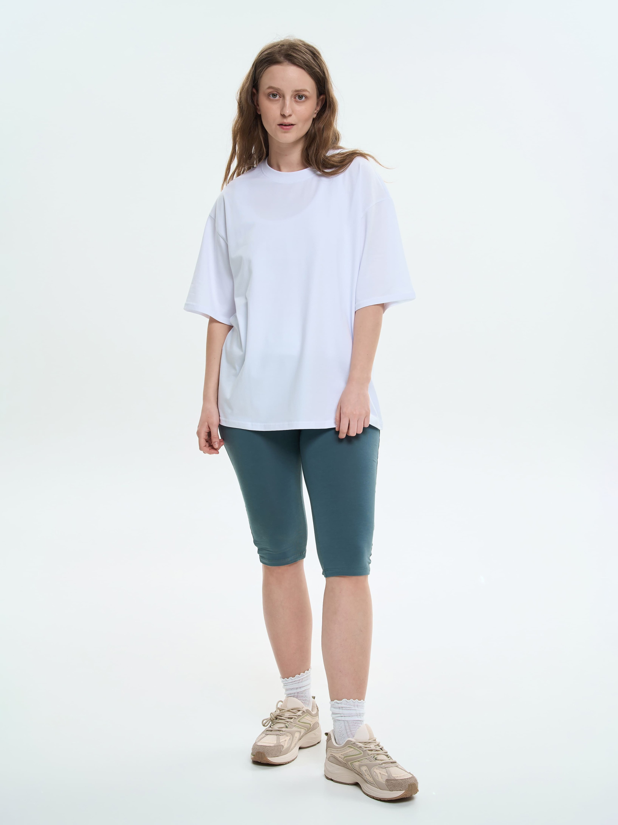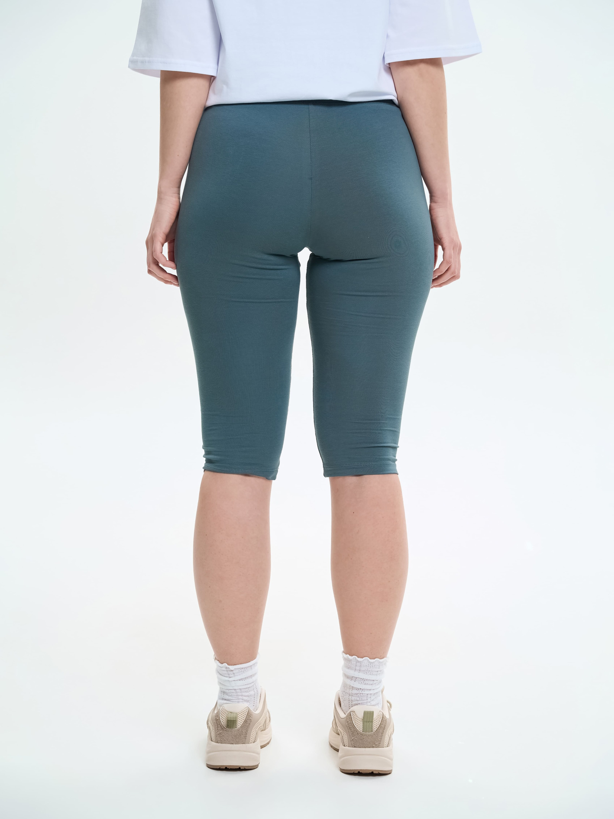 Звужені лосини довжиною нижче коліна виготовлені з легкого трикотажу, який не просвічується та тягнеться для ідеальної посадки, повторюючи силует. Легка резинка добре фіксує лосини на тілі. Не сковують рухи, пасуючи до відпочинку, повсякденних справ чи спорту. Добре комбінуються з коротким та подовженим верхом. Матеріал Тонке трикотажне полотно забезпечує природню повітропроникність та м'якість. 92% бавовни у складі робить її легкою, приємною навіть для чутливої шкіри. Цей стрейч-кулір добре вбирає вологу, додаючи комфорту при активних рухах і в теплу пору року. 8% еластану сприяють ідеальному приляганню до тіла. Рекомендації з догляду Рекомендовано прати при температурі не вище 40°C, використовуючи режим делікатного прання. При ручному пранні уникати тертя. Кольорові речі з бавовною у складі не рекомендовано сушити під прямими сонячними променями.