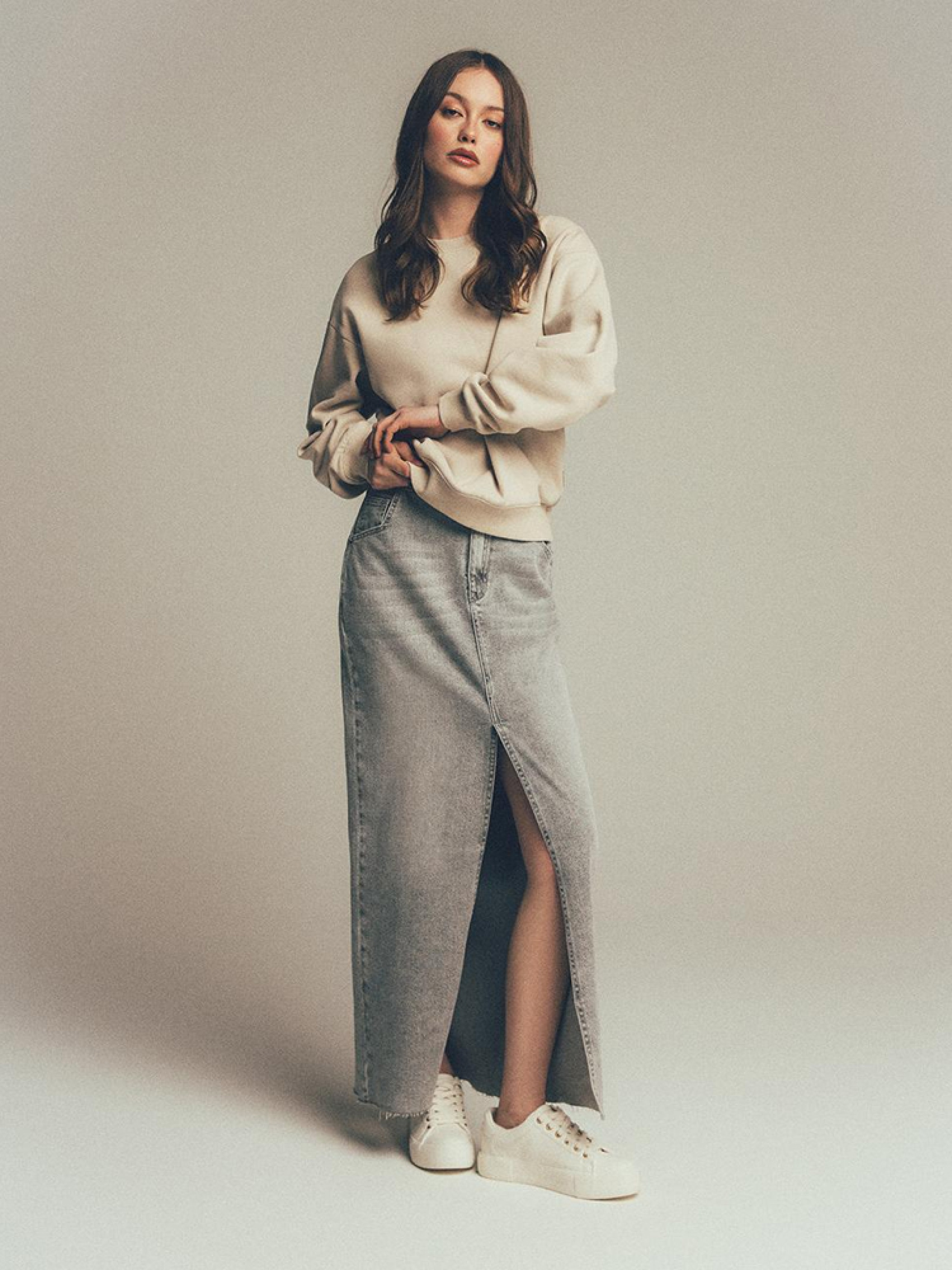 OLIALE Сезон: Весна/Літо Склад: 72% бавовна 22% віскоза 5% поліестер 1% еластан Догляд: - прання при максимум 40 °С - не відбілювати - сушіть за низької температури - прасувати максимум при темп. 150°С - не проводити хімчистку Розмір на моделі - S Зріст моделі - 177 см РОЗМІР: XS, S, М, L. Ширина пояса: 34.5, 36.5, 38.5, 40.5, Довжина спідниці: 99, 100, 101, 102, ШИРИНА НИЗУ: 45, 47, 49, 51, Ширина стегон: 47, 49, 51, 53,