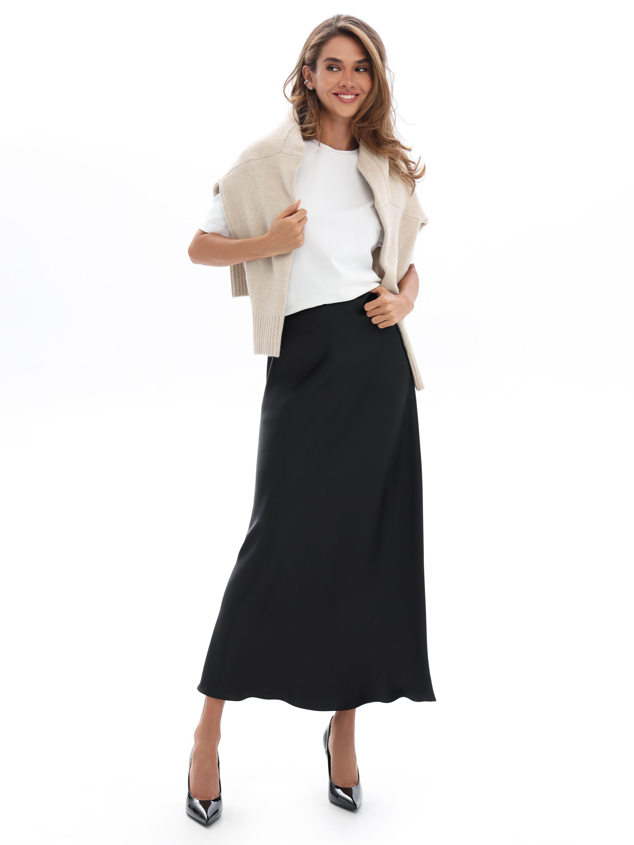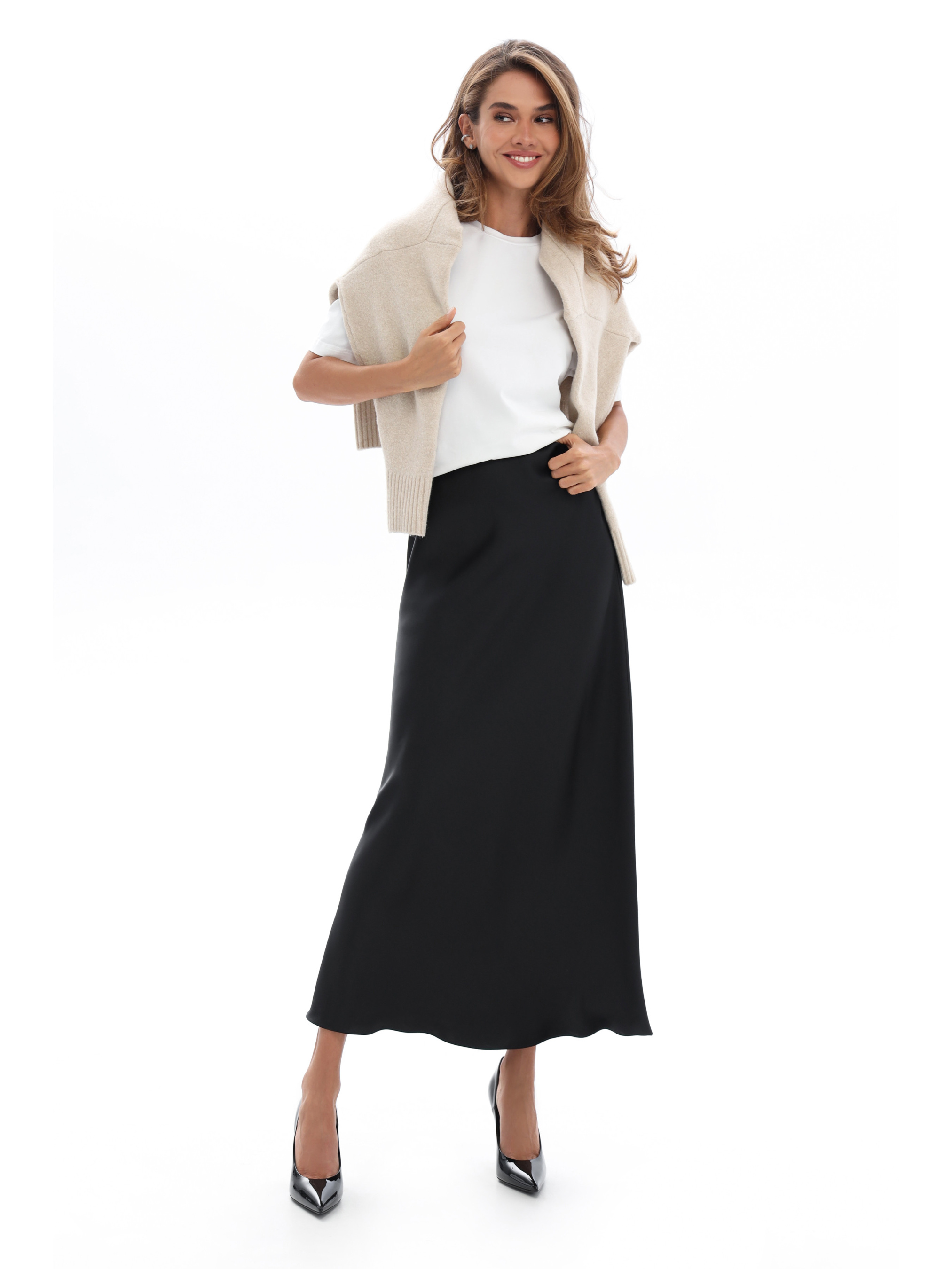 Спідниця довга шовкова — втілення елегантності, легкості й жіночності. Виготовлена з м’якого, гладкого шовкового матеріалу, вона красиво струмує по фігурі, створюючи витончений і розкішний силует. Завдяки мінімалістичному дизайну та благородному блиску тканини, спідниця ідеально поєднується як з повсякденними, так і з вечірніми образами. Висока посадка підкреслює талію, а комфортний крій дарує свободу рухів. Ця модель стане базовим елементом гардероба для тих, хто цінує стиль і комфорт у кожній деталі